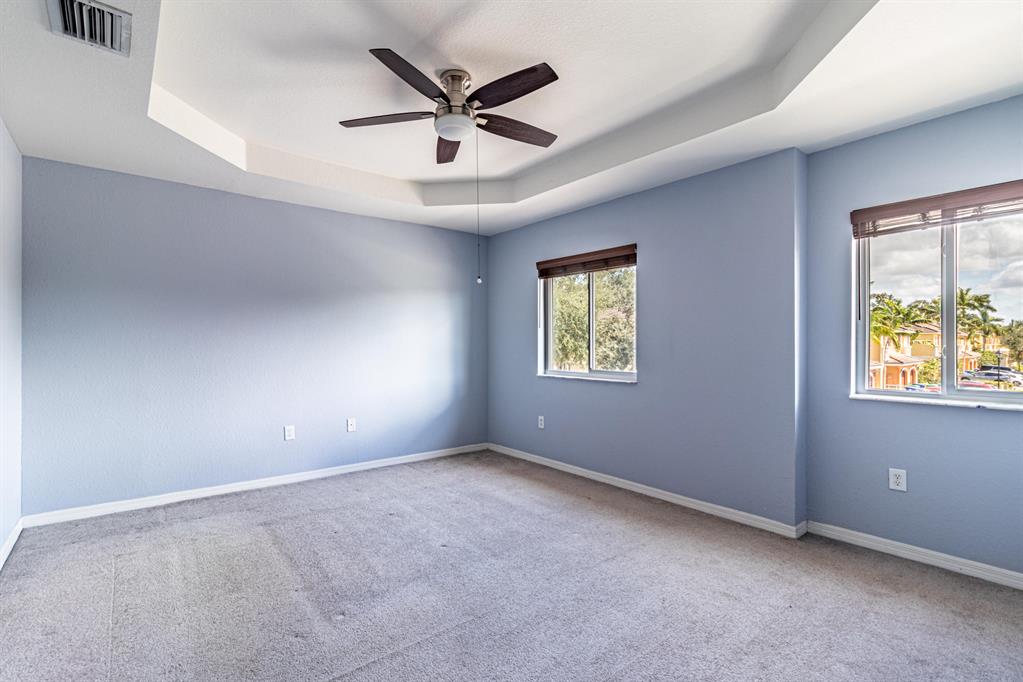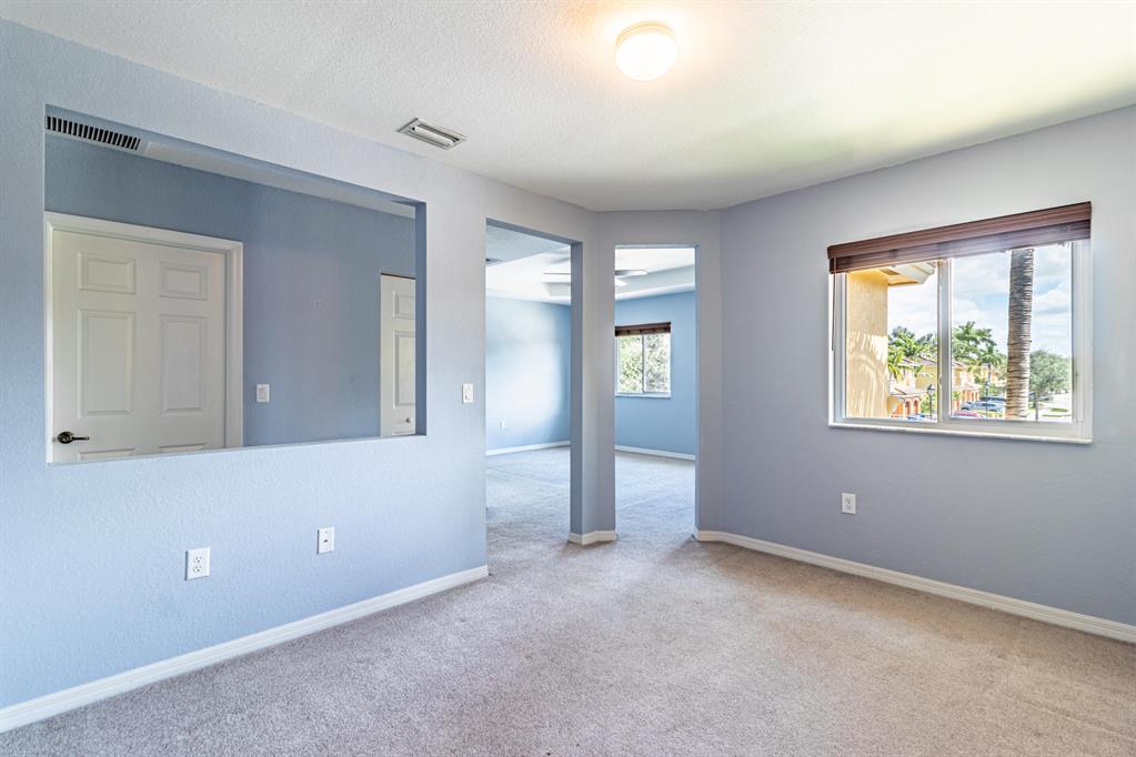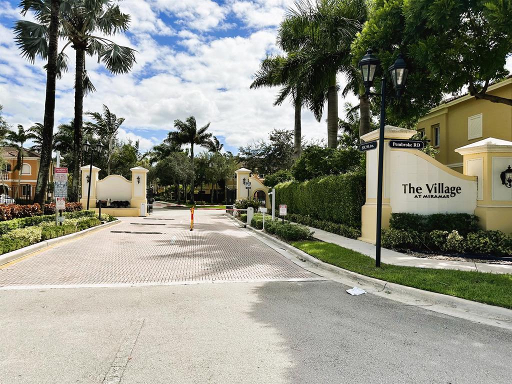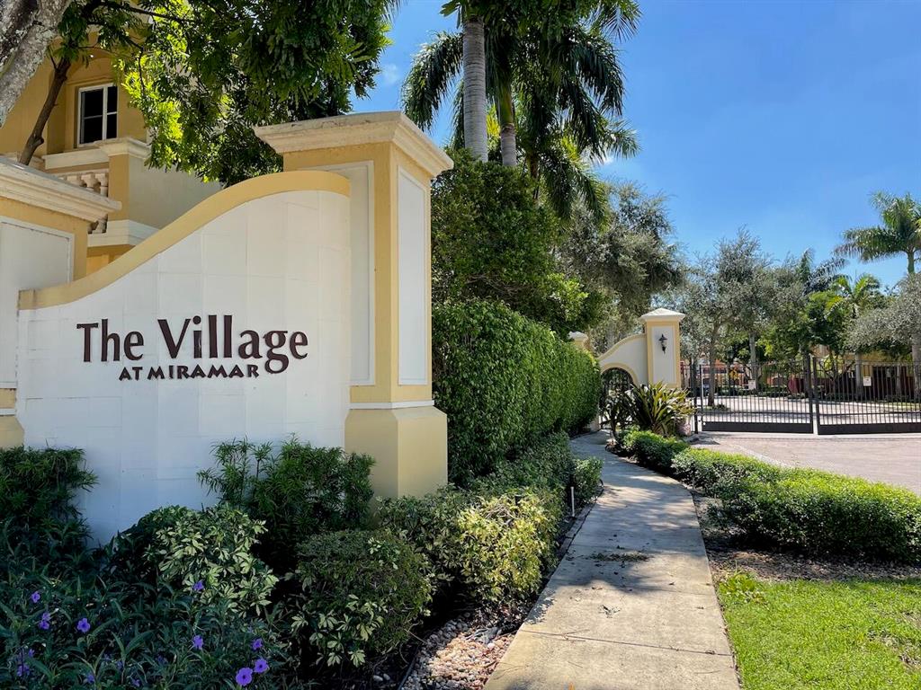 Welcome to this spacious townhouse in Village Walk at Miramar - with 4 bedrooms and 3 bathrooms in more than 2,000 square feet. First floor features one bedroom and full bathroom plus living room, kitchen and flex room that can serve as dining, family or office space. Pavered patio area is fenced, with no rear neighbor. Upstairs you will find 2 more bedrooms, a full bathroom, and laundry room plus the primary suite with large walk-in closet, en-suite bathroom and attached bonus space that can be used as sitting room, office or nursery. Complete Hurricane Impact Windows and new AC. Beautifully maintained, gated community with pool, playground and clubhouse, conveniently located off Pembroke Road and Douglas. No renting first 2 years of ownership.