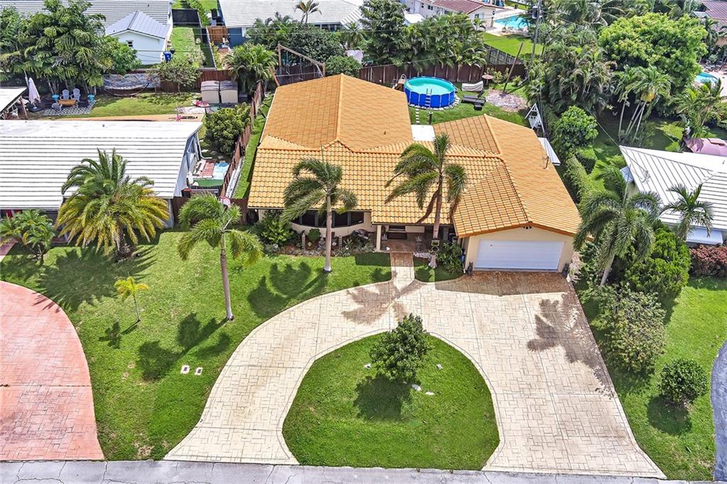 Rare shot to buy into a highly desirable neighborhood on a tranquil street. The widened circular driveway provides ample parking. Walk right into a bright, large & open interior space that will inspire your dream home designs. 3 Bedrooms, 2 Baths, a huge living room, formal dining space, all give the interior a HUGE feel. This home has great bones! Former Florida room has been closed in & provides a den/access to Very large backyard with privacy fencing. Ceramic & luxury vinyl flooring. True Spanish S-Tile roof. Home has large square footage, with hurricane impact windows, newer electrical panel, water filtration system,& well maintained 4 ton A/C. Priced to sell and located just 2 miles from the beach, walking distance to "A" rated school, near I95,& 15 minutes to FT. Lauderdale airport.
