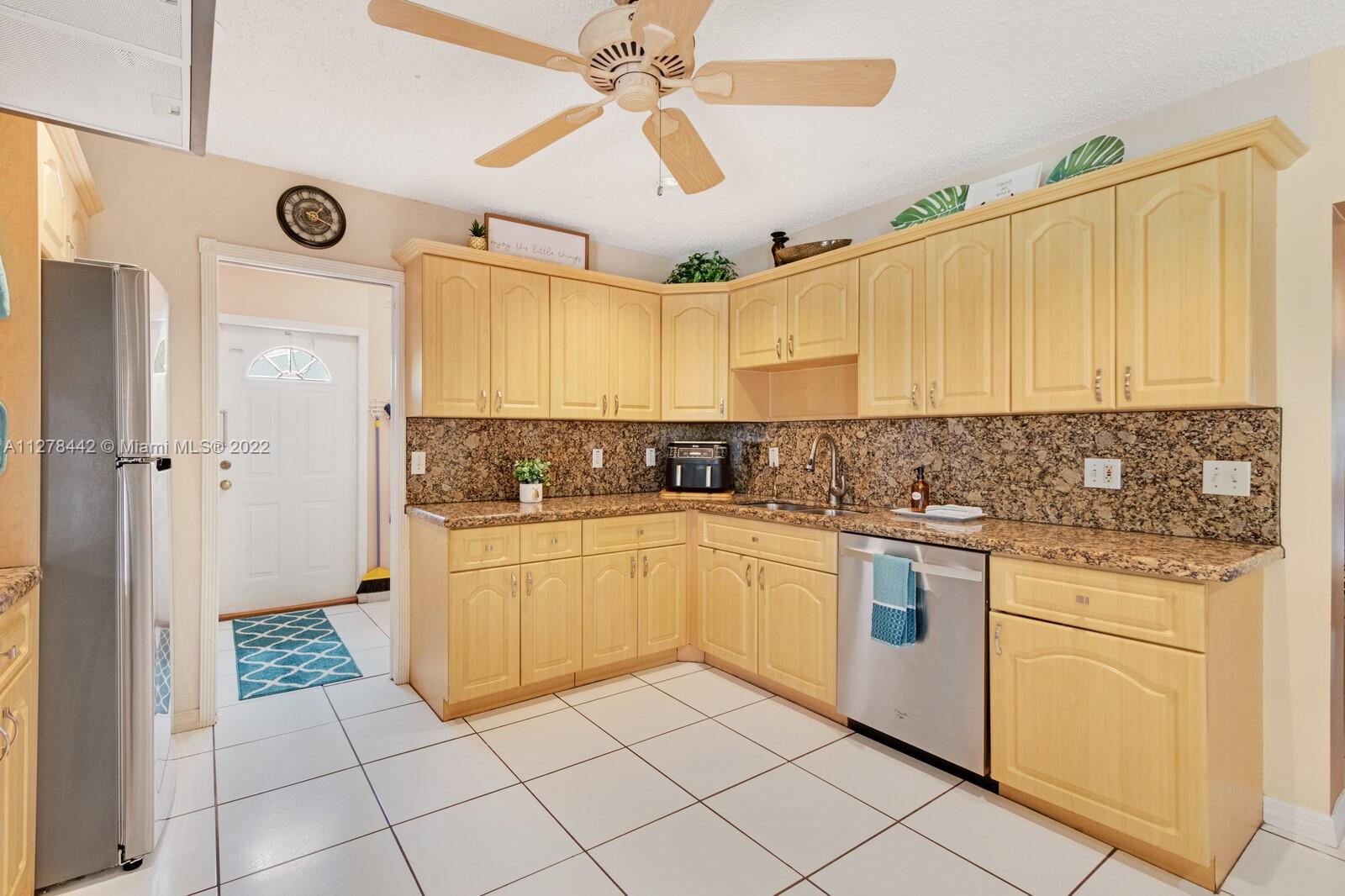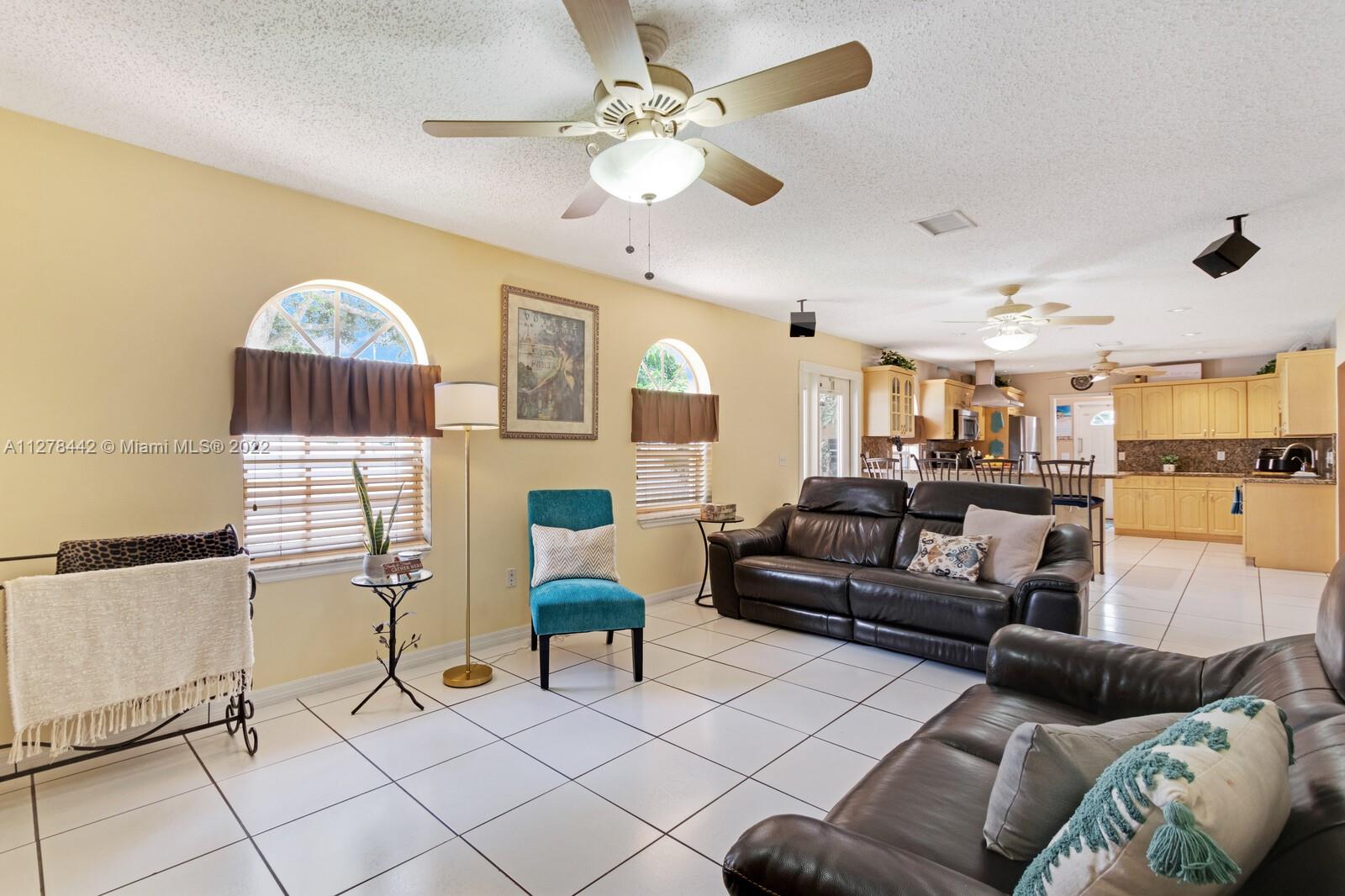 Original owner, meticulously maintained beautiful 2200+ sq ft featuring 3 bedroom plus an office, family room, formal living & dining rooms, large laundry/utility room. Oversized master bedroom. Massive walk in closet w/built ins. The kitchen is a chef's dream. Plenty of cabinets & countertops, exhaust hood vented to the outside. The master bedroom & bathroom, kitchen & laundry were a permitted addition. Tile through out. The corner lot has a privacy fence & 6 security cameras. Enjoyable backyard with patios to entertain and a Mango tree. Well constructed sturdy storage building/workshop with electric. Plenty of room to store your boat behind the double gates and also a carport behind another set of gates. Impact windows on North & West sides of home and shutters for the rest of home