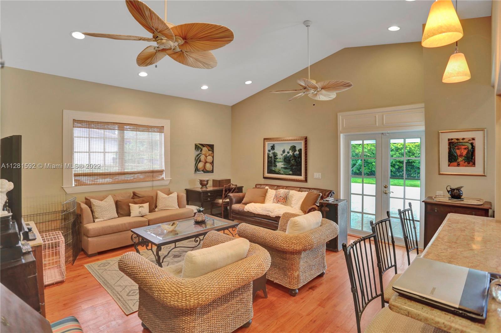 Drive down the tree-lined street in a prime section of Pinecrest to this beautiful home. This home has a wonderful floor plan with the kitchen open to the large family room. The family room has high, vaulted ceilings. There are lovely architectural details in the interior. The backyard is very private and features a large patio and a large, covered area that would be perfect for an outdoor kitchen. There is a sparkling pool and fenced yard. Home is located on a quiet corner lot with double-door gate on the side for ease of access to park a boat.