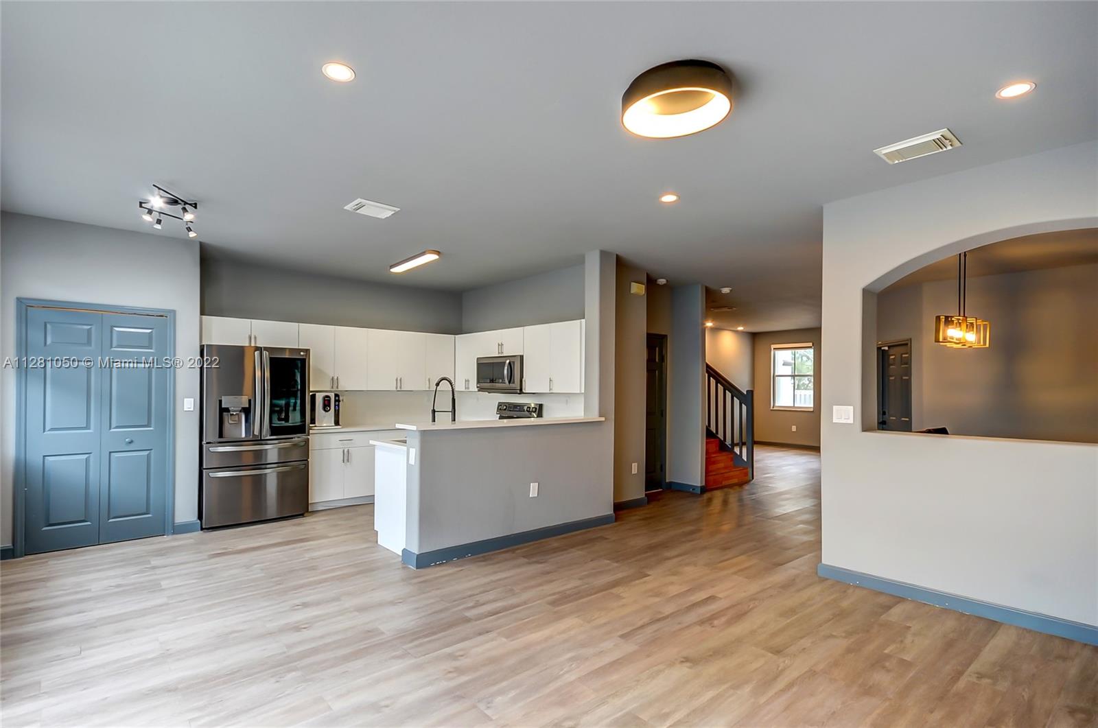 Windward at Island at Doral Gated Community, Spacious & Bright 4 Bedrooms and 2.5 Bathrooms completed renovated throughout, Laminated Flooring on the First floor, Laminated wood Flooring on the Second floor and staircases, The Renovated Kitchen comes with top-of-the-line, new stainless steel appliances and quartz countertops, bathrooms completed renovated, newer Air Condition and Washer and Dryer, Paved Patio, 1 car garage . Residents have access to Islands at Doral Clubhouse amenities Including: 2 Pools, Gym, Kids Playground, Basketball Court, Tennis Court, Great Location, Close to Major Roads, Schools on the best districts, Shopping Restaurants, Malls, Parks. We are expecting offers with NO Appraisal Contingency.