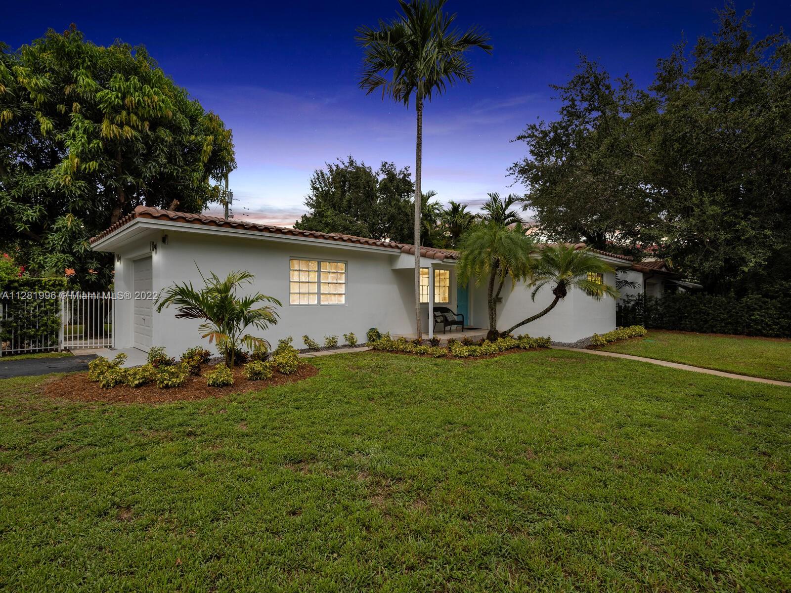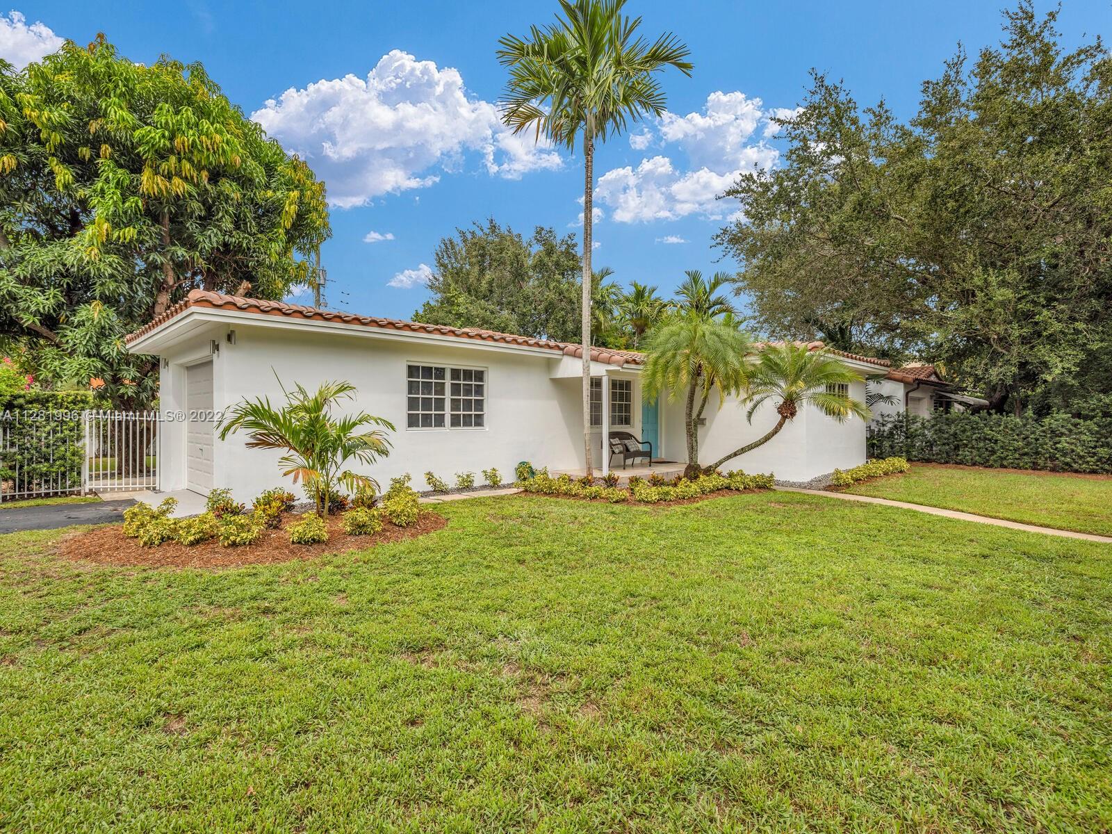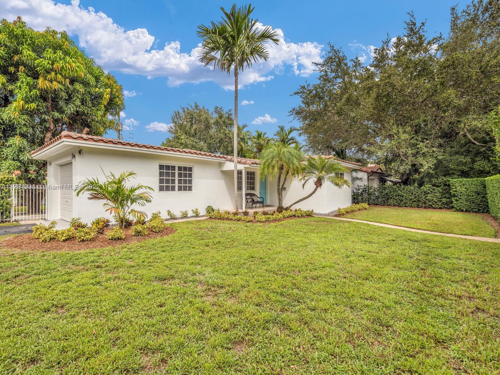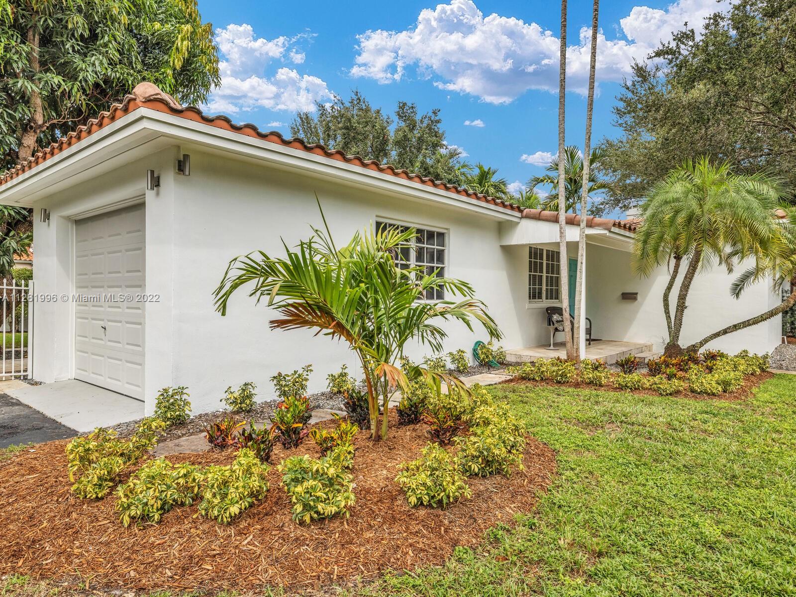 Welcome to Casa Gardenia! The wonderful fragrance of blooming gardenias greets you to this delightful updated Coral Gables home on a lushly landscaped corner lot with welcoming front porch, so perfect for morning coffee. Inside, enjoy spacious and flowing living that opens to vaulted room—that’s so flexible-- with dining, media and office areas and lots of natural light. Plus, opens to updated kitchen. So easy, you can design how you want to live! Fire up the barbecue and entertain family and friends in your private, landscaped and gated rear gardens. Unwind in the main suite retreat and bath with double closets or the comfortable guest room, next to other updated bath. Enclosed garage. Fabulous location—close to all the Gables great restaurants and shopping. Come smell the gardenias!