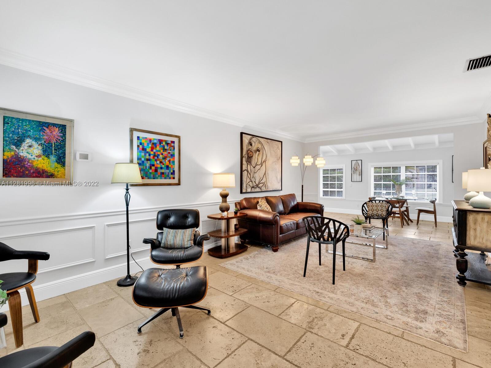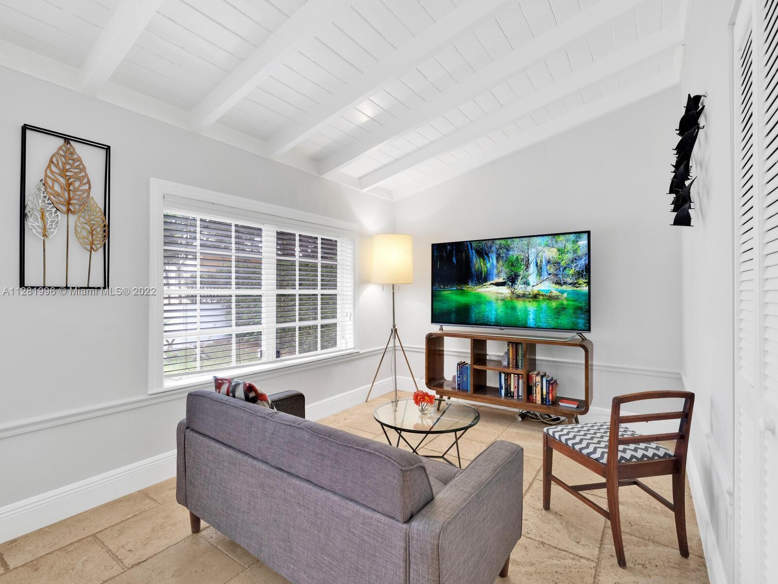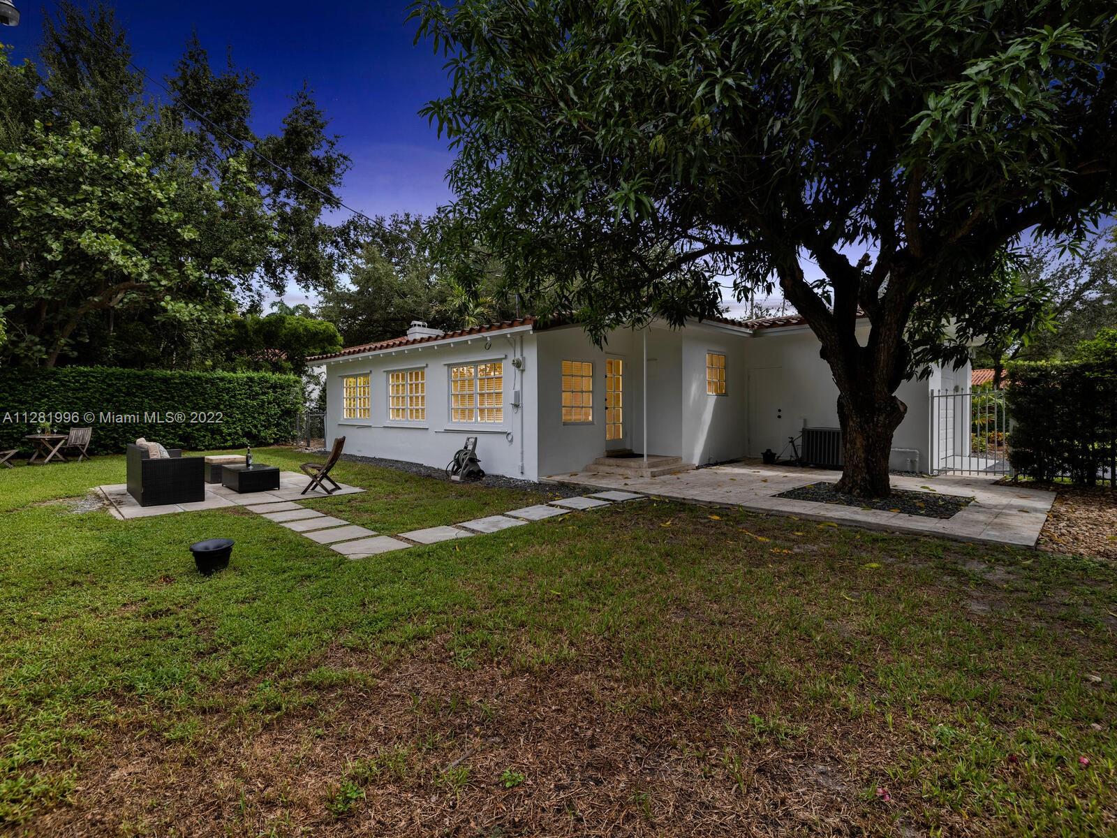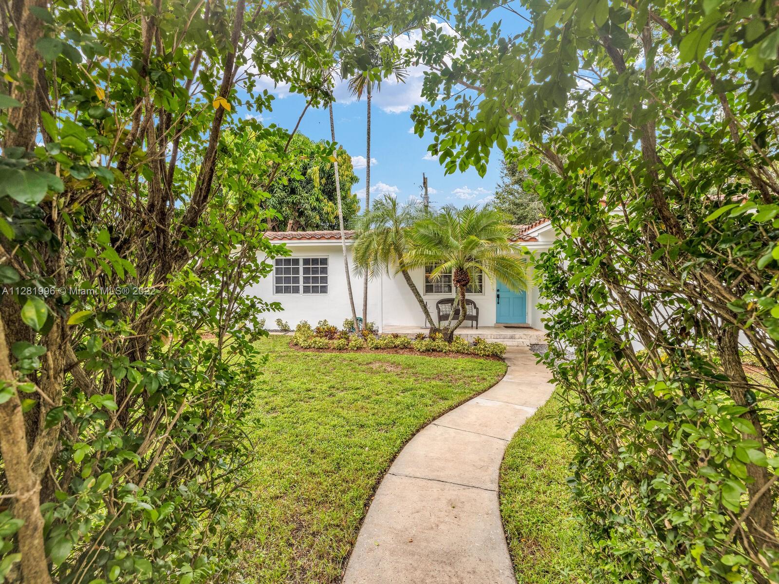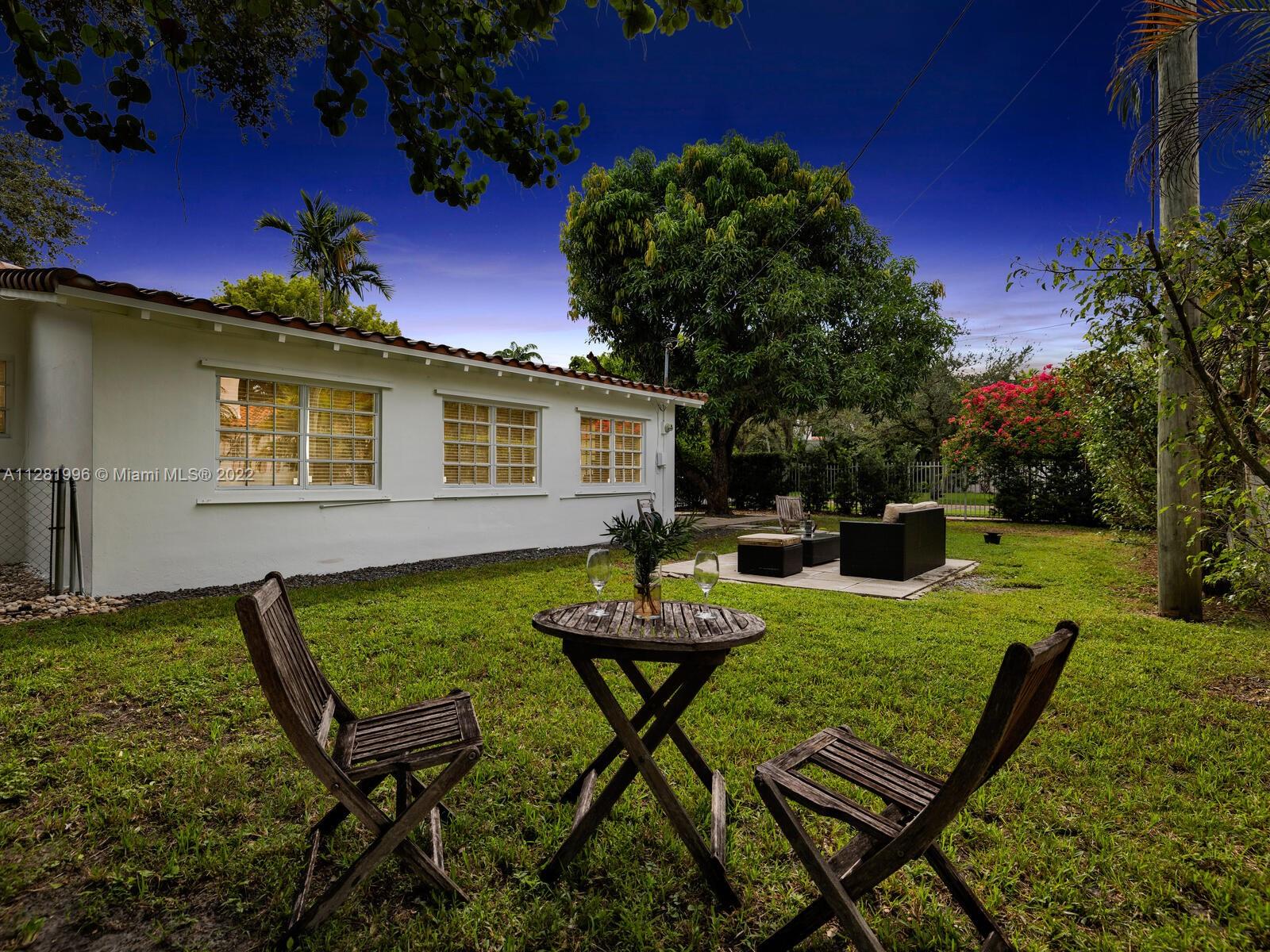 Welcome to Casa Gardenia! The wonderful fragrance of blooming gardenias greets you to this delightful updated Coral Gables home on a lushly landscaped corner lot with welcoming front porch, so perfect for morning coffee. Inside, enjoy spacious and flowing living that opens to vaulted room—that’s so flexible-- with dining, media and office areas and lots of natural light. Plus, opens to updated kitchen. So easy, you can design how you want to live! Fire up the barbecue and entertain family and friends in your private, landscaped and gated rear gardens. Unwind in the main suite retreat and bath with double closets or the comfortable guest room, next to other updated bath. Enclosed garage. Fabulous location—close to all the Gables great restaurants and shopping. Come smell the gardenias!