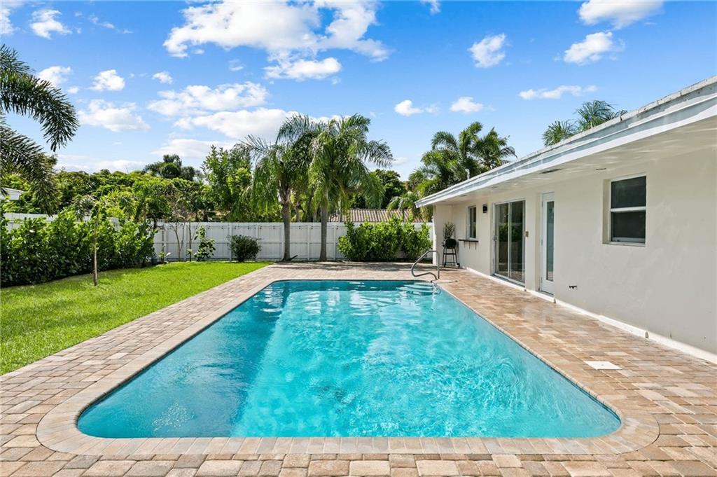 IMPERIAL POINT - This 3-bedroom 2 bath packs a punch. BEAUTIFUL CORNER LOT tucked away on a very quiet street. This may be the best lot in the neighborhood. Newly remodeled open floor plan lets in tons of natural light. New kitchen cabinets covered in quartz and new stainless appliances. Brand new floors, doors and hardware. Frameless showers w/ gorgeous ceramic tiles. Master bedroom overlooks oversized pool and lush landscape. Separate laundry. PERFECTLY LOCATED. 5 minutes to beach, 95, shopping, restaurants and amazing schools. looking to invest in your personal CASH MACHINE, this is it! Looking for long term appreciation? HELLO!! Tear downs have already started with new builds pushing $2m. Make an offer today or somebody else will.