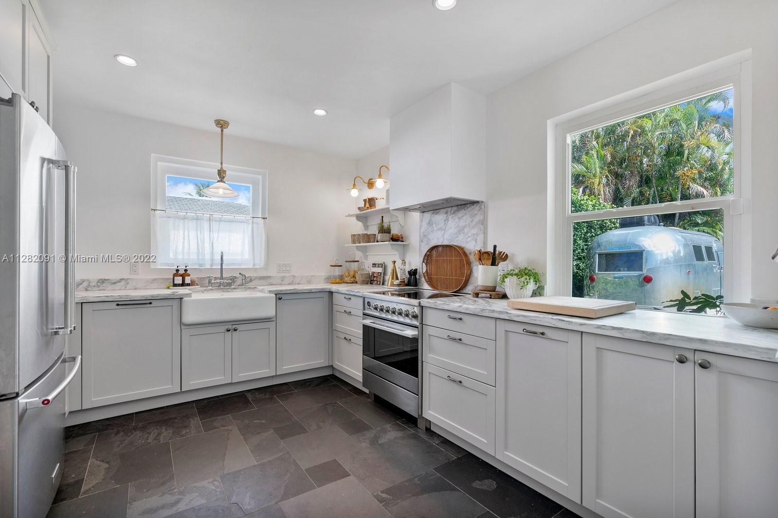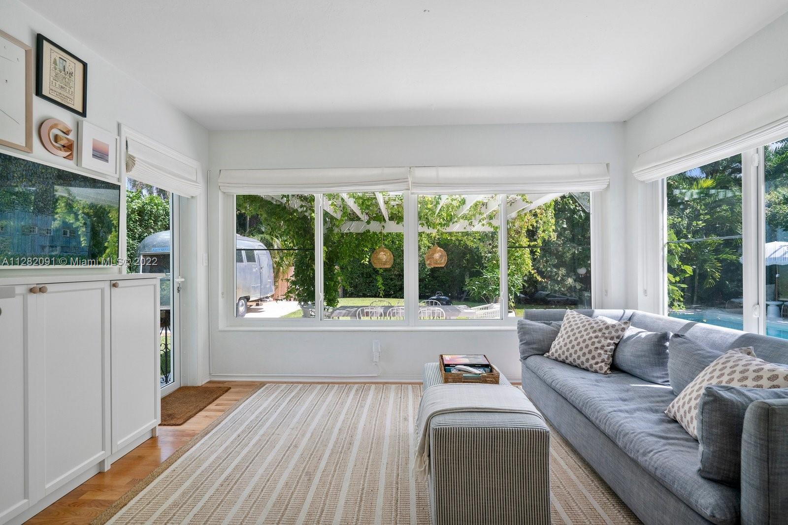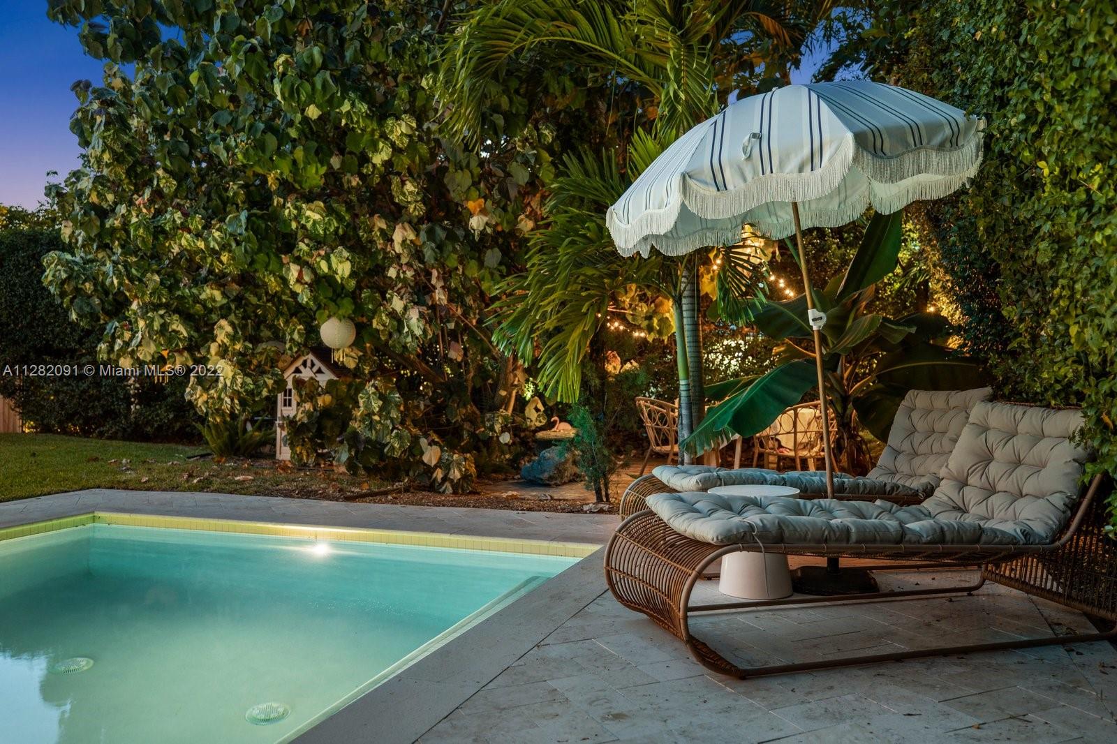 Designer luxury awaits at this charming 2 bedroom/2 bathroom central Miami Shores pool home. Beautifully updated, this home features open living/entertaining areas, spacious bedrooms and large closets. A Florida room can be opened or closed to allow for additional living space, or used as an office or den. The kitchen features Fisher & Paykel/Kitchen Aid appliances and has a view to the backyard. Outside, a covered alfresco patio is the perfect spot for weekend brunch before spending an afternoon relaxing in the pool. Uniquely elevated above street level, there is plenty of room to expand or enjoy as is for the perfect Miami retreat only minutes from beaches, shopping and dining venues.