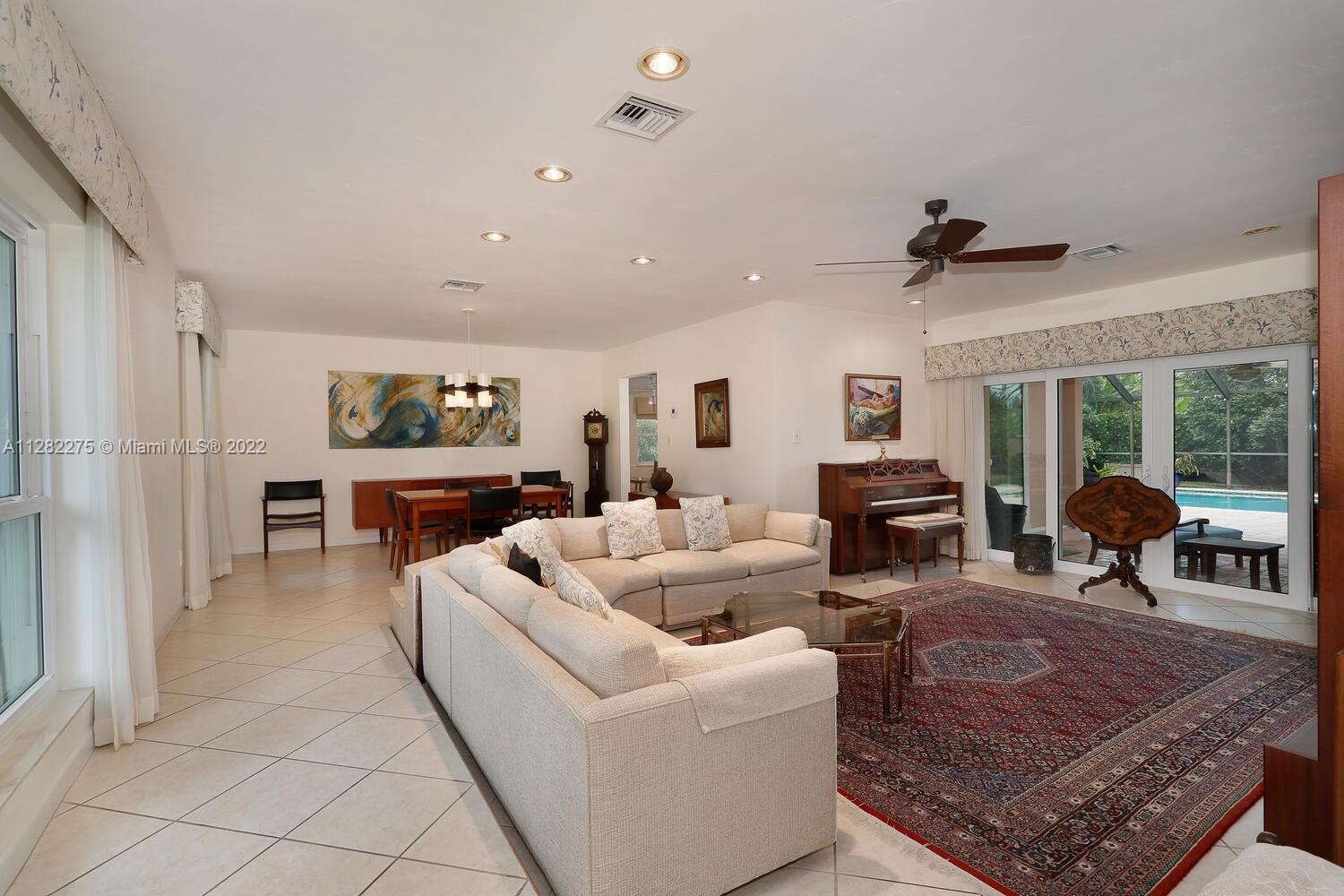 Lovely home in the Village of Pinecrest – known for it’s top-ranked schools, wooded bike trails and Pinecrest Gardens & Cultural Arts Park. The home’s light-filled living spaces open to a covered terrace & screened patio w/sparkling pool. 15,000 SF lot. Bright, oversized kitchen features wood cabinetry, stainless appliances, breakfast area. 4 BR’s + 2 renovated baths. Major updates include: (2017) AC system, (2020) upgraded alarm system, (2009) full-house back-up generator, (2019) kitchen appliances + washer/dryer, (2016) new roof, (2014) impact resistant windows & doors throughout. Enjoy the expansive & lush tropical garden with rare specimen plants including a Lignum Vitae tree and Bailey, Licuala Spinosa & Betel Nut palms. Minutes to South Miami, Coral Gables & Coconut Grove.