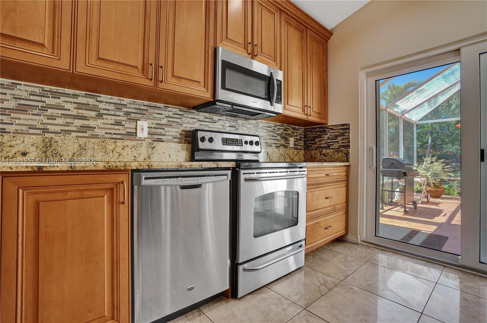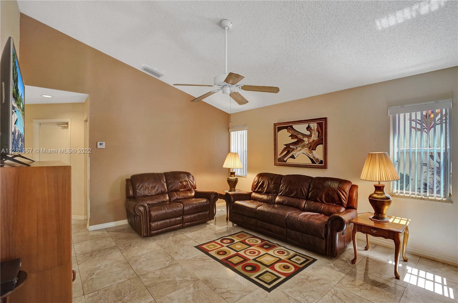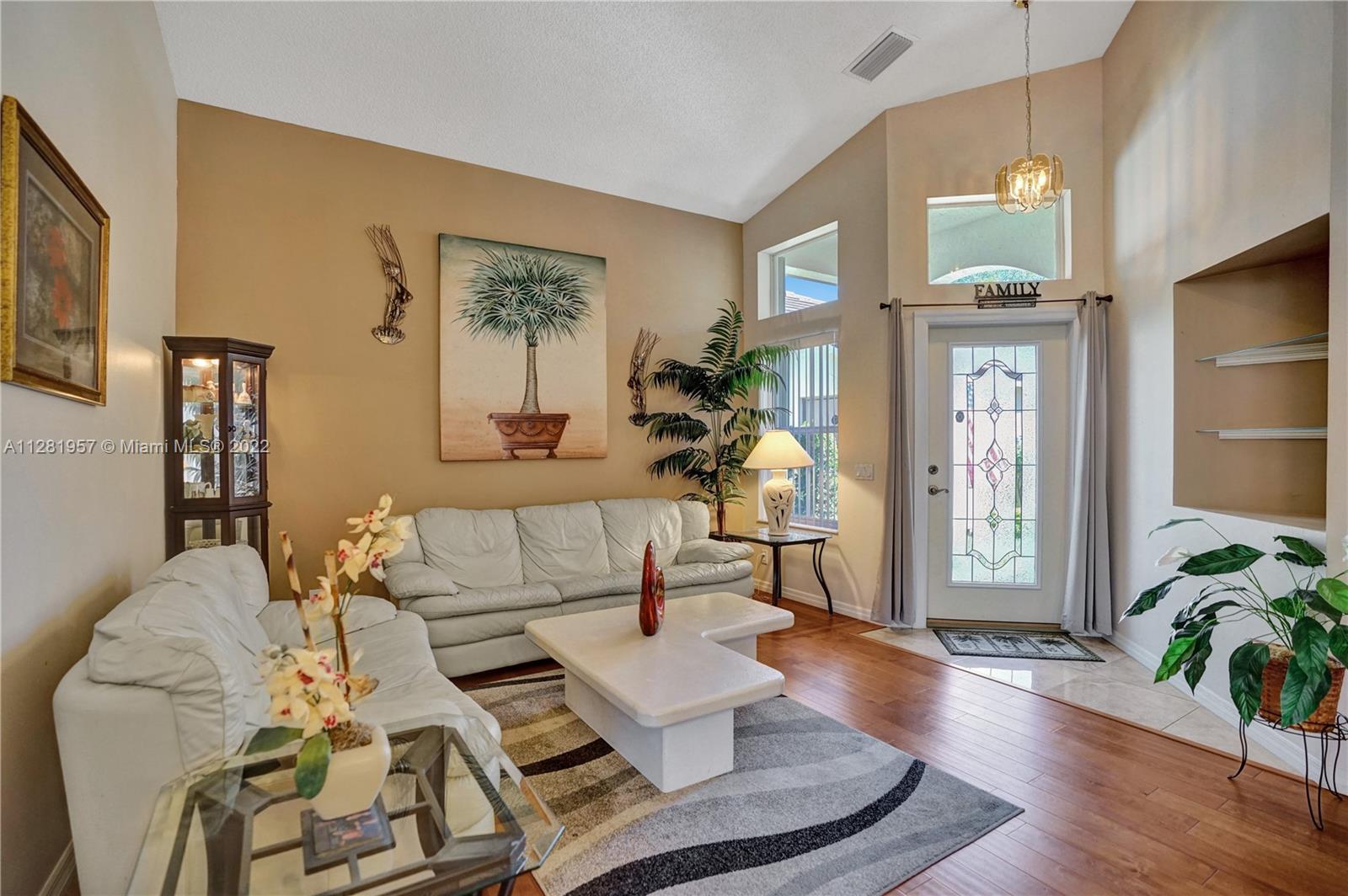 This comfortable waterfront home features a New Roof, New high grade Impact Doors + Remodeled Bathrooms. This home's versatile interior offers a fantastic & spacious split bedroom layout, with high vaulted ceilings, engineered wood & tile flooring + convenient interior full size laundry closet. The custom wood kitchen features storage pull-outs, stone counters & stainless appliance package. Relax in your totally screened and very private patio overlooking a serene lake & lush greenery, the ideal spot for nature gazing. Bonus features: New exterior paint, New Rain Gutters, New blinds, Updated A/C & hybrid water heater, lake-fed irrigation system & accordion shutters. The Lakes is centrally located, offering gated access, pool & play areas, easy access to parks, shopping & A+ Schools.