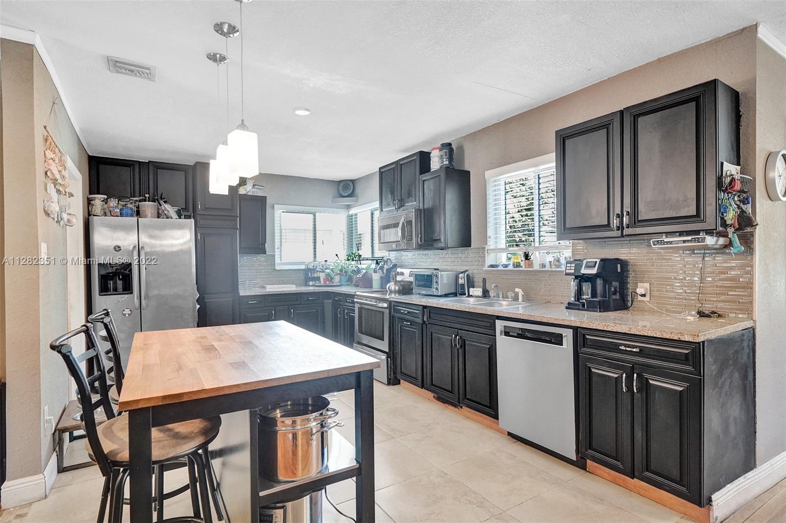 OVERSIZED LOT IN A GREAT LOCATION IN HOLLYWOOD! THIS 4 BEDROOM, 2 BATH HOME OFFERS A CIRCULAR DRIVE FOR AMPLE PARKING, LOTS OF WINDOWS TO CREATE AN OPEN AND BRIGHT FEEL, SPACIOUS OPEN KITCHEN FEATURING DARK BROWN CABINETRY, GRANITE COUNTERTOPS, SS APPLIANCES, AND GLASS TILE BACKSPLASH. THE OVERSIZED FAMILY ROOM FEATURES EXPOSED WOOD BEAMS. THE PRIMARY SUITE FEATURES AN ENSUITE BATHROOM WITH STANDING SHOWER. ADDITIONAL FEATURES INCLUDE IMPACT GLASS, NEW A/C, AN ADDITIONAL ROOM WITH DOUBLE DOORS THAT CAN BE USED FOR STORAGE, LAUNDRY ROOM, ELECTRIC WATER HEATER, ATTIC SPACE, AND A GAZEBO WITH BUILT IN BAR IN THE BACKYARD PERFECT FOR ENTERTAINING. LOCATED JUST MINUTES FROM DOWNTOWN HOLLYWOOD, THE BEACH, FTL AIRPORT, AVENTURA MALL, I95 AND MORE!