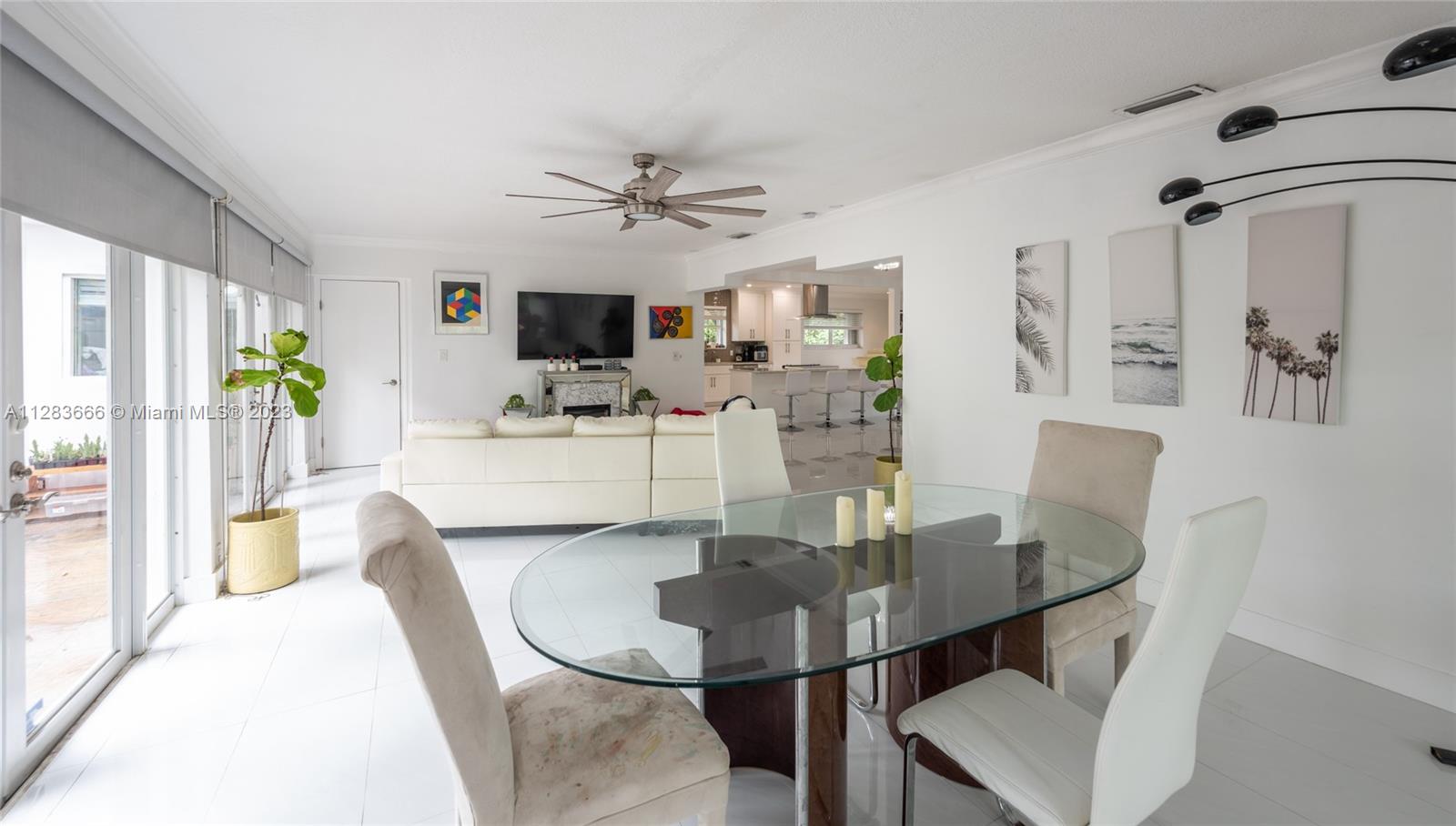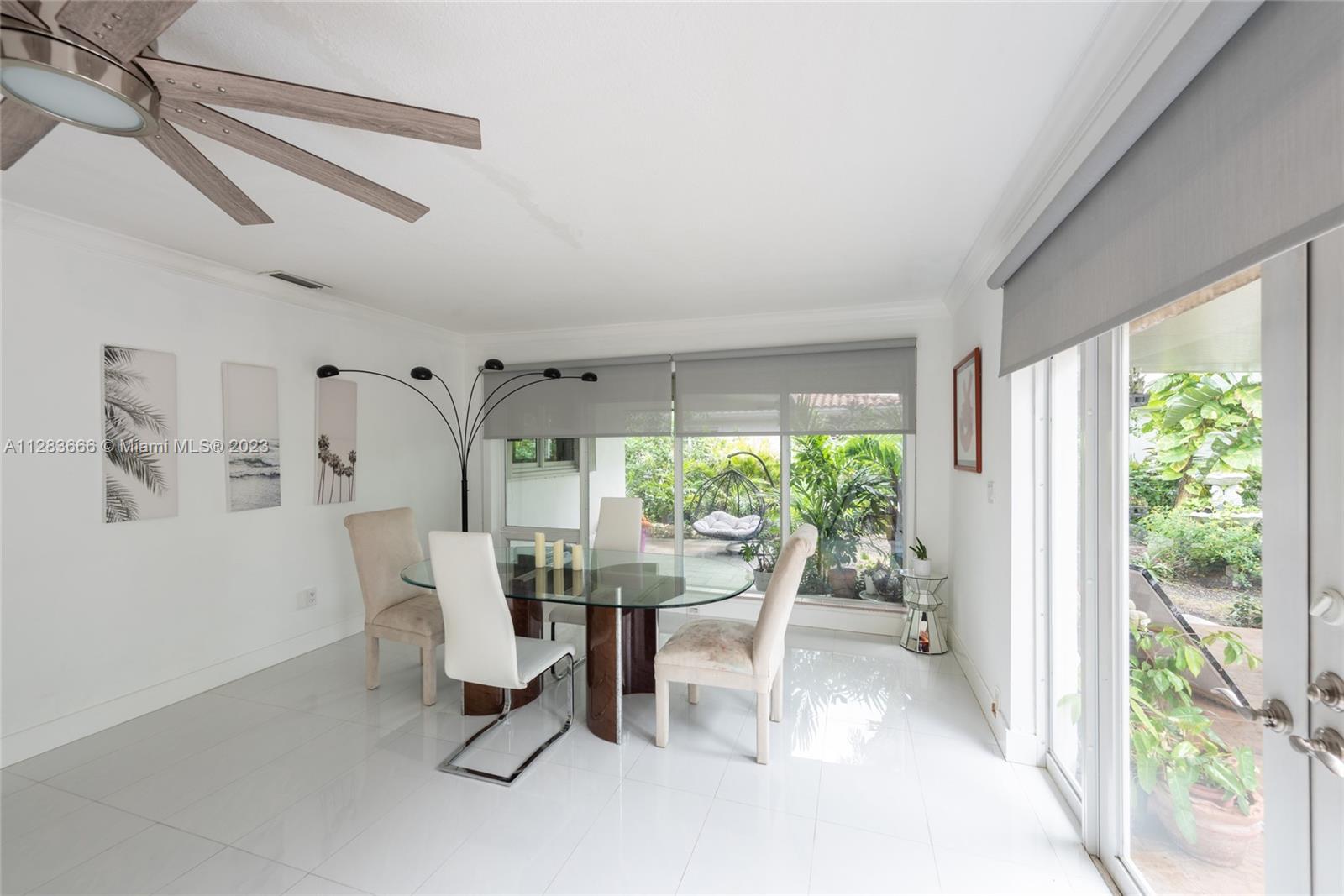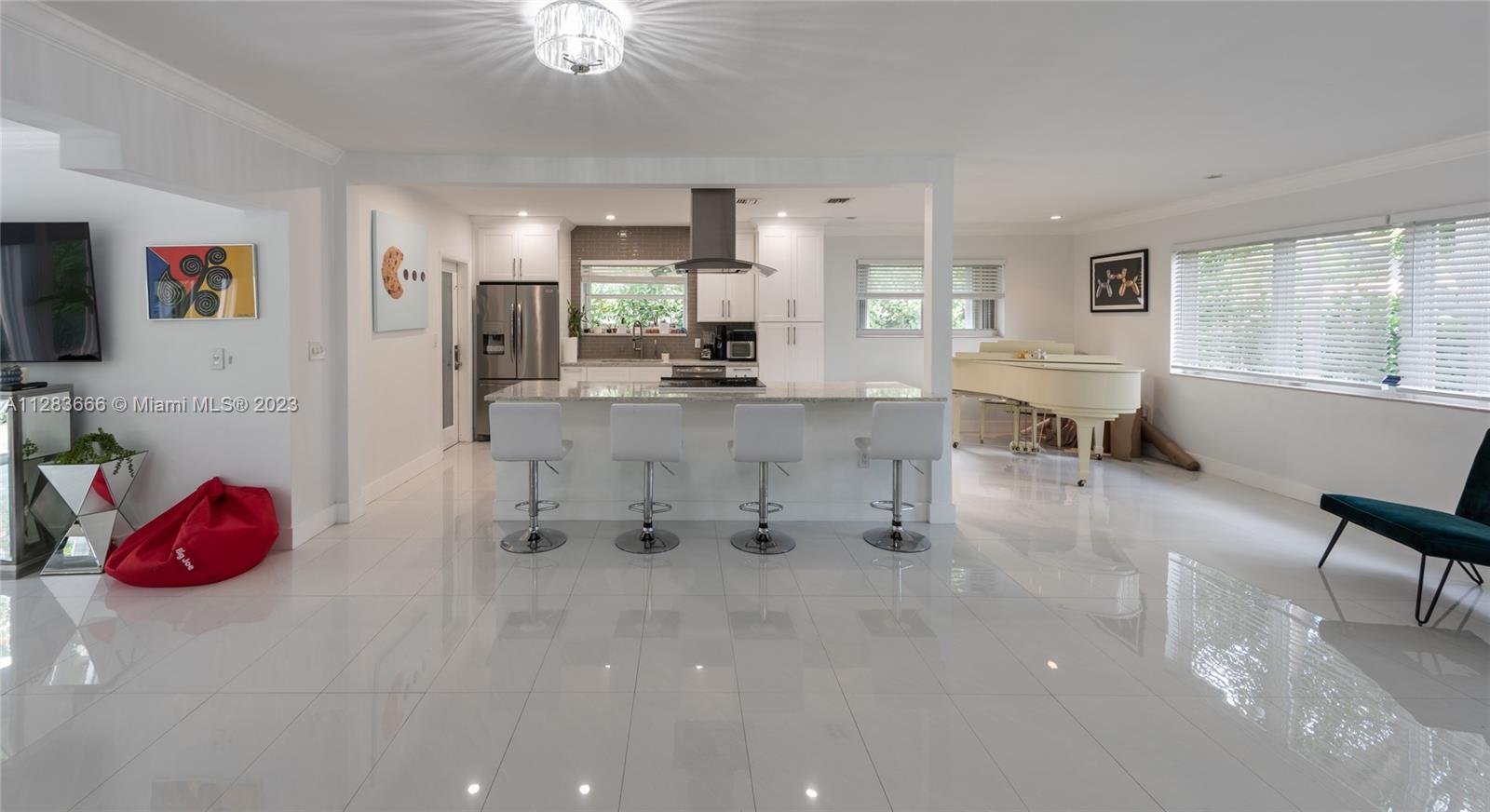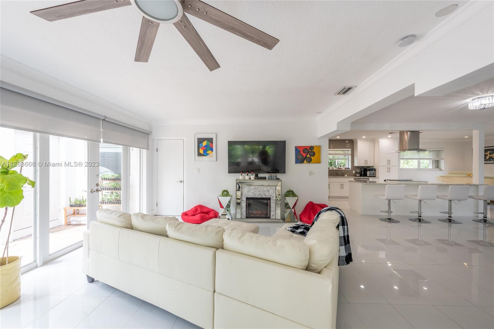Light and bright just-updated 4/2 in serene and quiet pocket of super-sought-after Miami Shores. Beautiful home with open floor plan and lots of light. Many updates include sleek white porcelain flooring throughout, lots of impact windows uniting interior with tropical garden, new chic white kitchen with quartz counters, and stylish baths. Amazing backyard with outstanding landscaping and plenty of room for a pool. A great value in a super-desirable location.