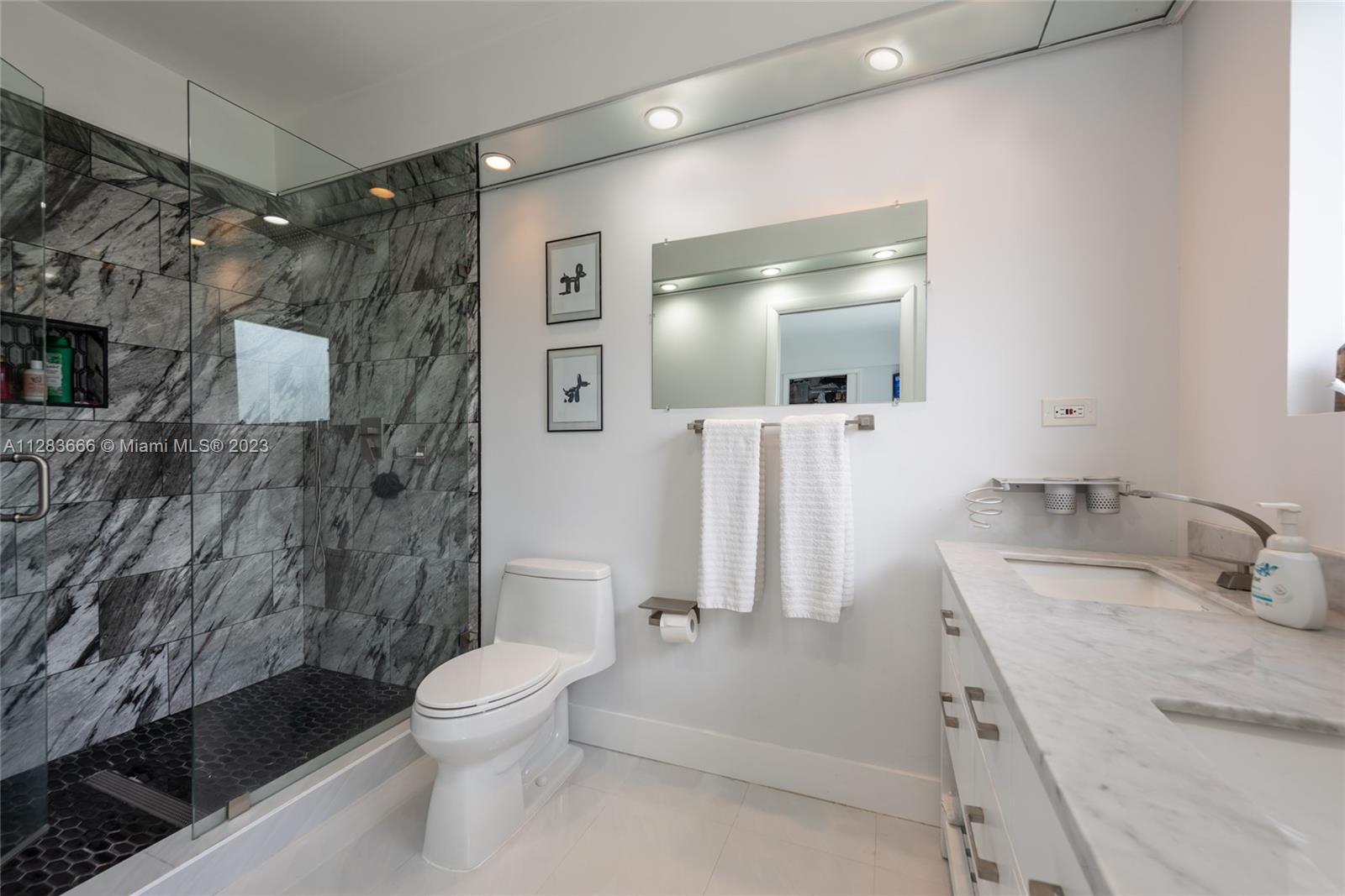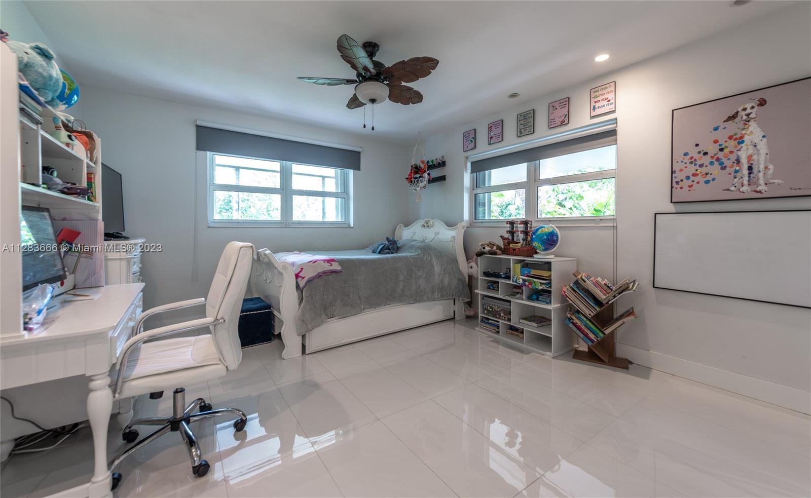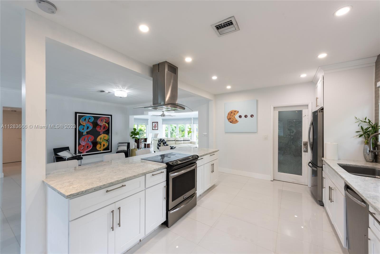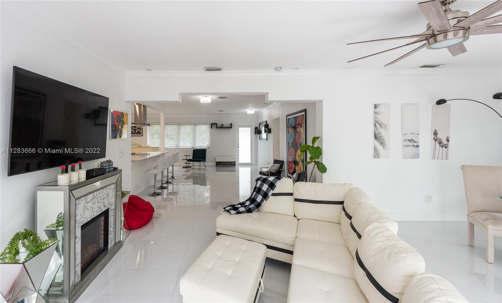 Light and bright just-updated 4/2 in serene and quiet pocket of super-sought-after Miami Shores. Beautiful home with open floor plan and lots of light. Many updates include sleek white porcelain flooring throughout, lots of impact windows uniting interior with tropical garden, new chic white kitchen with quartz counters, and stylish baths. Amazing backyard with outstanding landscaping and plenty of room for a pool. A great value in a super-desirable location.