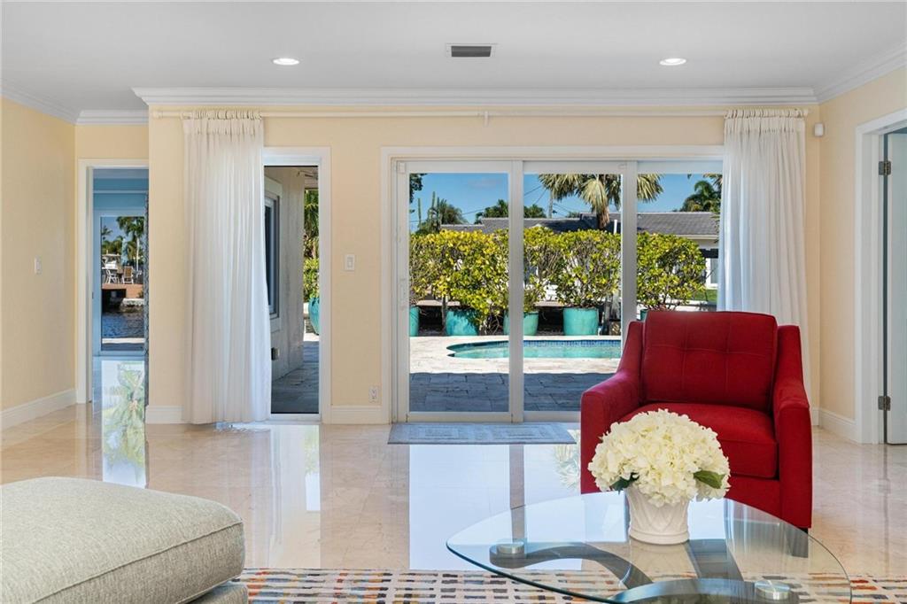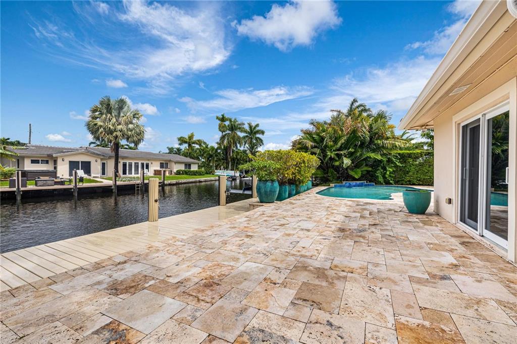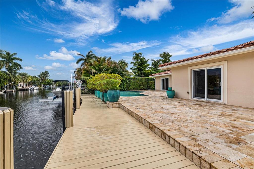 Live a dream life on Poinsettia Dr in E. Ft Lauderdale. This resort-style, ocean access, riverfront, pool home features a total of 4 beds 3 baths with a large open living room in a split floor plan. As a bonus, one bed & bath are in a rare, permitted, enclosed-garage, guest house. The separate entrance guest house includes its own TV room & kitchen. Perfect for visitors, in-laws, or potential rental income. This property boasts lush landscaping, large boat dock, Golden-brand boat lift, spacious main kitchen with Sub-Zero Refrigerator, Dacor oven & microwave, and Bosch dishwasher, Turkish marble floors throughout home and guest suite, granite counter tops, tumbled travertine pavers in front & back, irrigation system, updated electrical system, Impact PPG sliders/windows, & Euro Tech Doors.