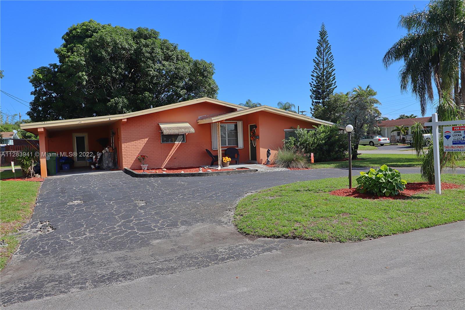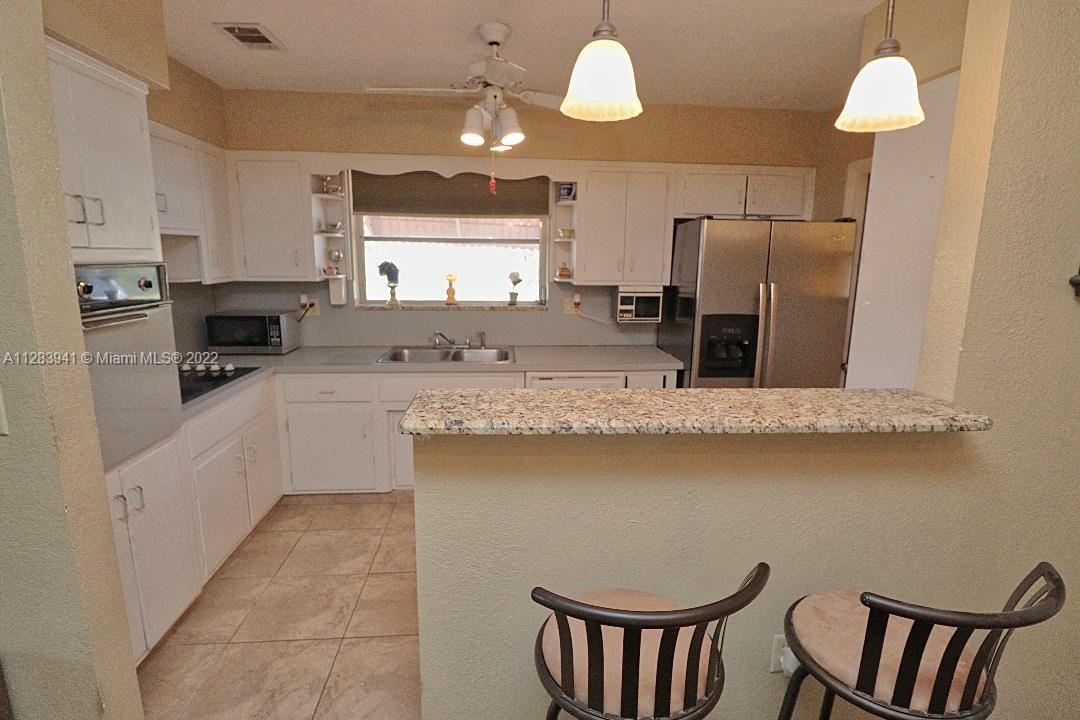 Sunswept neighborhood, Sunbrite model with Florida room, Updated ceramic tile, Updated electrical panel, Granite bar top counter with matching window sill, Updated range and stainless steel refrigerator, Storm panels and/or awnings, OVERSIZED 7,871 sf FENCED CORNER LOT with room for a pool, Circular driveway with extra parking, Sprinkler system with timer, Tropical mango tree