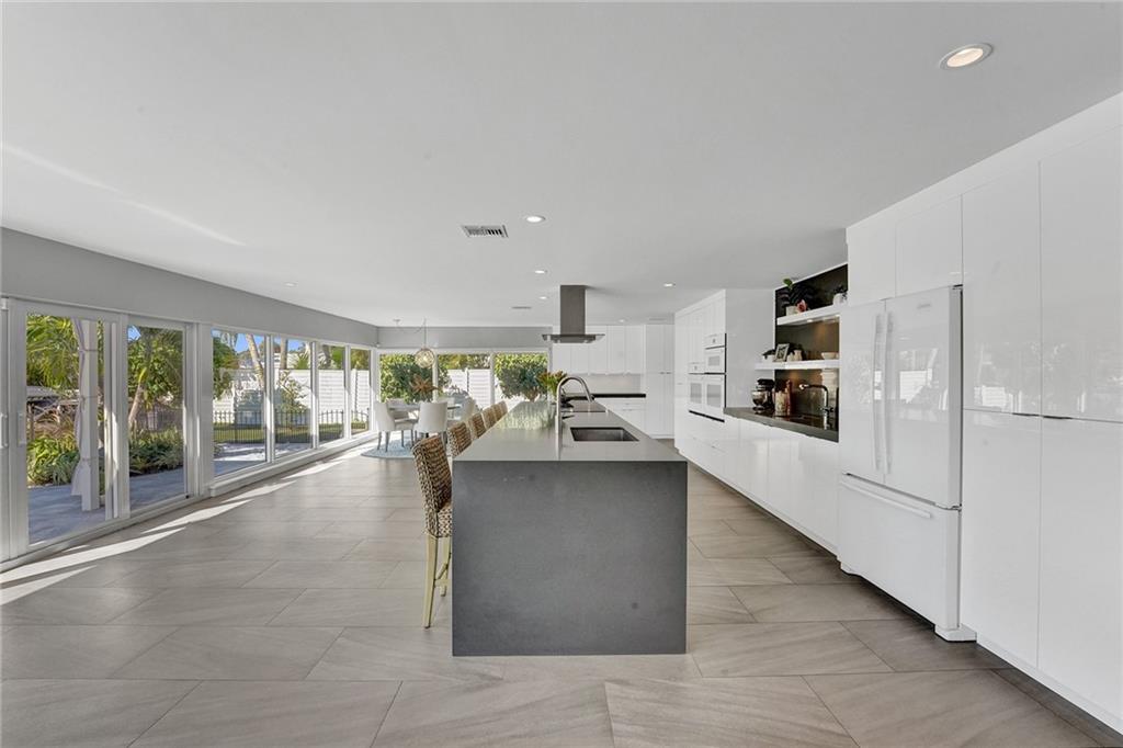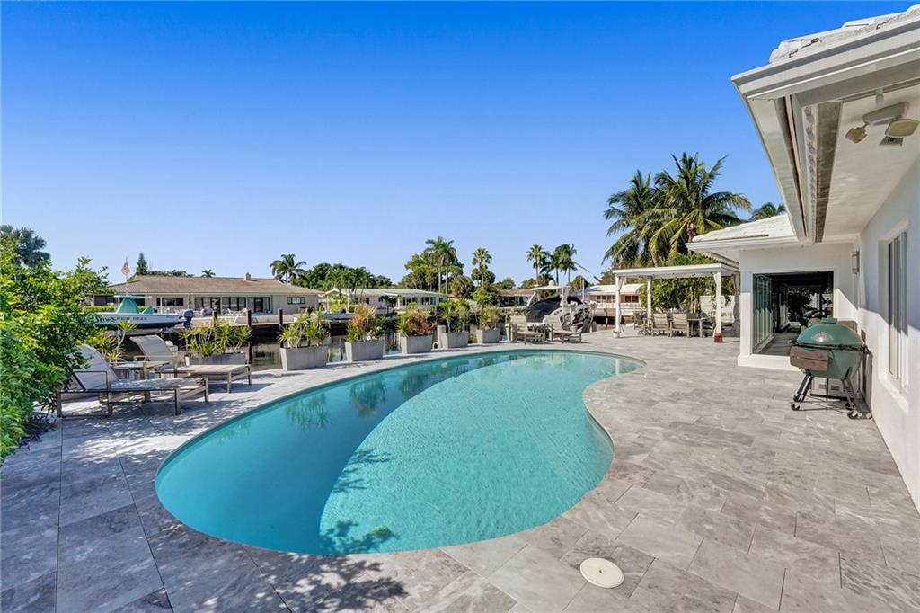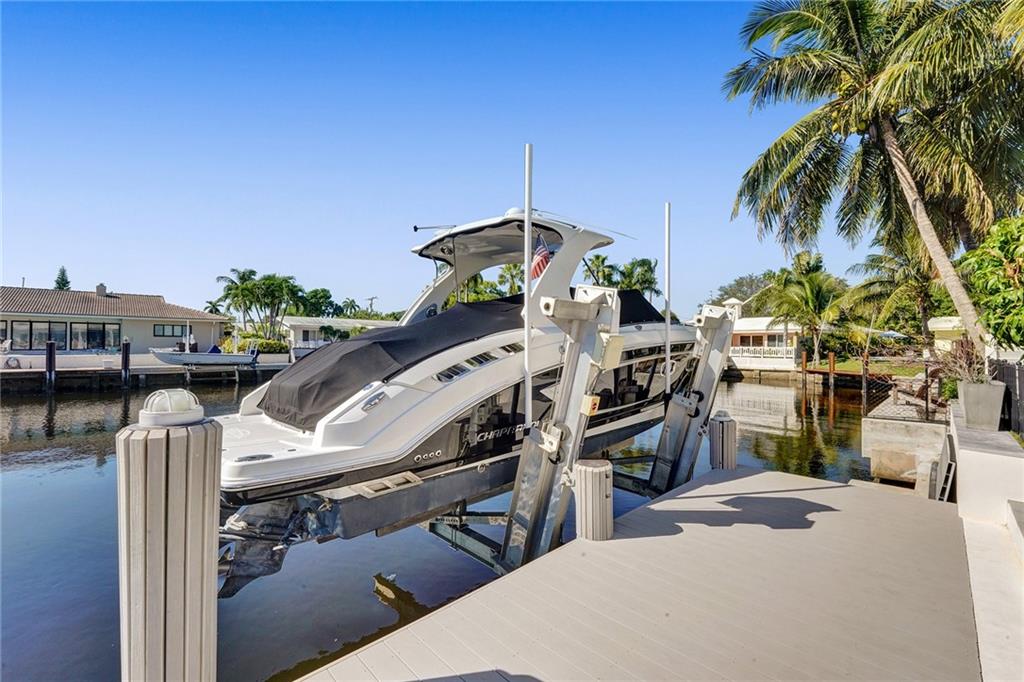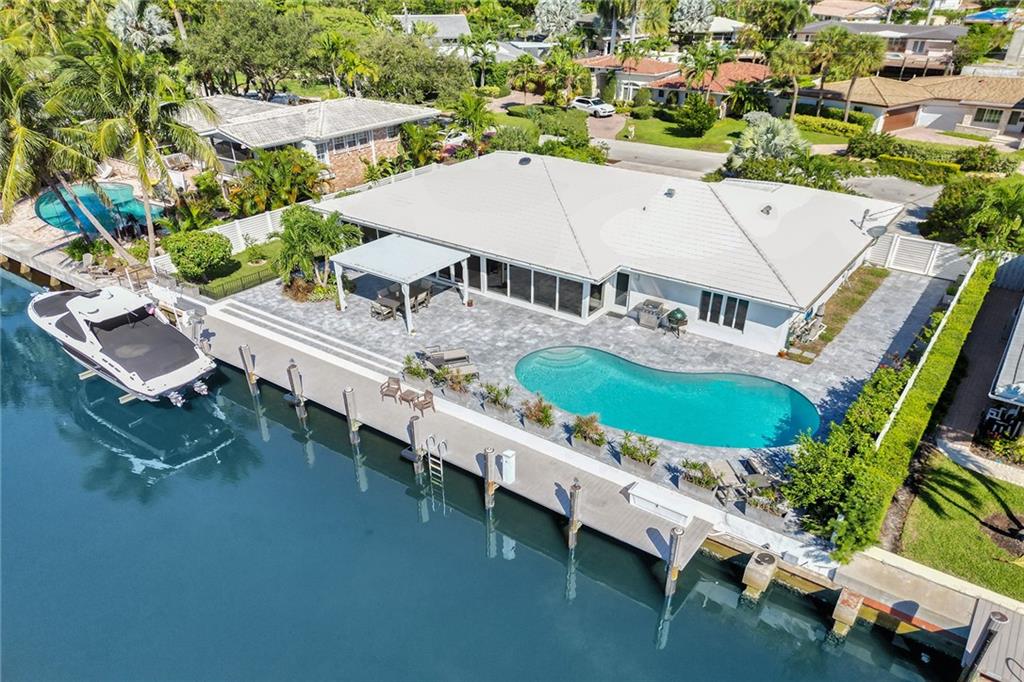 Stunning, modern, waterfront home in Coral Ridge. Situated on 100’ of deep water, no fixed bridges and a 120’ wide canal suitable for larger boats/catamarans. Open floorplan living and dining area with a massive kitchen island equipped with custom cabinets. This home was completely renovated down to the studs in 2014. Some of the updates include a saltwater pool with diamond brite, seawall cap and 80’ composite dock. Hurricane impact windows and doors. 400 amp electrical panel and wiring installed in 2014. All sewer lines were replaced with PVC. New roof and trusses in 2014. New A/C system was installed in 2018 including air handler, condensing unit, ductwork and thermostat. 12,000lb boat lift was installed less than 2 years ago. Bayview School District.