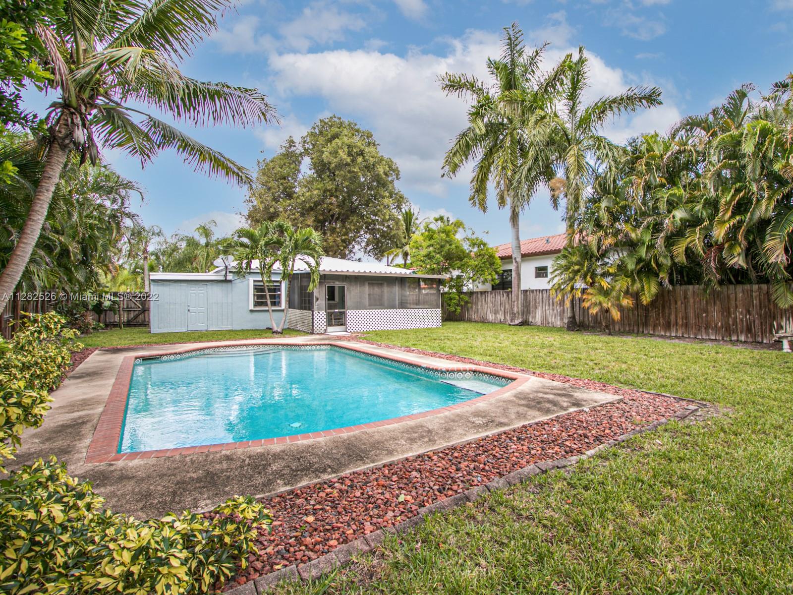 QUAINT HOLLYWOOD COTTAGE WITH LARGE BACKYARD OASIS WITH SWIMMING POOL AND SCREENED IN COVERED PATIO. TWO BEDROOMS AND TWO BATHS WITH EAT IN KITCHEN, LARGE LIVING, DINING ROOM. LAUNDRY ROOM AND OUTDOOR STORAGE SHED AND COVERED CARPORT. CLOSE TO YOUNG CIRCLE AND FAMOUS HOLLYWOOD BEACH AND BROADWALK.