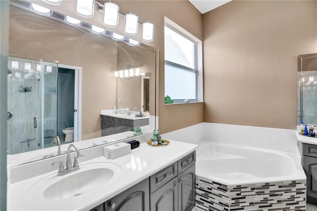 Look no further, this cozy and spectacular 3beds/2.5 Baths, upgraded Kitchen includes quartz counter tops & backsplash, white cabinetry and pantry, stainless steel appliances, the master bedroom features a walk-in closet and roman tub & Separate shower, two car garage with extended driveway to fit more cars, in a very private cul-de-sac with endless beautiful lake views, patio screened and extended back yard for family entertainment. WACH THE SLIDESHOW and you will be amazed. Great gated community of Monarch Lakes, sub-div. " Palm Cove, with easy access to major highways, turnpike, restaurants, shopping malls, schools and much more, Don't miss out !