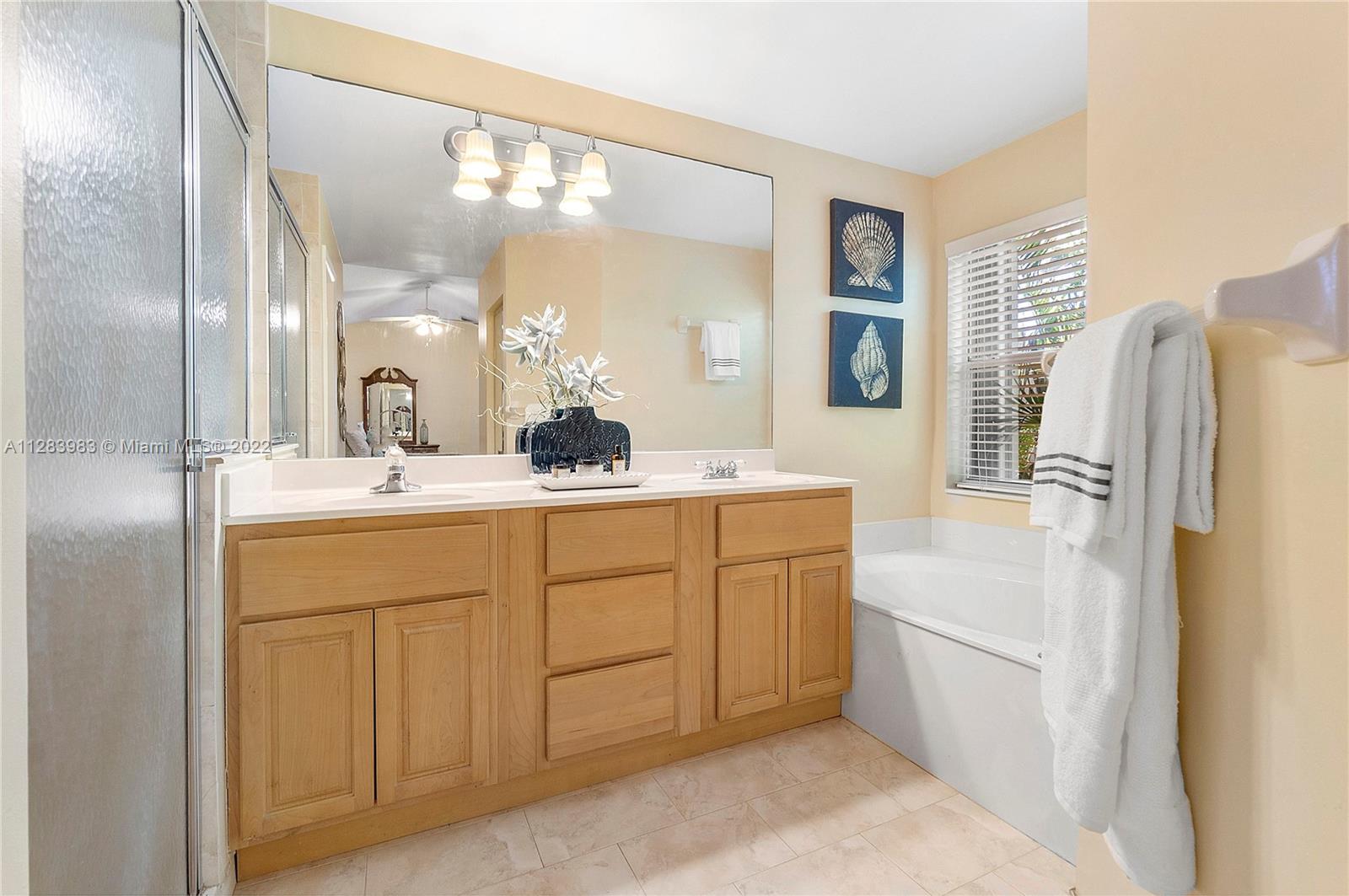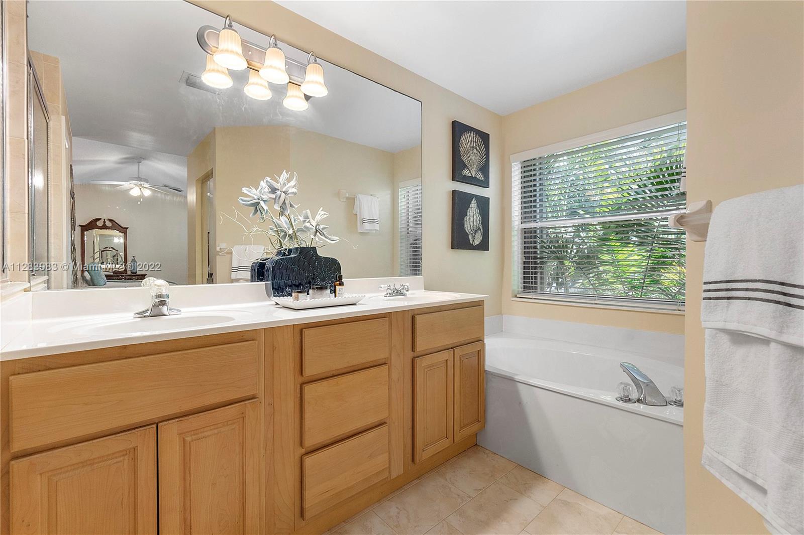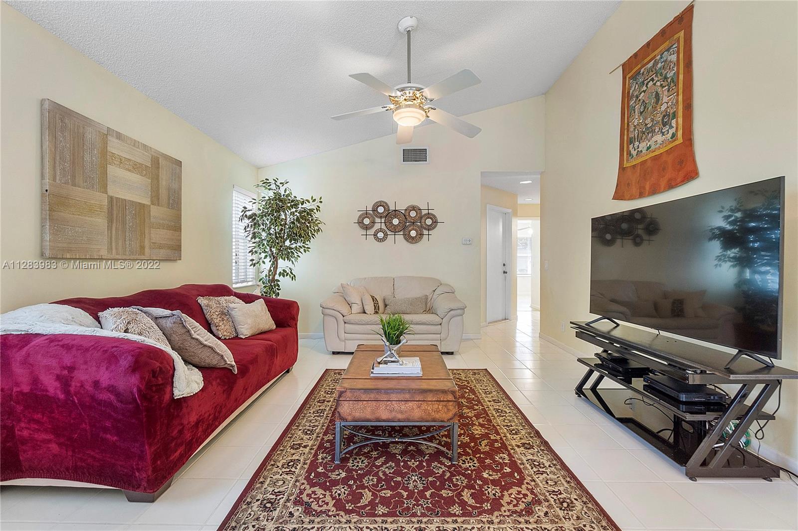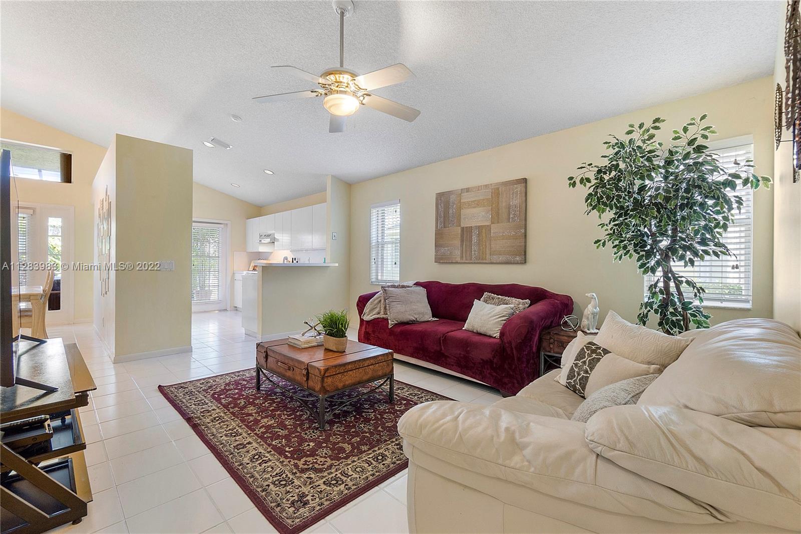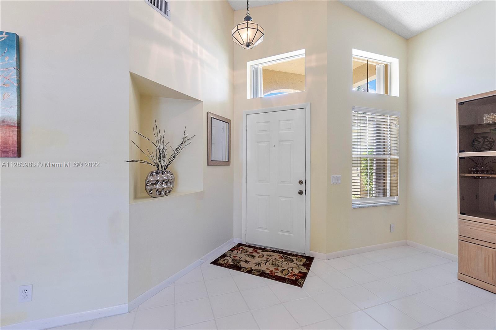 This elegant furnished home is in the highly desirable community of The Lakes! This lakeview home is not to be missed! Upon entrance, you are warmly greeted by an open concept with tile floors that extend throughout the home, vaulted ceilings, spacious and open giving you the comfort and feeling of home. This home is a split floor plan and an entertainers dream with plenty of kitchen cabinets and breakfast counter as well as open to the living areas for easy access as you entertain. The living area opens up to the screened patio area, enjoy the Lakeview. Master bath features soaking tub and separate shower. The Lakes has swimming pool/cabana baths, a sand covered tot-lot, the best schools in Westons Top School district, close to Weston Town Center and major roadways, dining and shopping.
