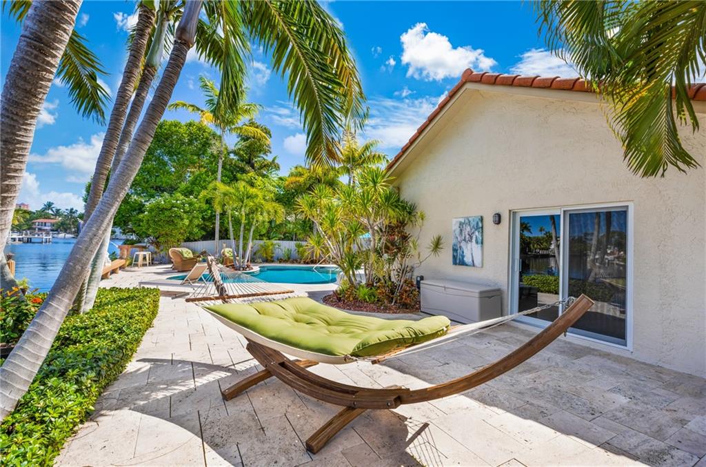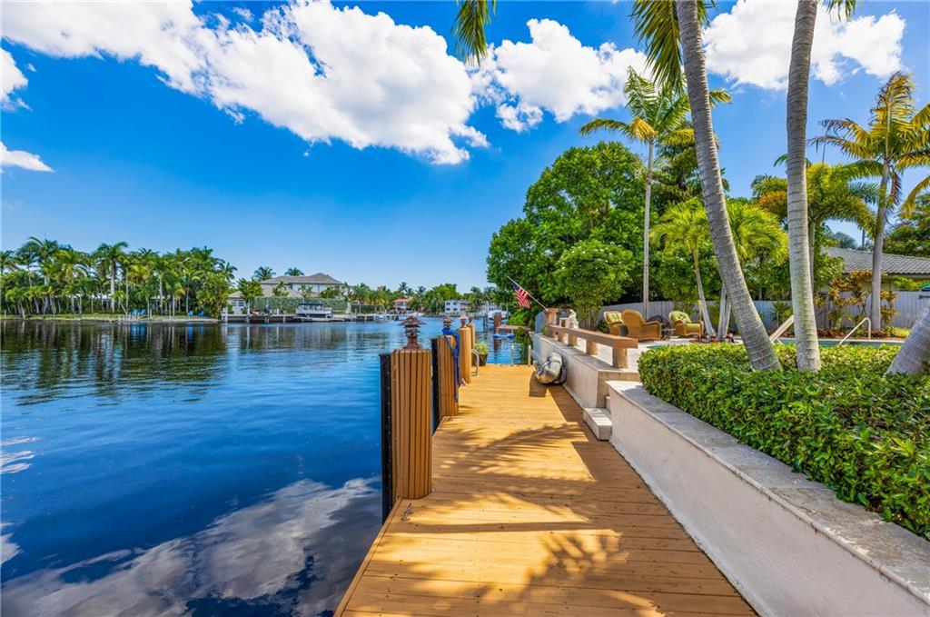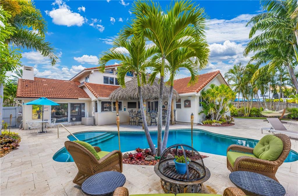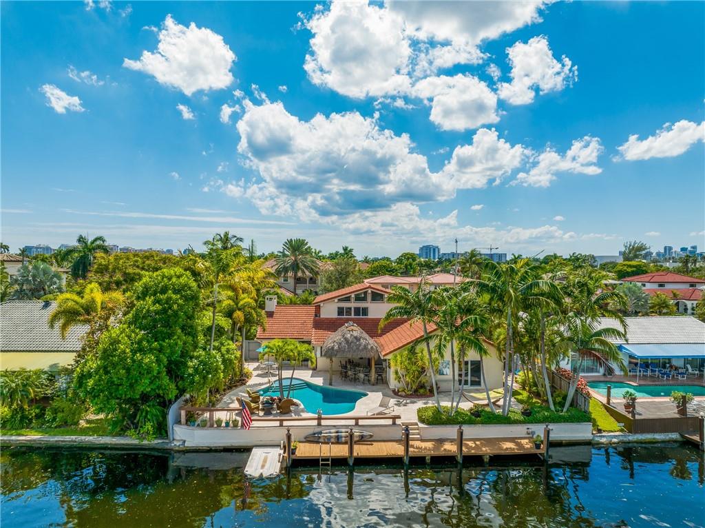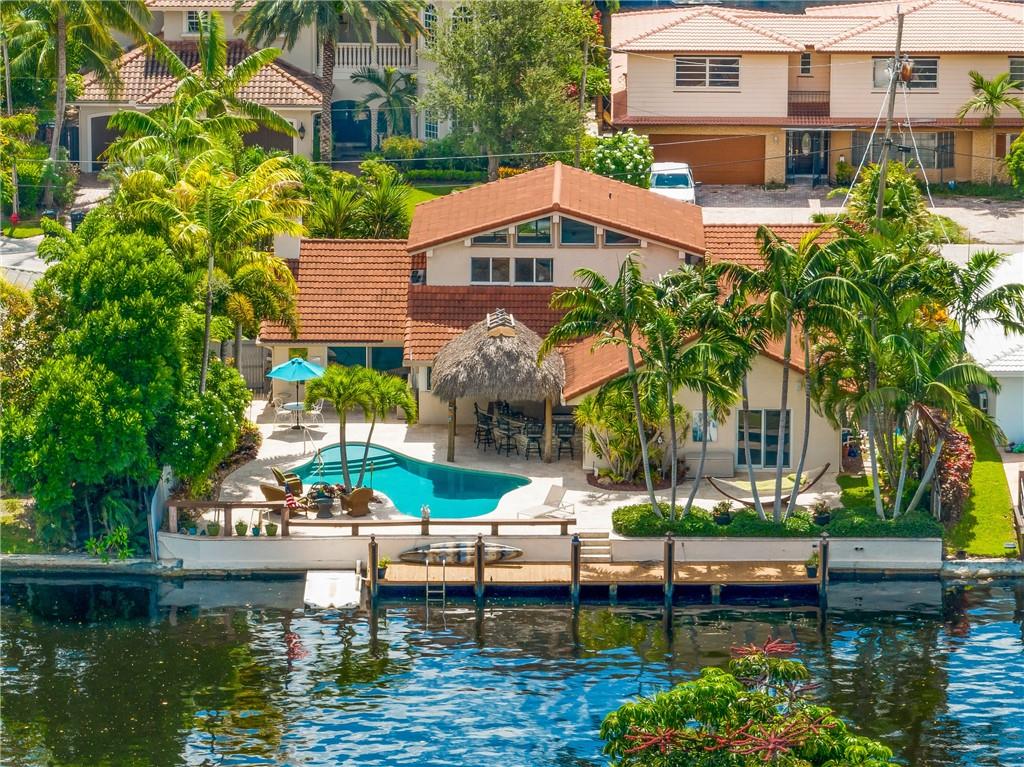 STUNNING WATERFRONT HOME WITH 75' OCEAN ACCESS. BEAUTIFULLY SITUATED 2 STORY HOME IN THE GATED BAL HARBOUR COMMUNITY. IMPACT WINDOWS AND DOORS. PERFECT FOR ENTERTAINING WITH BEAMED VOLUME CEILINGS AND OPEN CONCEPT LIVING. AMAZING VIEWS OF THE MIDDLE RIVER. 3 BED 2.5 BATH AND HUGE OFFICE/DEN. OPEN KITCHEN WITH ADJACENT DINING, LARGE LIVING ROOM WITH GAS FIREPLACE, OPEN STAIRWAY TO SECOND FLOOR. NEW TILE FLOORING, UPDATED BATHS, EN SUITE MASTER. 2 CAR GARAGE, FABULOUS TIKI BAR W/FULL GAS BBQ ON RESORT-LIKE SETTING. GORGEOUS FREE FORM HEATED POOL. FULL WIDE DOCK. FANTASTIC OPPORTUNITY IN A PRIME LOCATION. ADD YOUR PERSONAL TOUCHES TO MAKE THIS YOUR PERSONAL SHOWCASE. WALKING DISTANCE TO GREAT SHOPPING AND THE BEST RESTAURANTS. BIKE TO THE BEACH AND MINUTES TO GALLERIA MALL AND DOWNTOWN FTL.