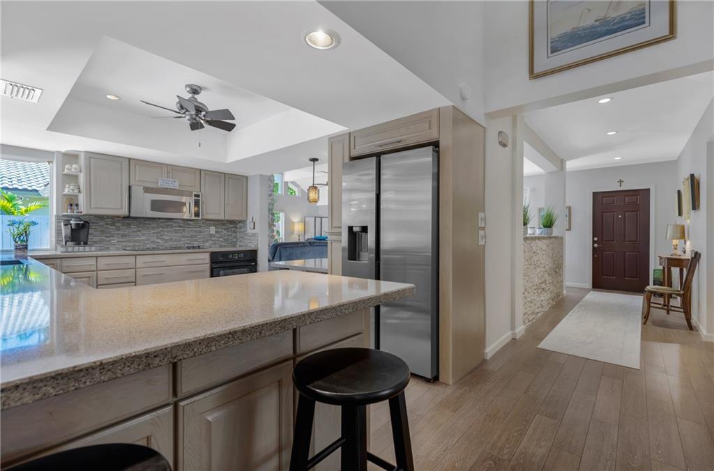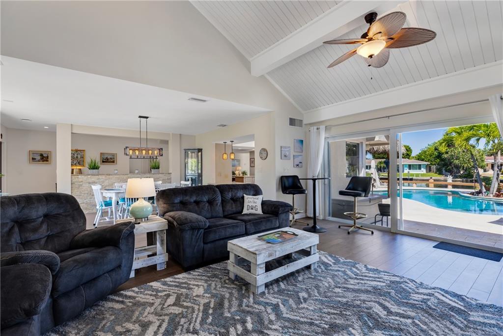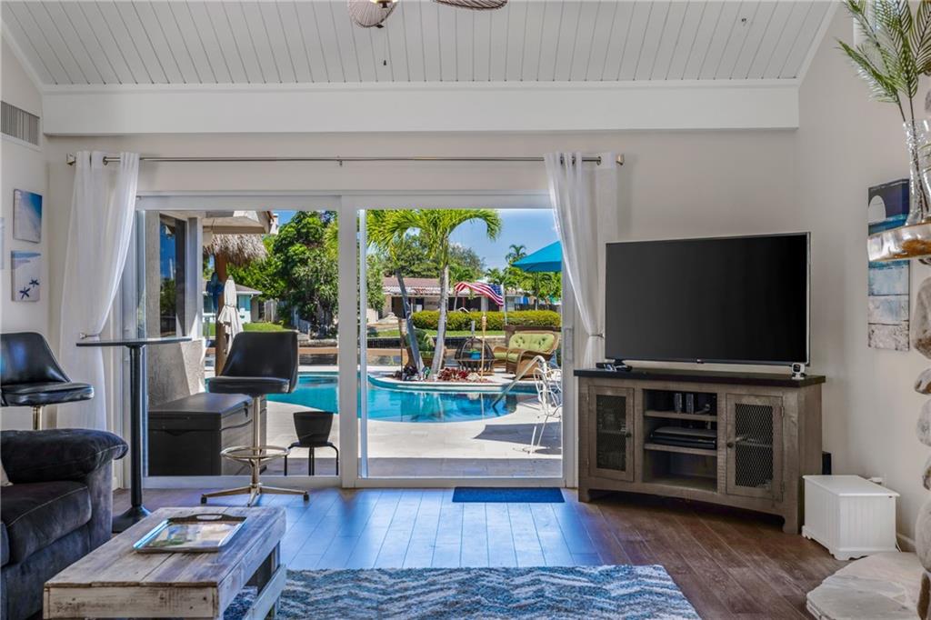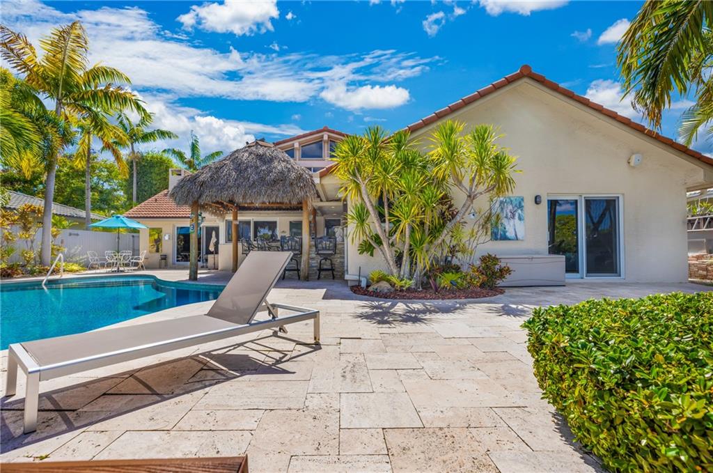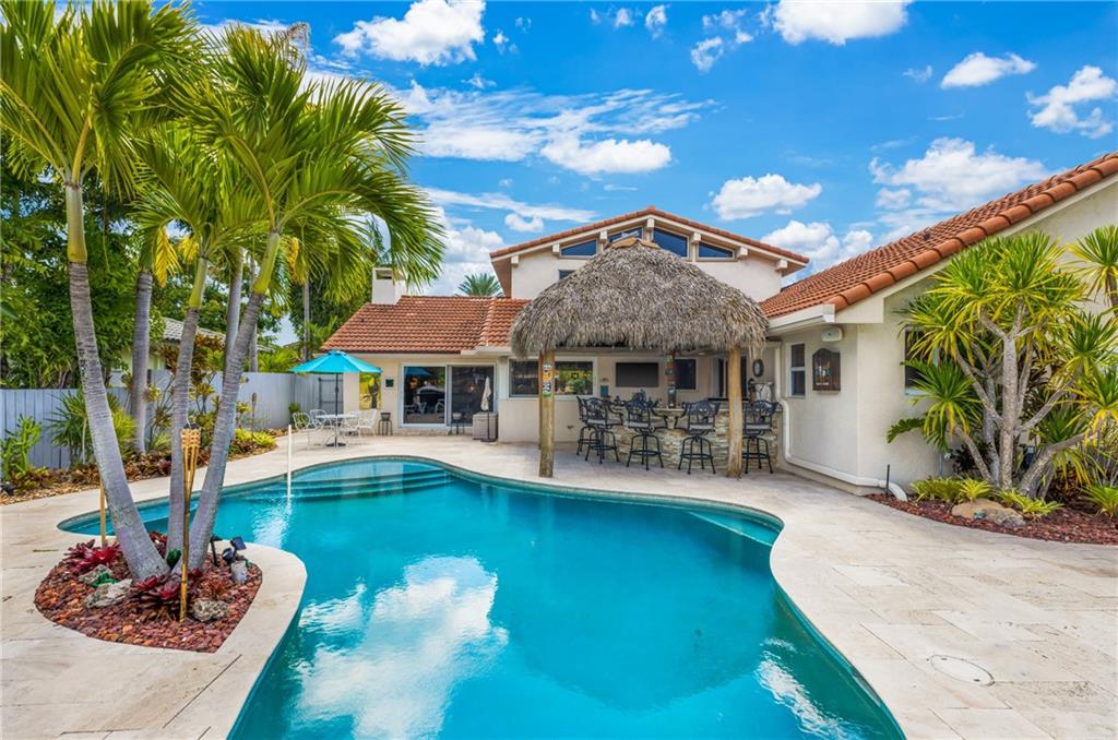 STUNNING WATERFRONT HOME WITH 75' OCEAN ACCESS. BEAUTIFULLY SITUATED 2 STORY HOME IN THE GATED BAL HARBOUR COMMUNITY. IMPACT WINDOWS AND DOORS. PERFECT FOR ENTERTAINING WITH BEAMED VOLUME CEILINGS AND OPEN CONCEPT LIVING. AMAZING VIEWS OF THE MIDDLE RIVER. 3 BED 2.5 BATH AND HUGE OFFICE/DEN. OPEN KITCHEN WITH ADJACENT DINING, LARGE LIVING ROOM WITH GAS FIREPLACE, OPEN STAIRWAY TO SECOND FLOOR. NEW TILE FLOORING, UPDATED BATHS, EN SUITE MASTER. 2 CAR GARAGE, FABULOUS TIKI BAR W/FULL GAS BBQ ON RESORT-LIKE SETTING. GORGEOUS FREE FORM HEATED POOL. FULL WIDE DOCK. FANTASTIC OPPORTUNITY IN A PRIME LOCATION. ADD YOUR PERSONAL TOUCHES TO MAKE THIS YOUR PERSONAL SHOWCASE. WALKING DISTANCE TO GREAT SHOPPING AND THE BEST RESTAURANTS. BIKE TO THE BEACH AND MINUTES TO GALLERIA MALL AND DOWNTOWN FTL.