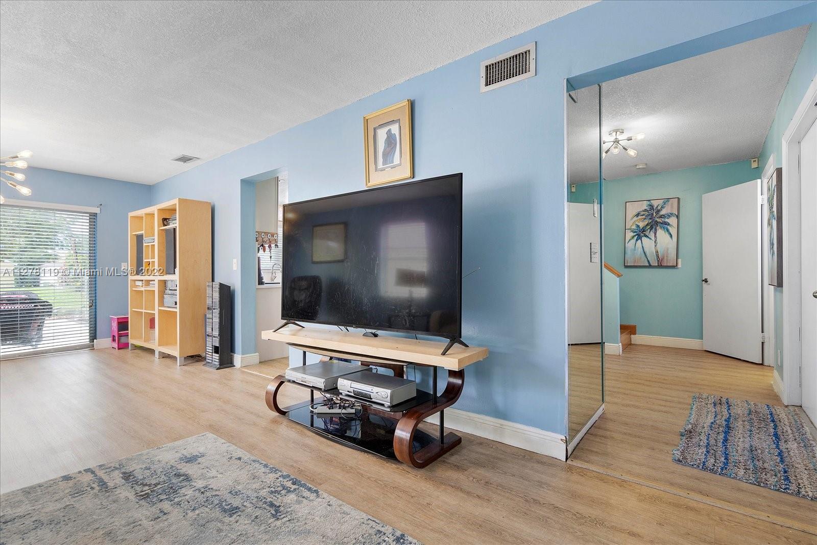 This 4 bedroom / 2.5 baths / 2 car garage with a magnificent pool is ready for you to move in! The large updated kitchen is open to the family room and has quartz counters, wood cabinets, and spacious island. Other updates include tile and laminate flooring and freshly painted rooms. You will surely be able to entertain or just relax in the quiet backyard with a large inground pool and a view of the lake. This sought after community of River Run is convenient to shops, schools, parks, close to major highways, City Hall, and minutes to the beach, Hard Rock hotel and stadium!