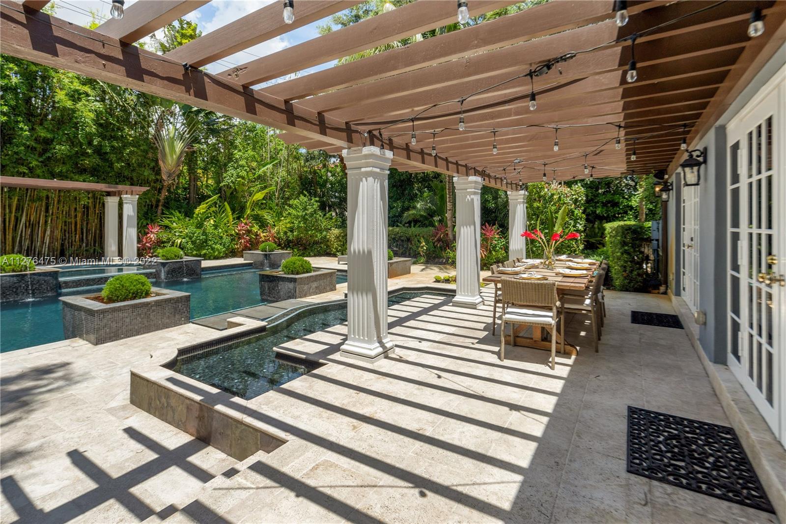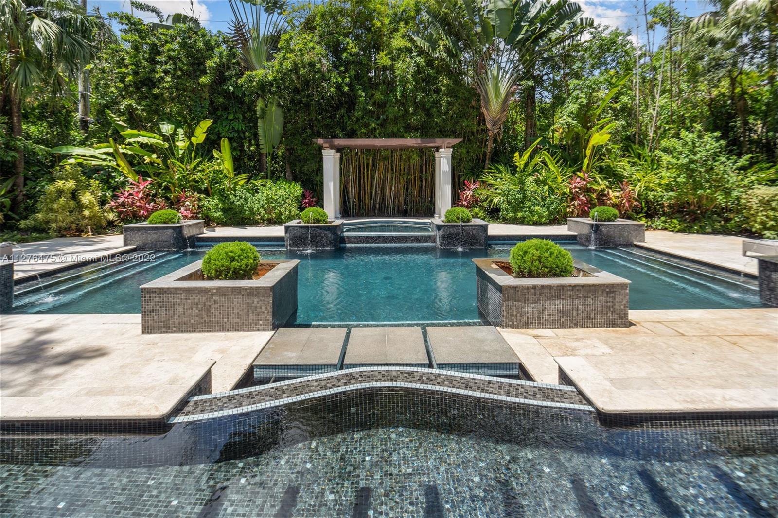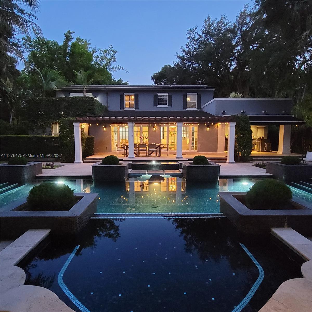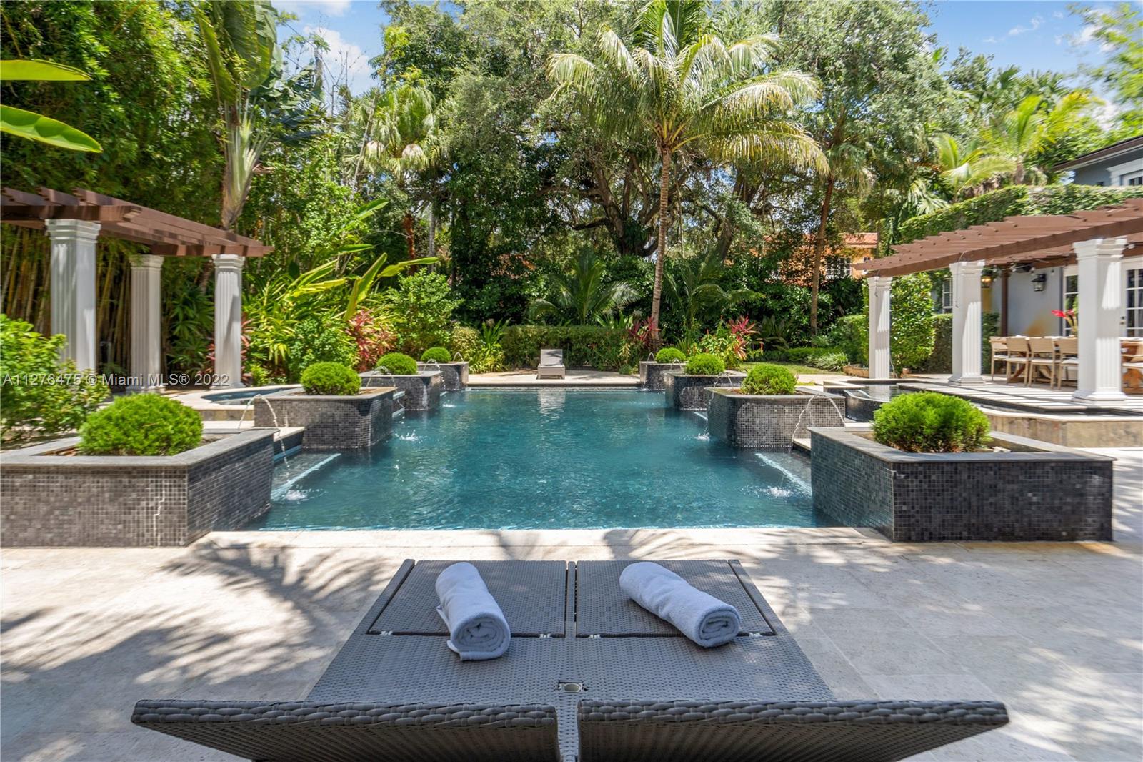GOLDEN TRIANGLE CLASSIC. Elegance with modern interiors on a large 14,000 sq ft lot on beautiful Anastasia Ave. One of the biggest residential pools in Coral Gables. 4 Bedrooms/ 4.5 Bathrooms. Lushly landscaped backyard looks like a tropical resort. Heated Pool. New modern kitchen with Quartzite countertops. Large Bedrooms in a split floorplan. 2 upstairs, 2 downstairs. High ceilings. Roof 2020. Impact windows and Doors. Video Tour in MLS link or on YOUTUBE.