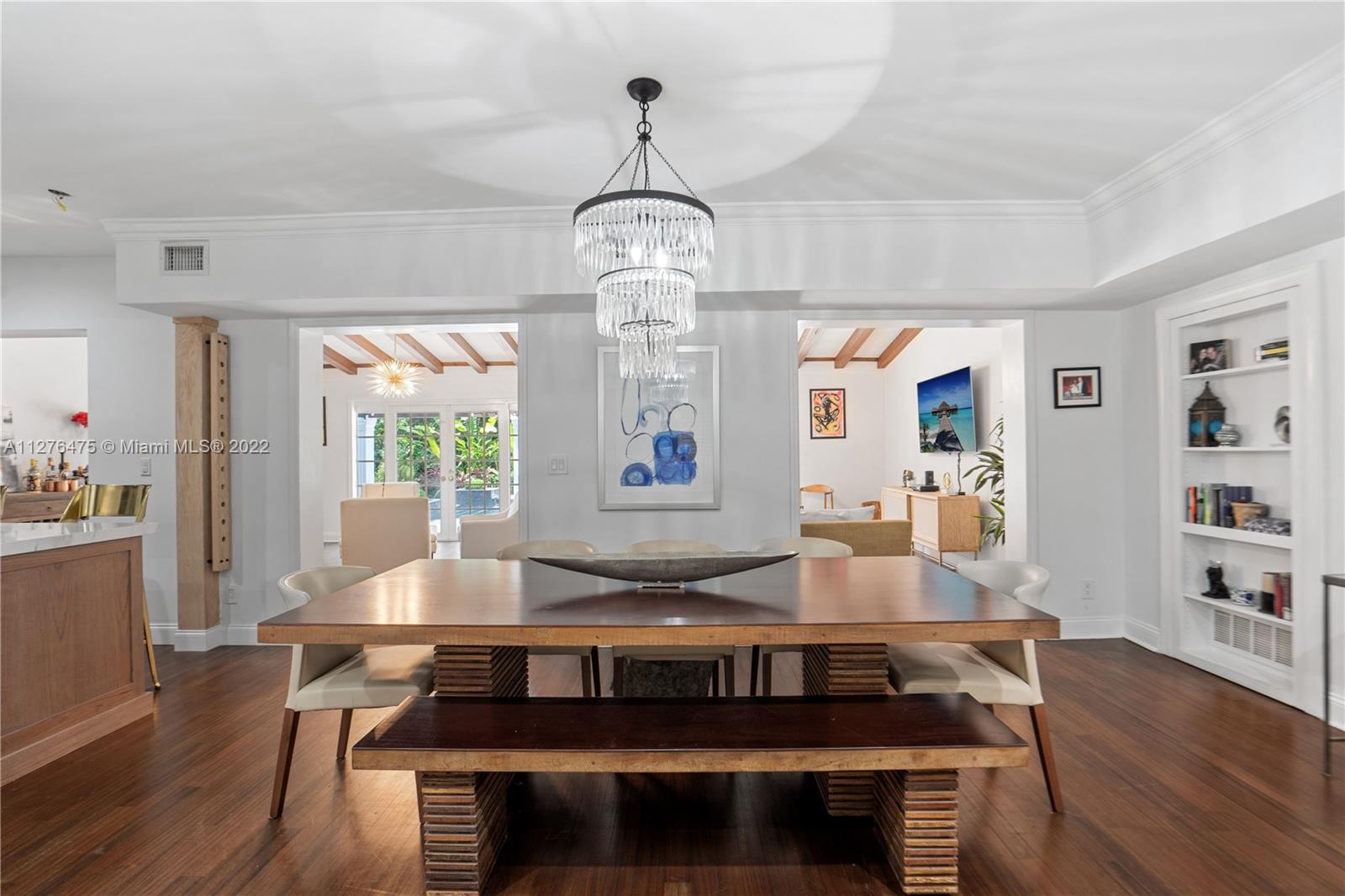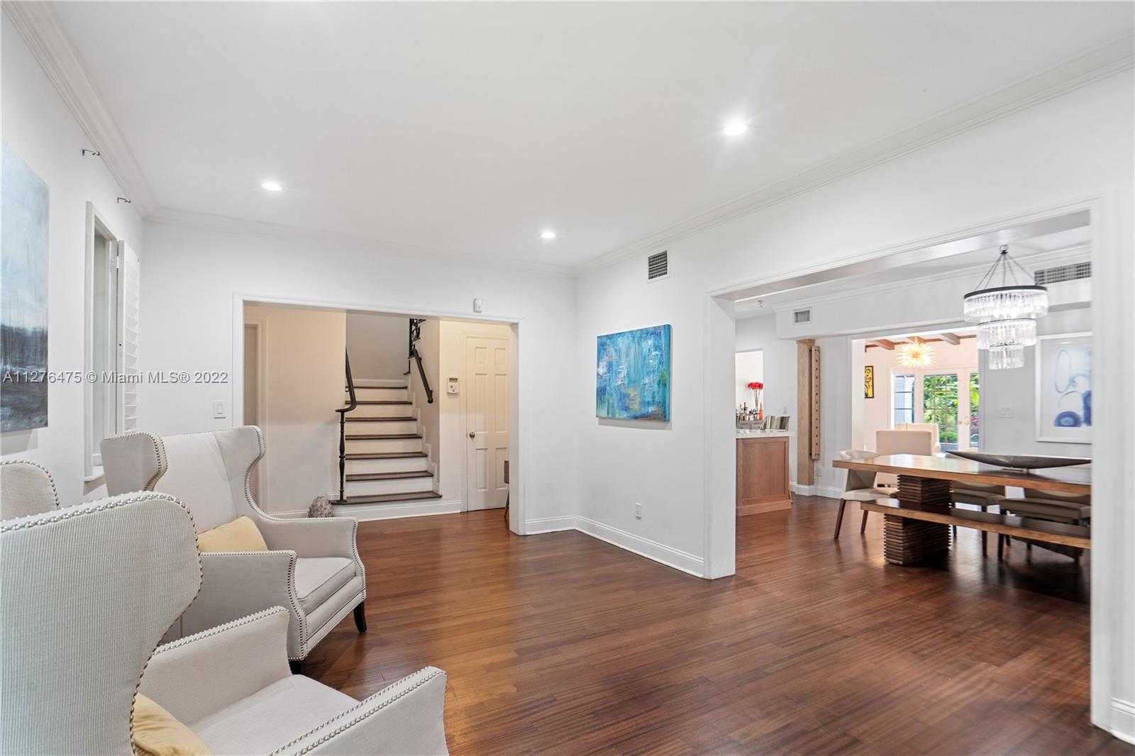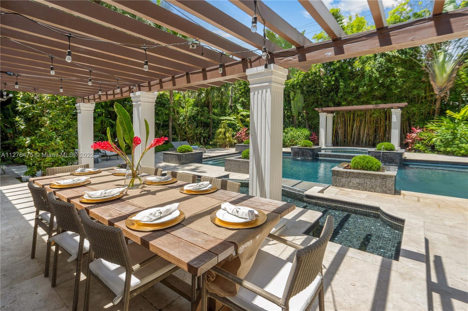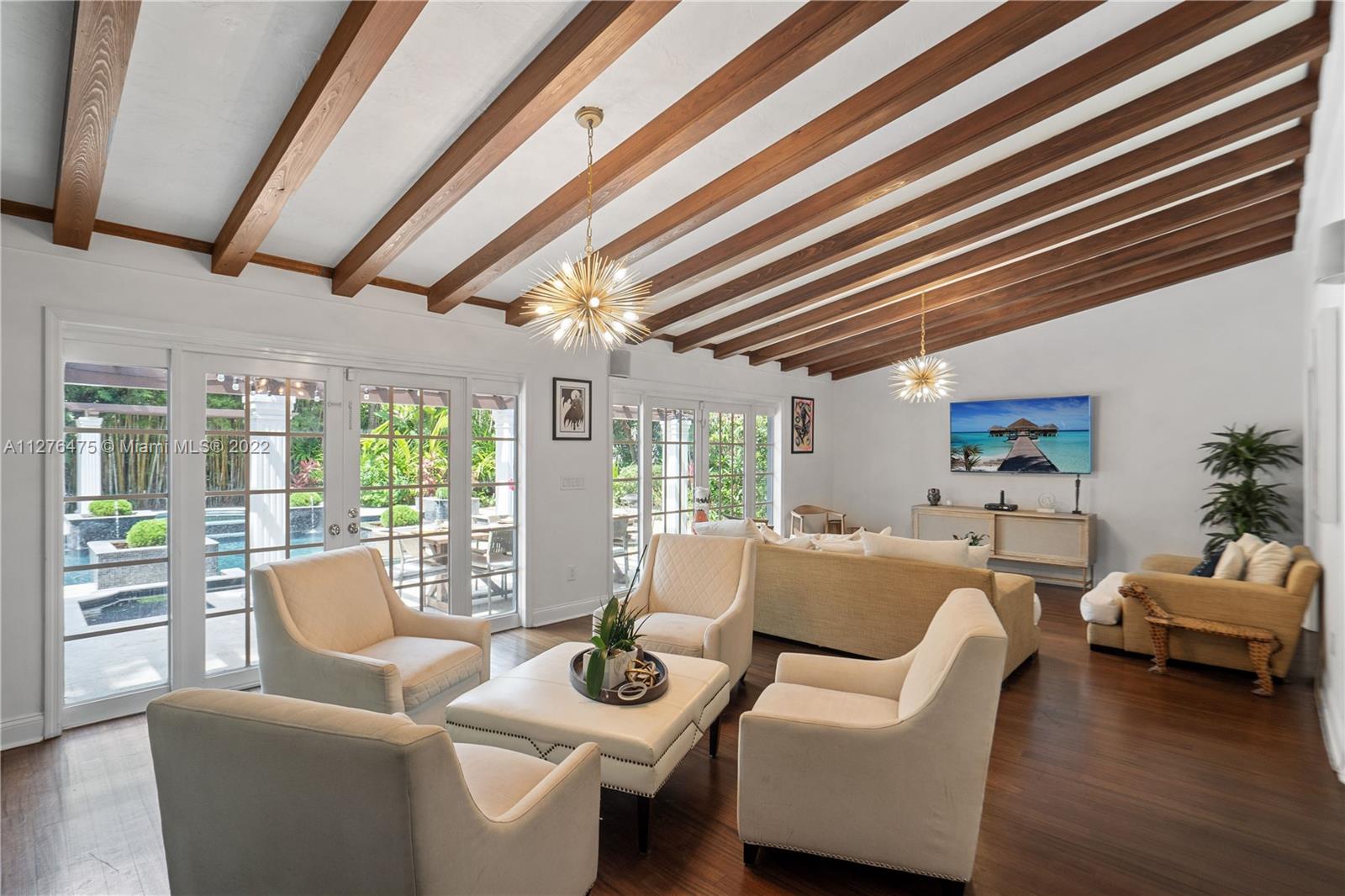 GOLDEN TRIANGLE CLASSIC. Elegance with modern interiors on a large 14,000 sq ft lot on beautiful Anastasia Ave. One of the biggest residential pools in Coral Gables. 4 Bedrooms/ 4.5 Bathrooms. Lushly landscaped backyard looks like a tropical resort. Heated Pool. New modern kitchen with Quartzite countertops. Large Bedrooms in a split floorplan. 2 upstairs, 2 downstairs. High ceilings. Roof 2020. Impact windows and Doors. Video Tour in MLS link or on YOUTUBE.