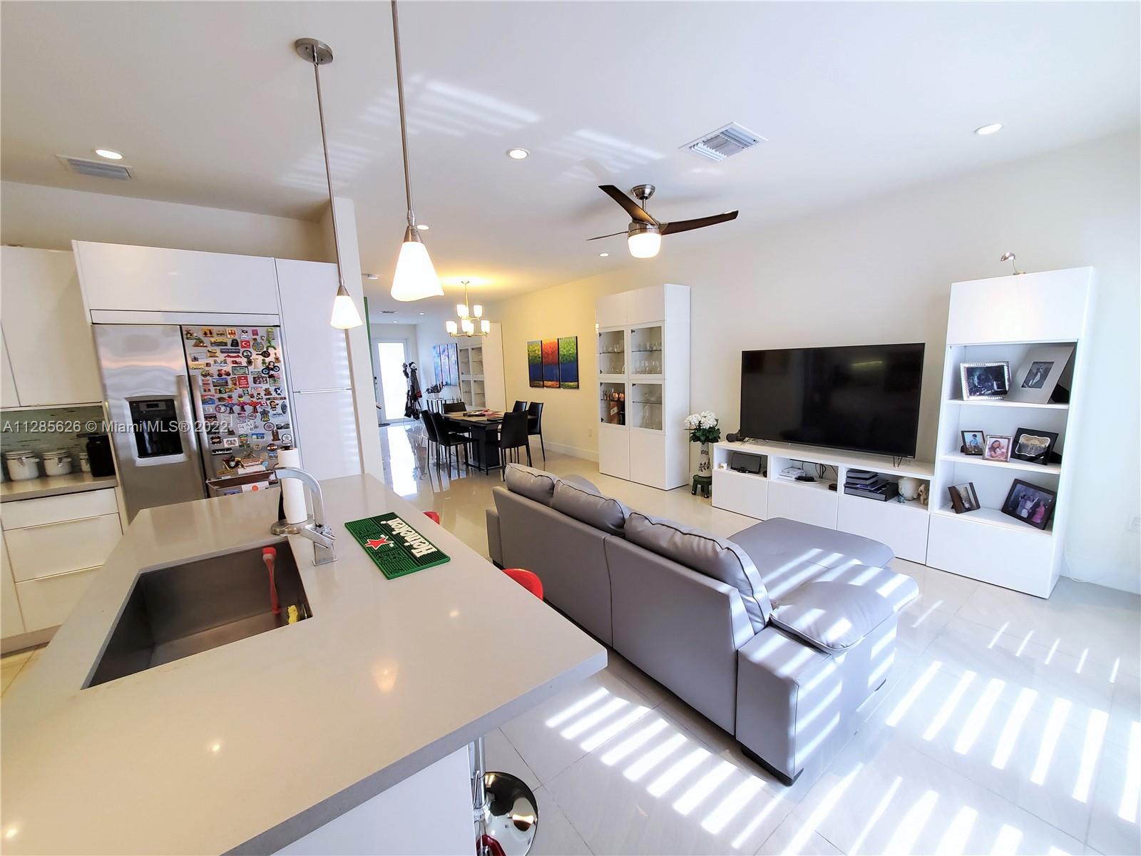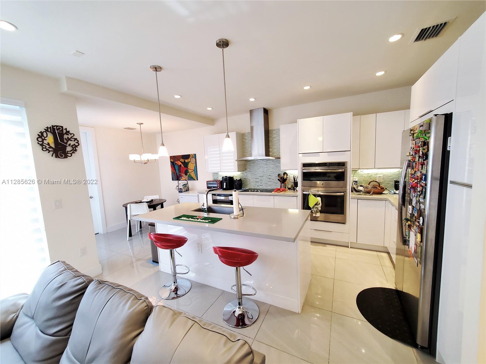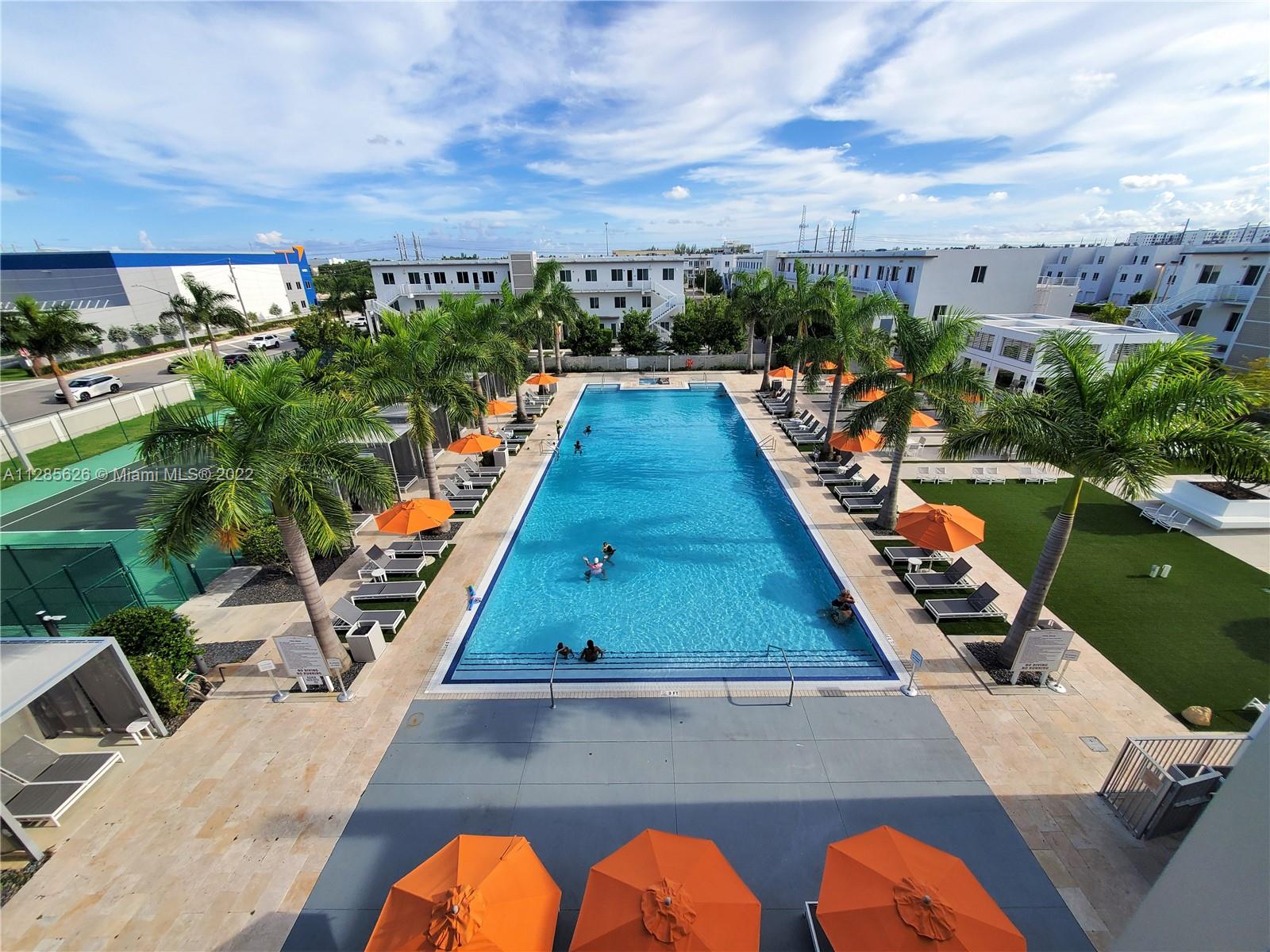 Beautiful home in the sough after Landmark at Doral. This tri-level is a dream come true, with an amazing layout and a modern open concept. The home has plenty of outdoor spaces to entertain and enjoy, including a patio on the first floor, a balcony in the master bedroom, and two separate terraces on the 3rd floor. The very spacious main terrace features a summer kitchen, outdoors sitting and dining area. This 3 Beds, 3.5 baths and 2 car garage home features impact windows/doors, a full-size laundry room, and built out closets. Spacious and modern kitchen with quartz countertops and SS appliances. Luxurious Clubhouse with amazing amenities: tennis courts, a large pool, children’s splash pad, BBQ area, outdoors fireplace, full gym, sauna, and much more. Easy access to the Turnpike.