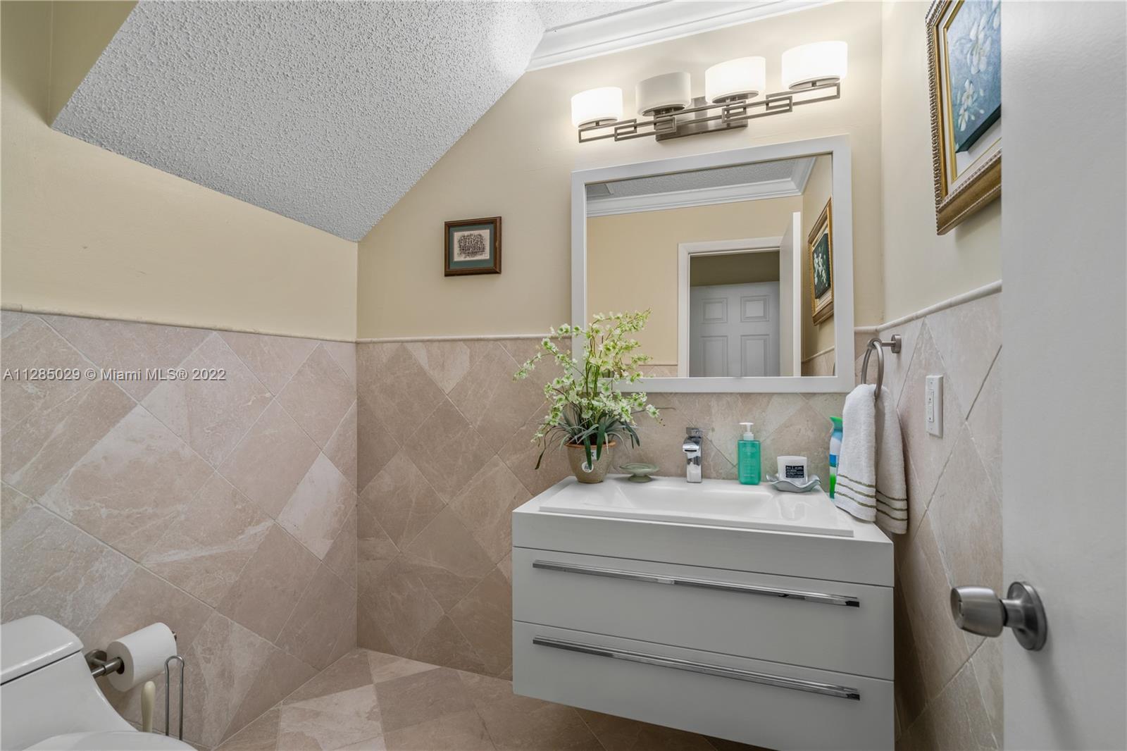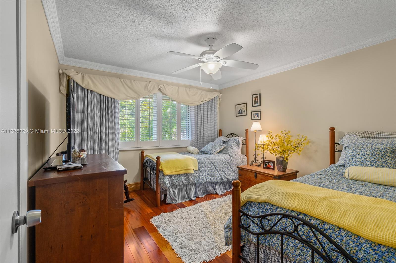 Gorgeous , elegant corner lot home with marble floors, an additional bedroom and full bath on the first floor, upstairs you have beautiful cherrywood floorings, a principal suite ,beautifully updated bathroom and a huge walk-in closet, 2 additional spacious bedrooms and an unbelievable full size laundry room . Impact windows and doors, a family room looking out to the tropical backyard surrounding this home. Sit outside and enjoy nature with complete privacy. A driveway that fits 4 cars. This residence has been kept in excellent condition.