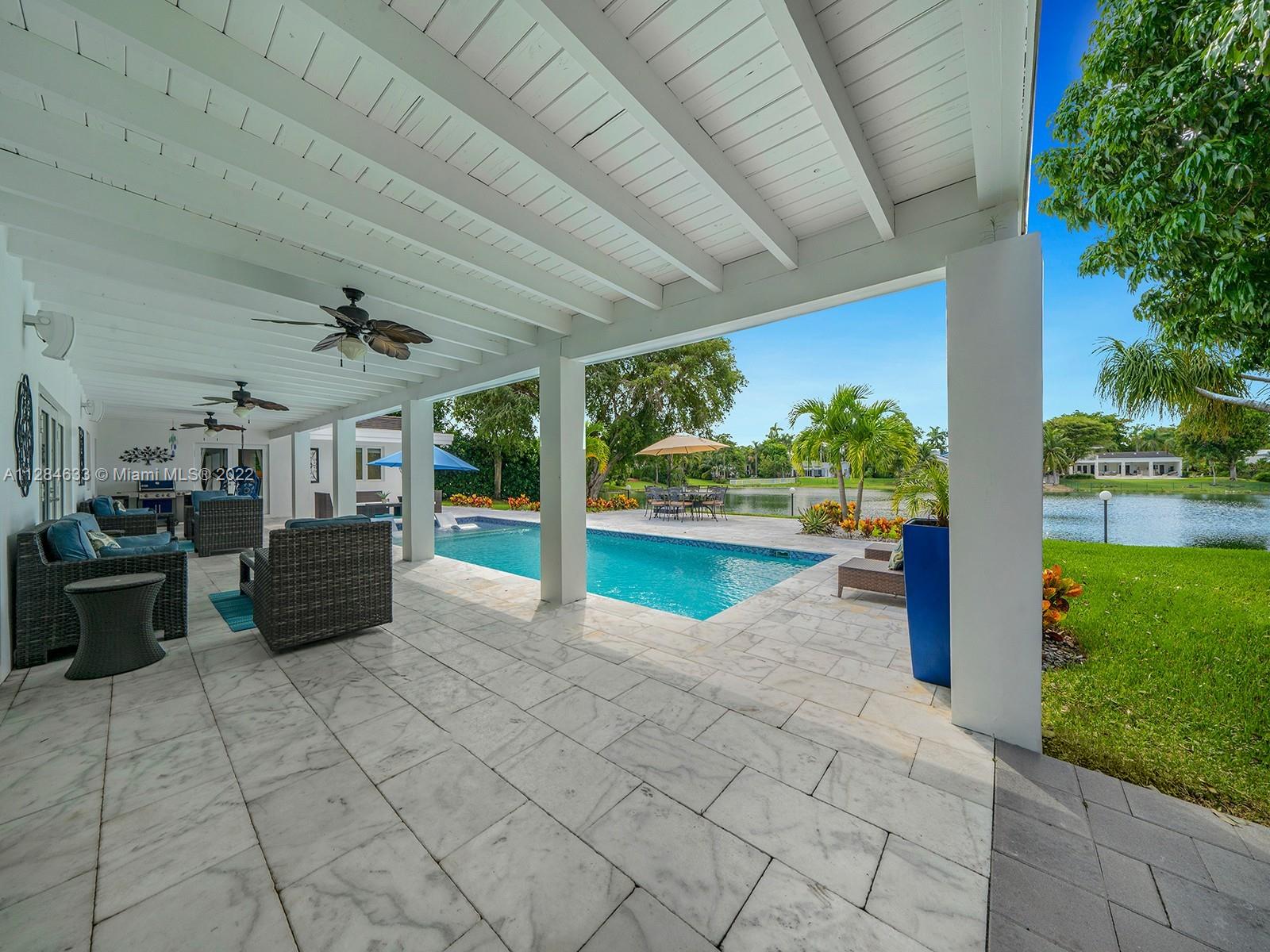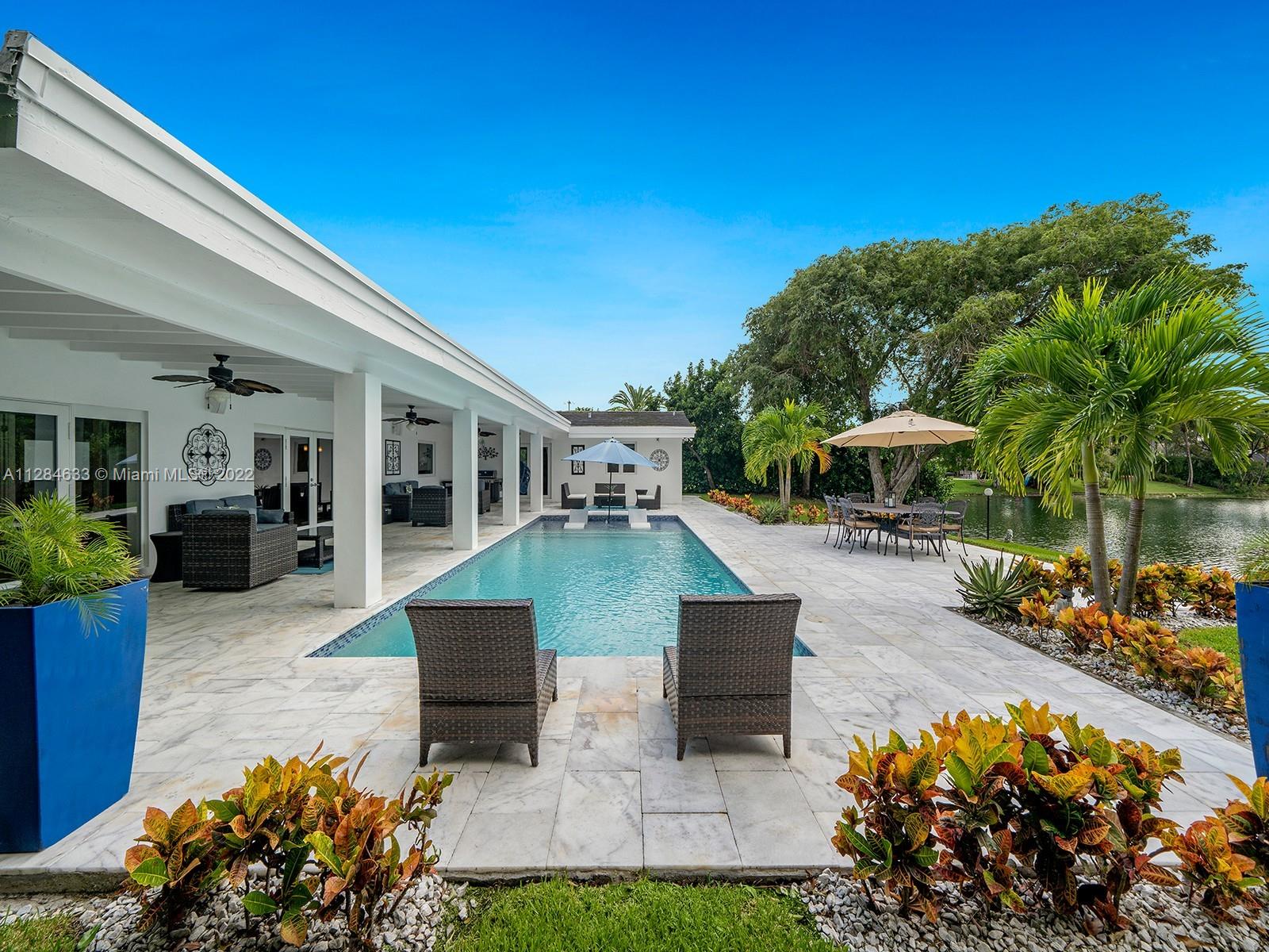 Lakefront Living at its best! Enjoy amazing water views from this completely remodeled Pinecrest estate on exclusive Lake Sheldon (small motor craft allowed). Welcomed by wonderful open floorplan featuring formal living, family, dining, and chef’s dream kitchen with top-of-the-line appliances. Discover 5 bedrooms and 3 bathrooms plus spacious rec/bonus room and home office/storage room. Entertain family and friends from a spectacular outdoor oasis with covered terrace, large swimming pool w/ tanning ledge, spacious yard and gorgeous sunset views from the lake. Additional Features: impact windows/doors, PVC Pipes, laundry room, and elite schools nearby.