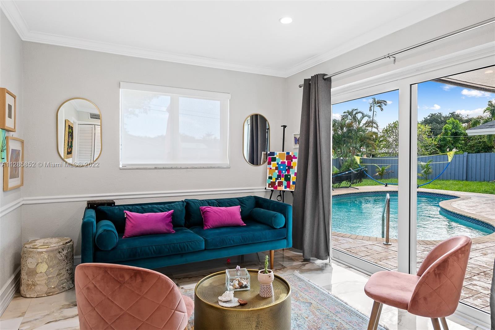 Extremely spacious and tastefully renovated Hollywood Hills pool home! This 2,599 SF home features 4 bedrooms and 4 full bathrooms including two master suites with pool views and access to the incredible backyard! The open floor plan connects the family room, dining room and kitchen making this home an entertainer’s dream! Smooth ceilings and recessed lighting offer a modern and elegant feel throughout the home. Additional property highlights include impact windows and doors throughout, a 2-car garage, a built-in wet bar and a circular driveway!