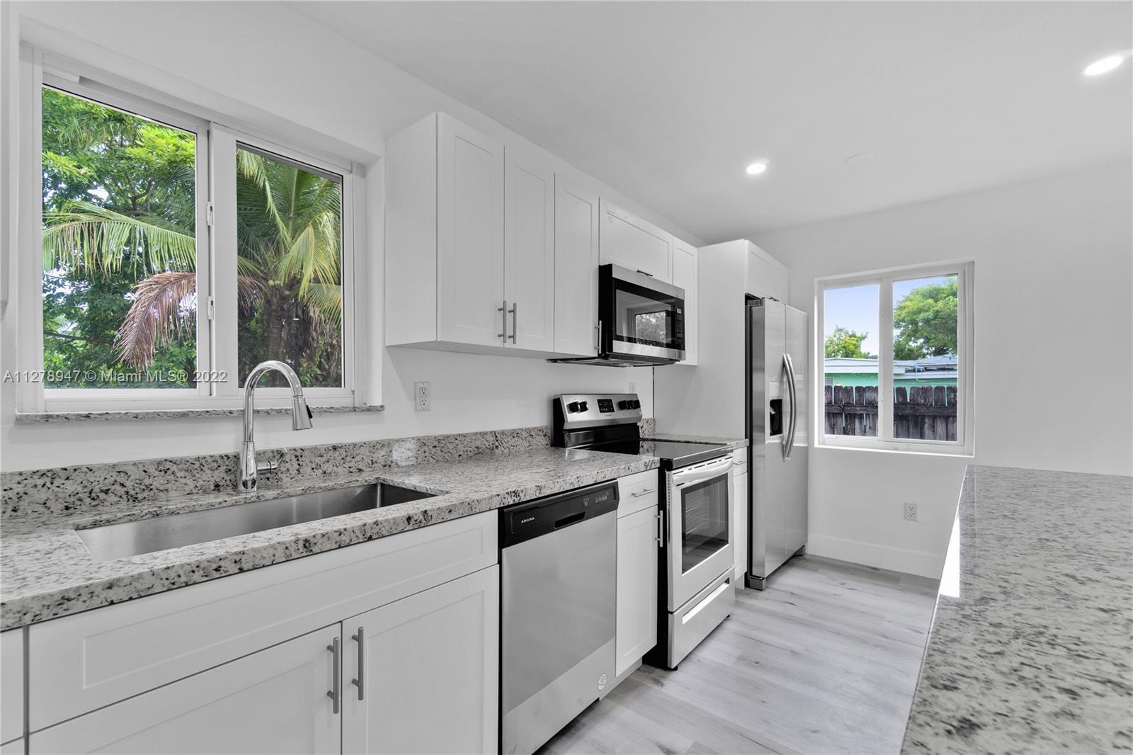 Beautiful updated home with a modern theme ready to move in featuring 4 bedrooms and 2 bath on a quiet street in Fort Lauderdale. Crisp and clean design with light filled spaces throughout, white kitchen cabinetry, quartz countertops, SS appliances, brand new light fixtures, modern flooring and an independent utility room for laundry & storage. Spacious backyard with mature fruit trees. Newer roof replaced 05/2021. MR. Glass High impact windows/doors. New electrical panel, New AC, new AC ducts. New electric water heater. All work done with permits. Home features 2 beds & 1 bath on first floor, & 2 beds & 1 bath on second floor. Property is minutes from major shopping centers, banks, and more. Close to 441, the Turnpike, I95 and other major highways for easy access throughout South Florida.