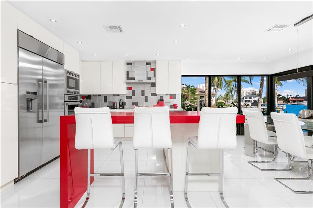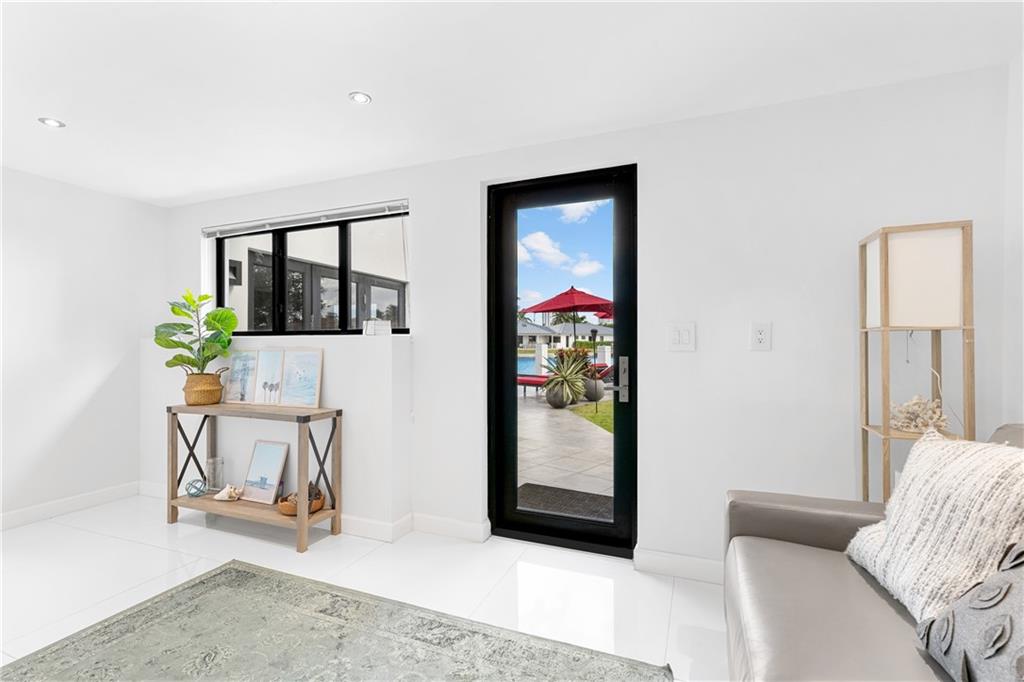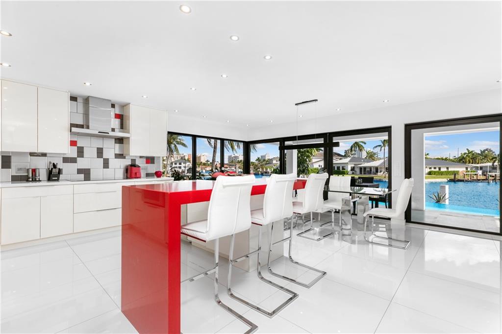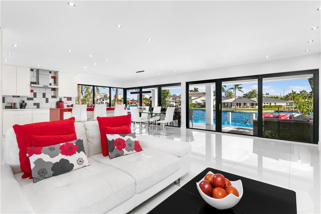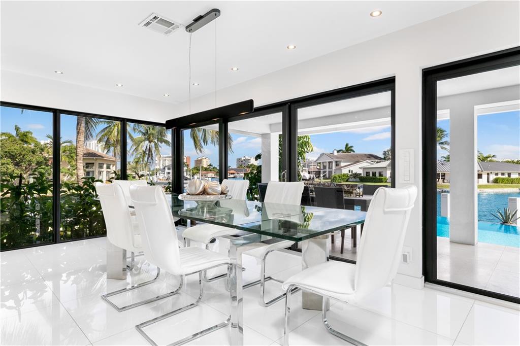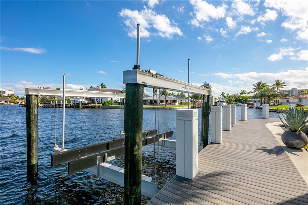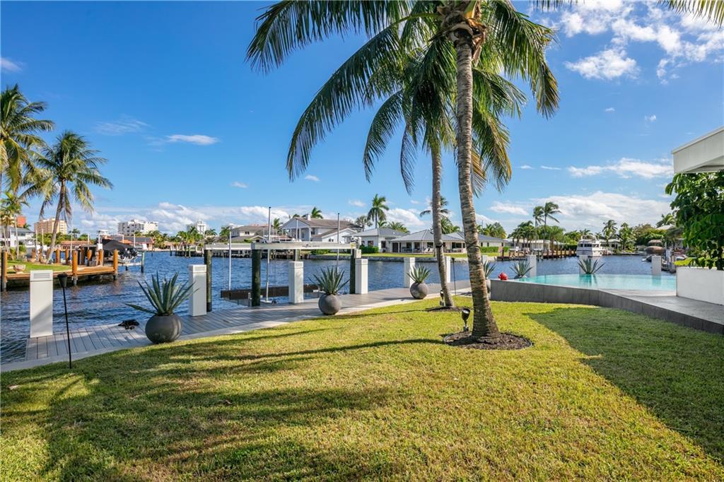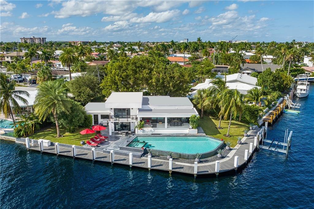 Set against an idyllic waterfront backdrop, this modern marvel on a point lot celebrates substance & style under one roof. Bright, open spaces throughout the custom-built estate offers designer details that invite the outdoors inside- enjoy expansive waterfront views from every room. An impressive clean-lined gourmet kitchen features cutting-edge Thermador appliances and custom cabinetry. The upstairs master bedroom boasts modern and tranquil vibrance with its own private balcony. The exterior boasts 190' feet of waterfront with 180' of composite dock (ocean access and no fixed bridges) & 24,000 lb. boat lift on the East side. Infinity pool with expansive outdoor living spaces for entertaining. This impressive residence is offered fully furnished and move-in ready.