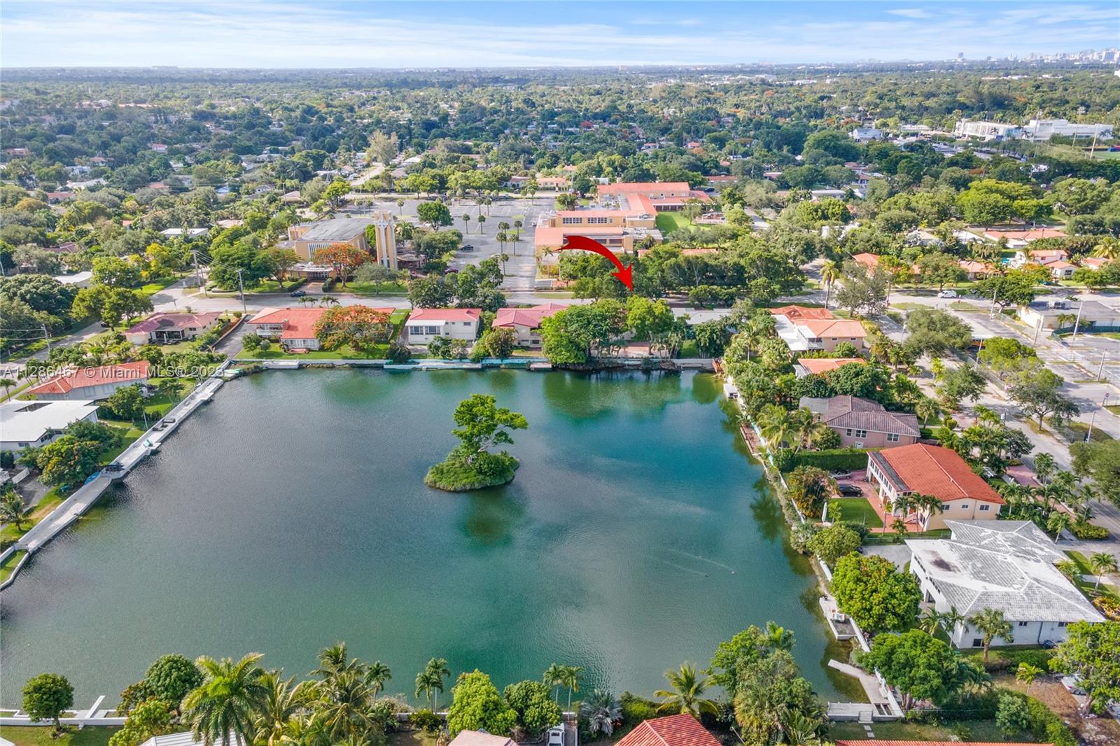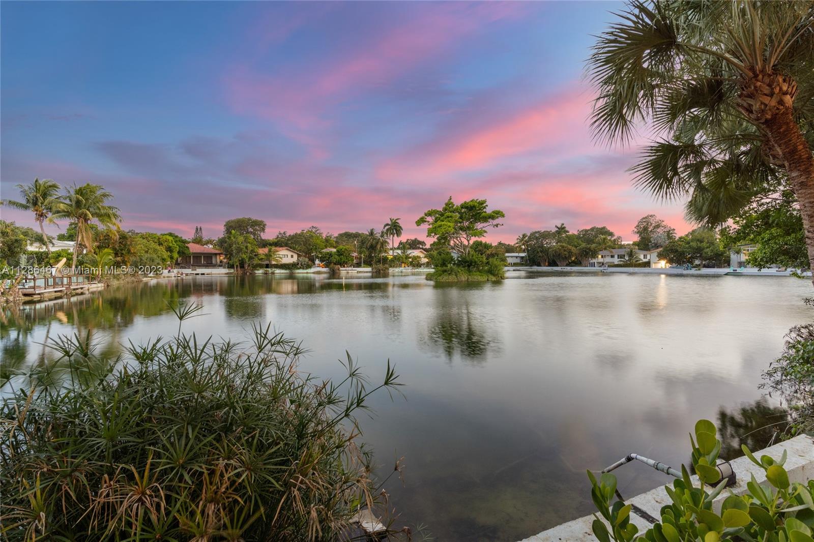 Welcome to your private updated oasis in desirable Miami Shores! Enjoy water views from every room in this updated 3 bed - 2 bathrooms + an office/den space. Walk into a bright & spacious living/dining room with endless water views. Enjoy water activities from your private dock on Mirror Lake - the only freshwater lake in Miami Shores. Private balcony from your bedrooms overlooking your private lake. Recently redone closets, wood floor throughout. Updated kitchen & bathroom, impact windows, 2 car garage. Huge terrace w/lush landscaping. Close to downtown Miami Shores, restaurants & shops.