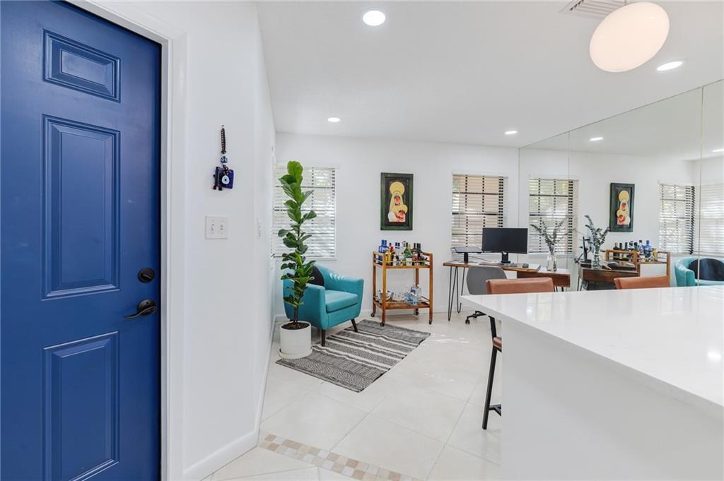 UNDER CONTRACT! ACCEPTING BACK UP OFFERS. Remodeled townhome blocks from Wilton Drive, 10 minutes to Las Olas/Downtown and 15 minutes to the beach! This light and bright townhome includes an upgraded open concept kitchen with quartz countertops and stainless appliances, new side by side washer/dryer. Remodeled bathrooms boasting ceramic glass tiles with illuminated vanity one touch mirror, and sliding barn style double door entry. Extra den/office area, impact glass windows and doors, large tiled patio lush with plants and foliage just off the living area, heated pool with easy access from the backyard! two primary bedrooms upstairs each with en suite bathrooms. New electric panel. Two parking spaces out front gives the feeling of living in a single family home.