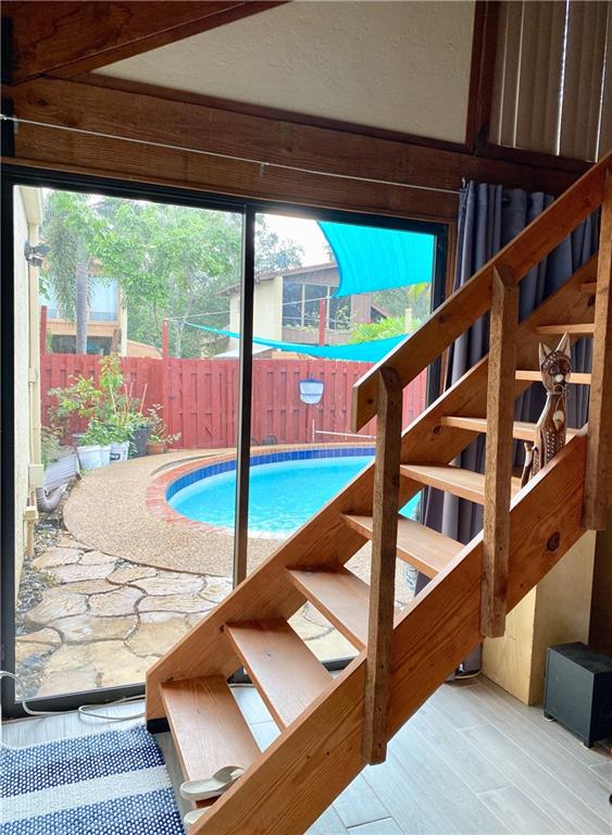 Idyllic sought after community, this two-level, highly remodelled loft, huge master w/ensuite bath on first floor, new Euro style updated kitchen w/stainless appliances, open concept, Norwegian granite island & counters. Living room overlooks your private in-ground pool, patio garden, newer 3 year a/c. Front room being used as office. Great second story studio/office space w/adjoining storage in attic. Cathedral cielings with exposed cedar beams. Many elegant upgrades. Great location close to I95, Turnpike & shopping, community features heated pool, tennis & Handball courts, picnic area, dog park, maintenance ONLY $78 a month.