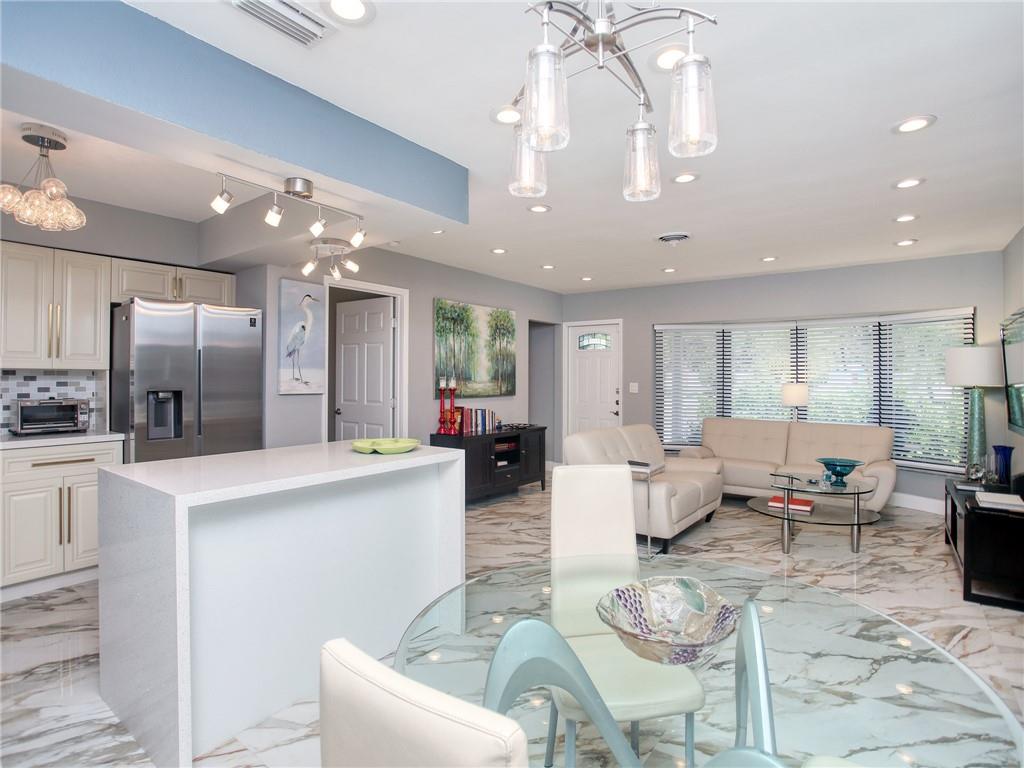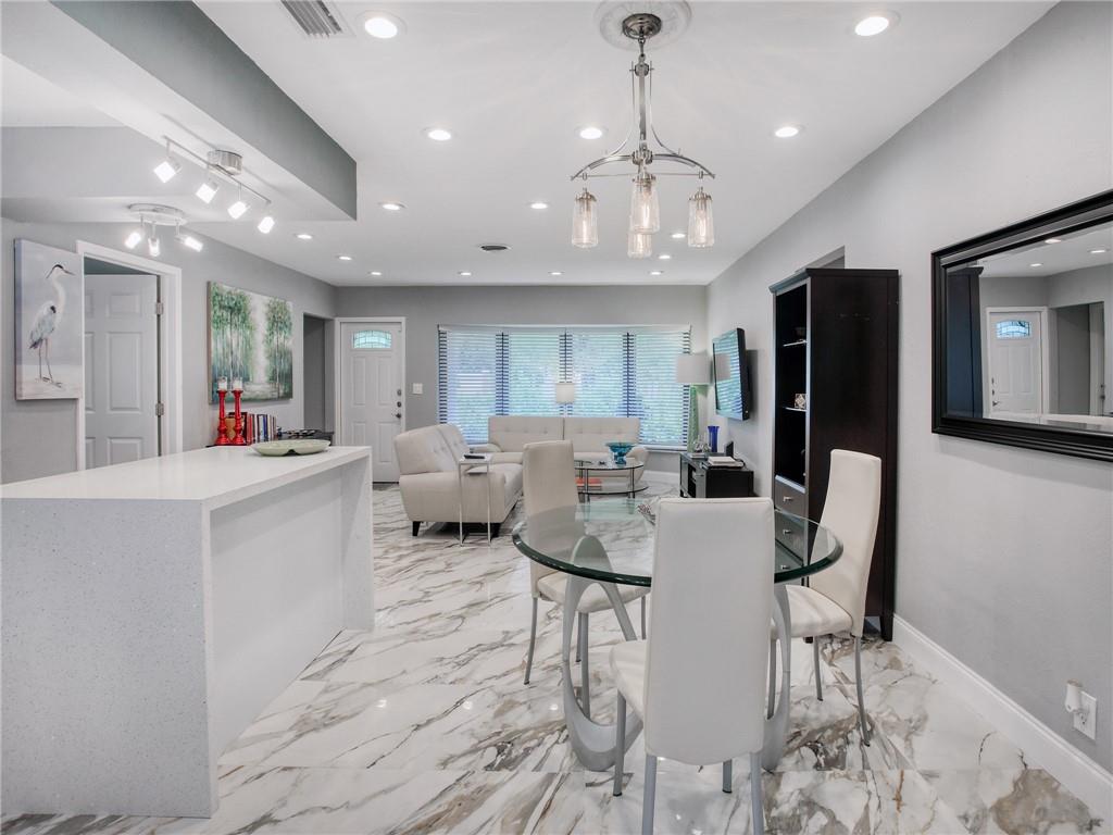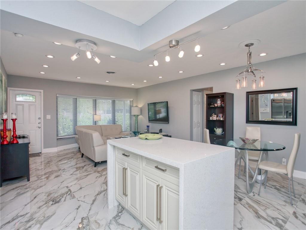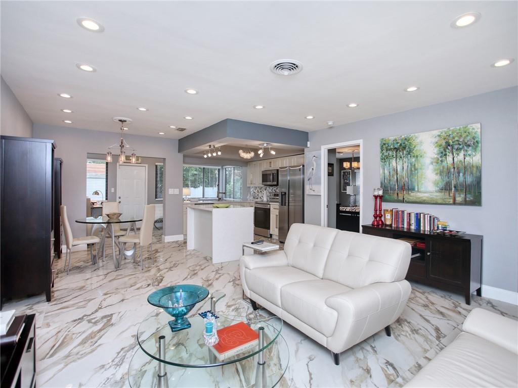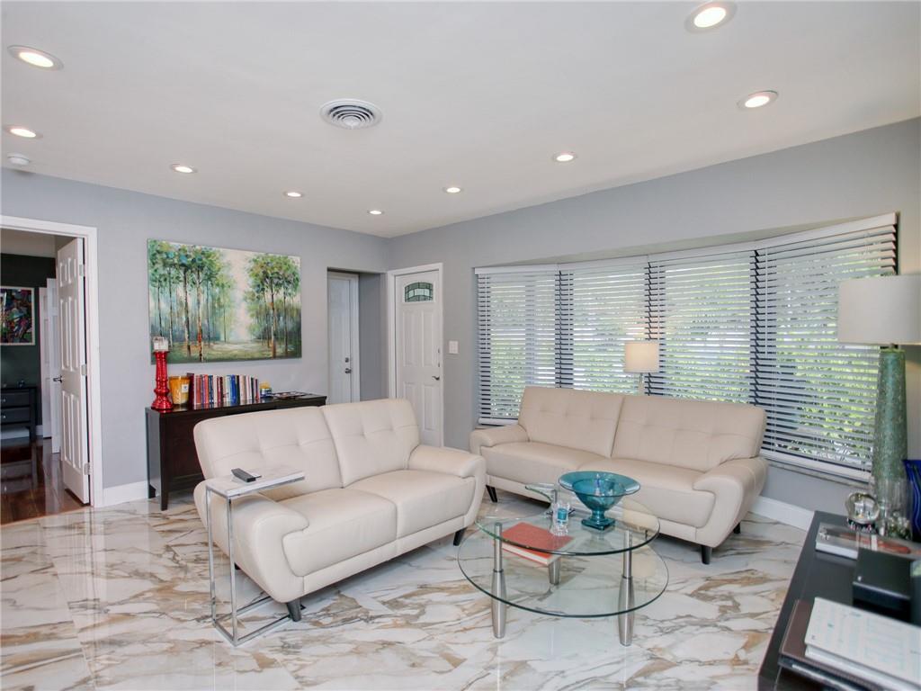Beautifully remodeled 3/3 Single Family Home. A contemporary design thru-out w/36x24 tiled floors in main living areas & laminate in all bedrooms. Quartz counter tops, hardwood cabinets & SS appliances in kitchen. Granite topped vanities w/hardwood cabinets in all bathrooms. Chrome light fixtures & all new impact windows & doors. Updated electrical panel & pvc pipes replace original cast iron pipes. Double master bedrooms when garage was converted to living space. Large laundry/storage room & all appliances less than 2 yrs old including hot water heater. Main roof & A/C replace in 2014 & flat roof recently seal coated w/7 year warranty. Lushly landscaped yard w/irrigation system & private fenced back yard w/huge shed & plenty of room for a pool. Pine Crest Private School across the street.