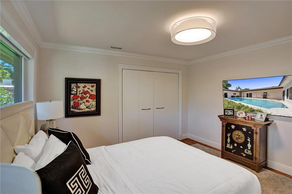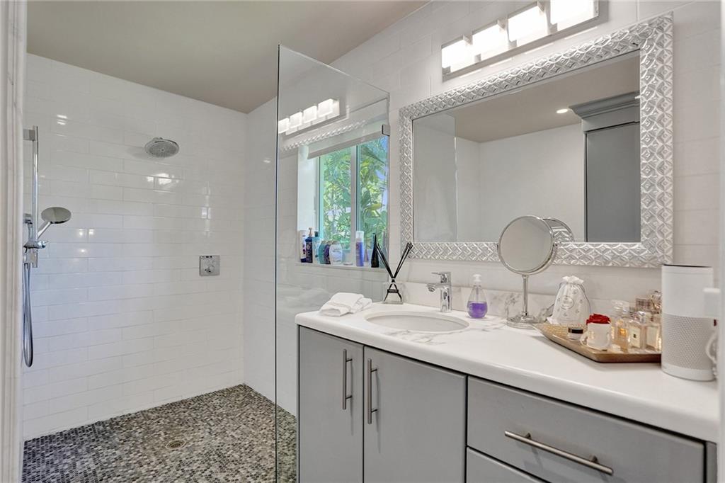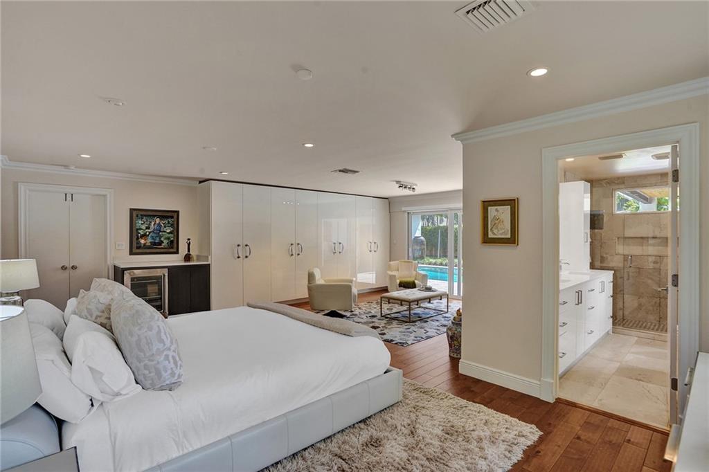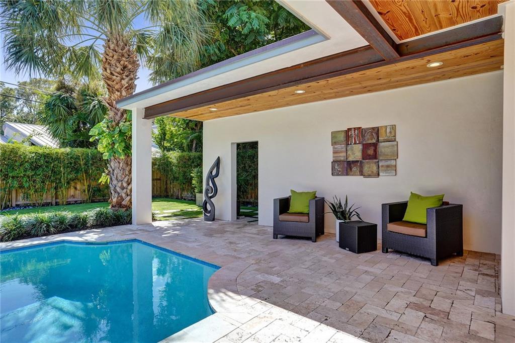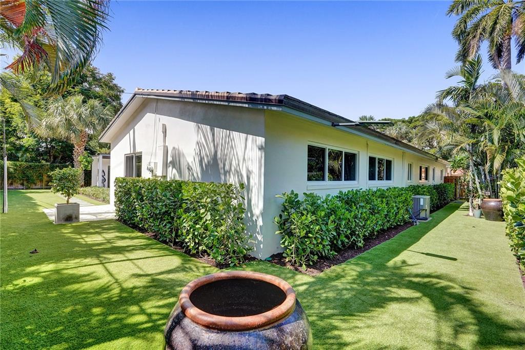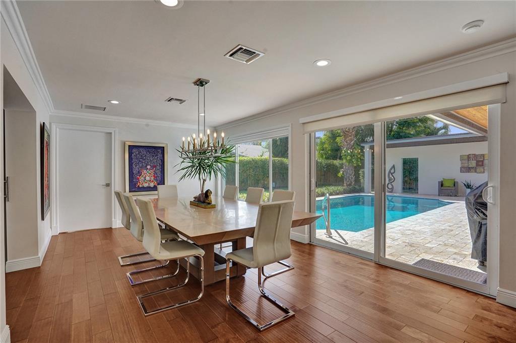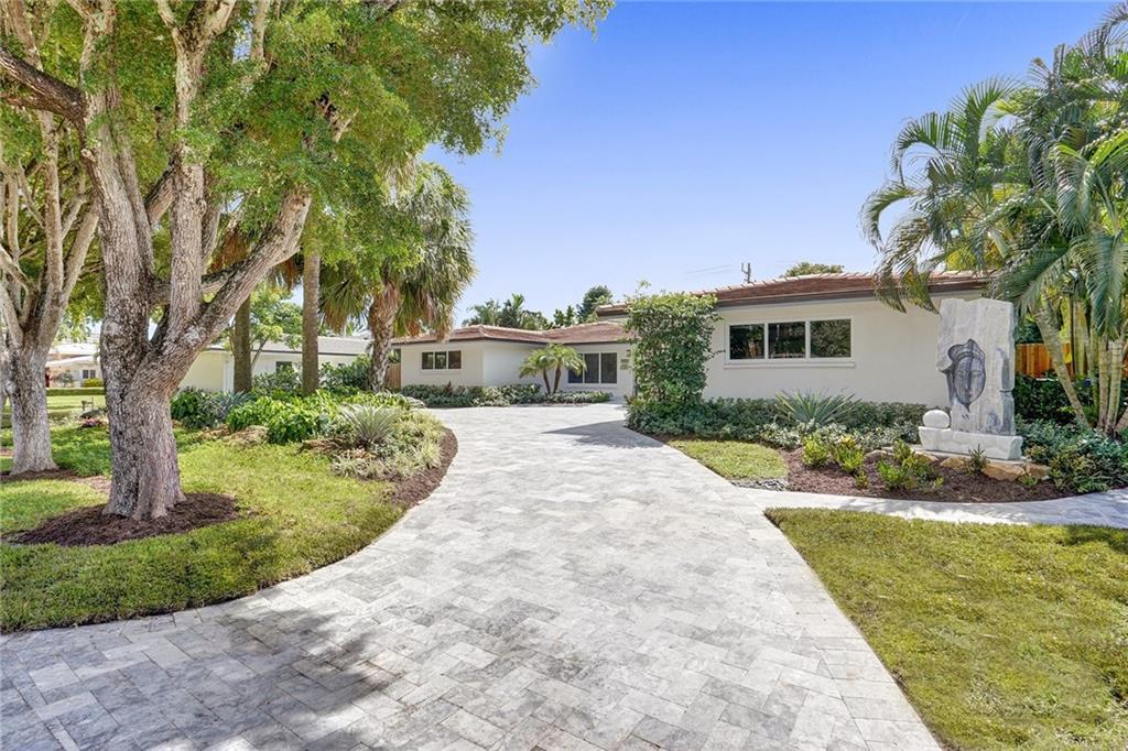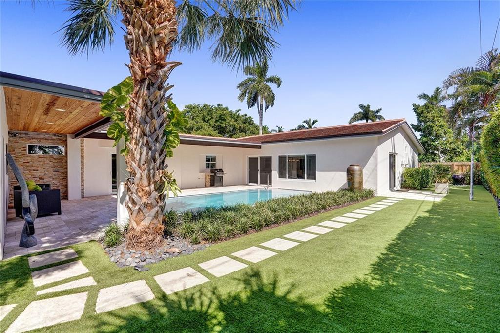 Enviably located in the heart of Coral Ridge Country Club & situated on one of the most desirable streets in the neighborhood. This stunning home ticks all the boxes. Stylish & totally updated residence was recently expanded to over 3,000 sq ft of luxurious living space and boasts 4 bedrooms plus an office/den/gym. Stunning gourmet kitchen with modern quartz counters, high-end appliances and huge breakfast counter perfect for gatherings. Luxurious and oversized primary bedroom suite with sitting area opening out to a totally private resort-like pool/garden area complete with Travertine marble pavers and low maintenance artificial turf. Impact glass, newer tile roof (2018), large indoor laundry room and much more. Minutes to Bayview Park, Lauderdale By-The-Sea beach and fine restaurants.