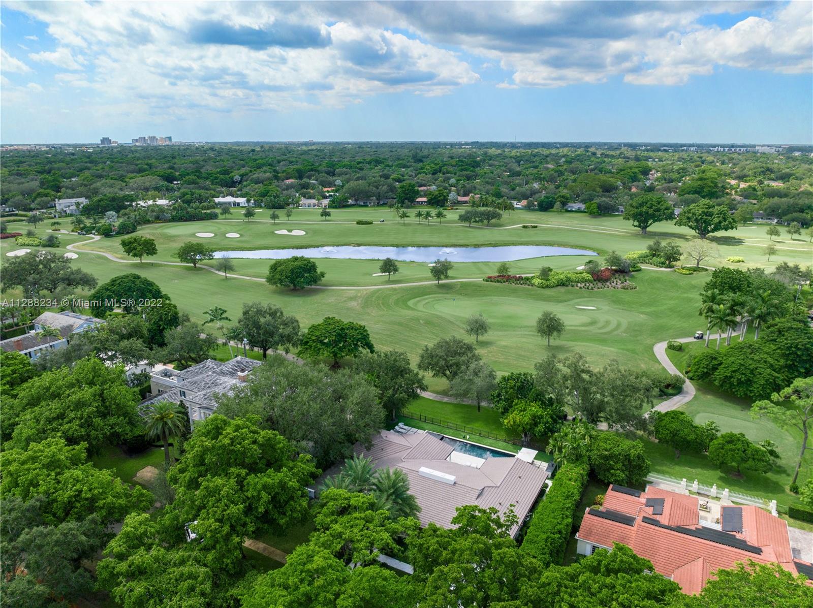 Situated on one of the most gorgeous streets in the original George Merrick Pioneer Village. Perfectly positioned on the 15th hole of the Riviera Golf Course with breathtaking views. The 2016 home remodel included replacement of roof, electric, plumbing, and all interior and exterior finishes. Open concept floor plan with living and dining room, cohesive to family room and kitchen area features pre-wired Sonos sound system, gas fireplace and high ceilings – prime for entertaining family and friends. Stunning views from your backyard terrace is complete with plenty of space for lounging and hanging out by the heated salt-water pool. Built-in Summer kitchen with barbecue, ice maker and beverage refrigerator. This is a fabulous opportunity to own a house on the coveted Santa Maria Street.