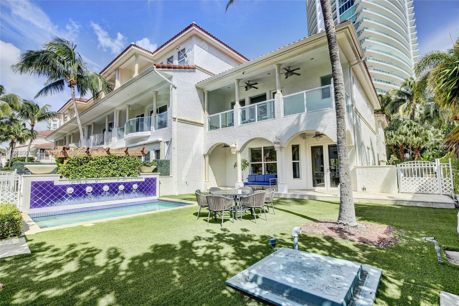 Unique property in Aventura. Travel behind the secure gates of Porto Vita to find this rare two-story luxury townhome with private dock that enables safe dockage for vessels up to 80'. Enter the home through a private courtyard to marble floors, a gorgeous staircase and a custom built area for entertaining. 3 bedrooms with ensuite bathrooms. Spacious his & hers walk-in closets in master suite as well as a balcony overlooking your private pool. Impact windows, two car garage and so much more. Porto Vita amenities match that of a 5-star resort including a pro tennis complex, basketball courts, fine dining, spa, residents pool and clubhouse. Live the all inclusive vacation lifestyle while maintaining the privacy of your own home right in Aventura.