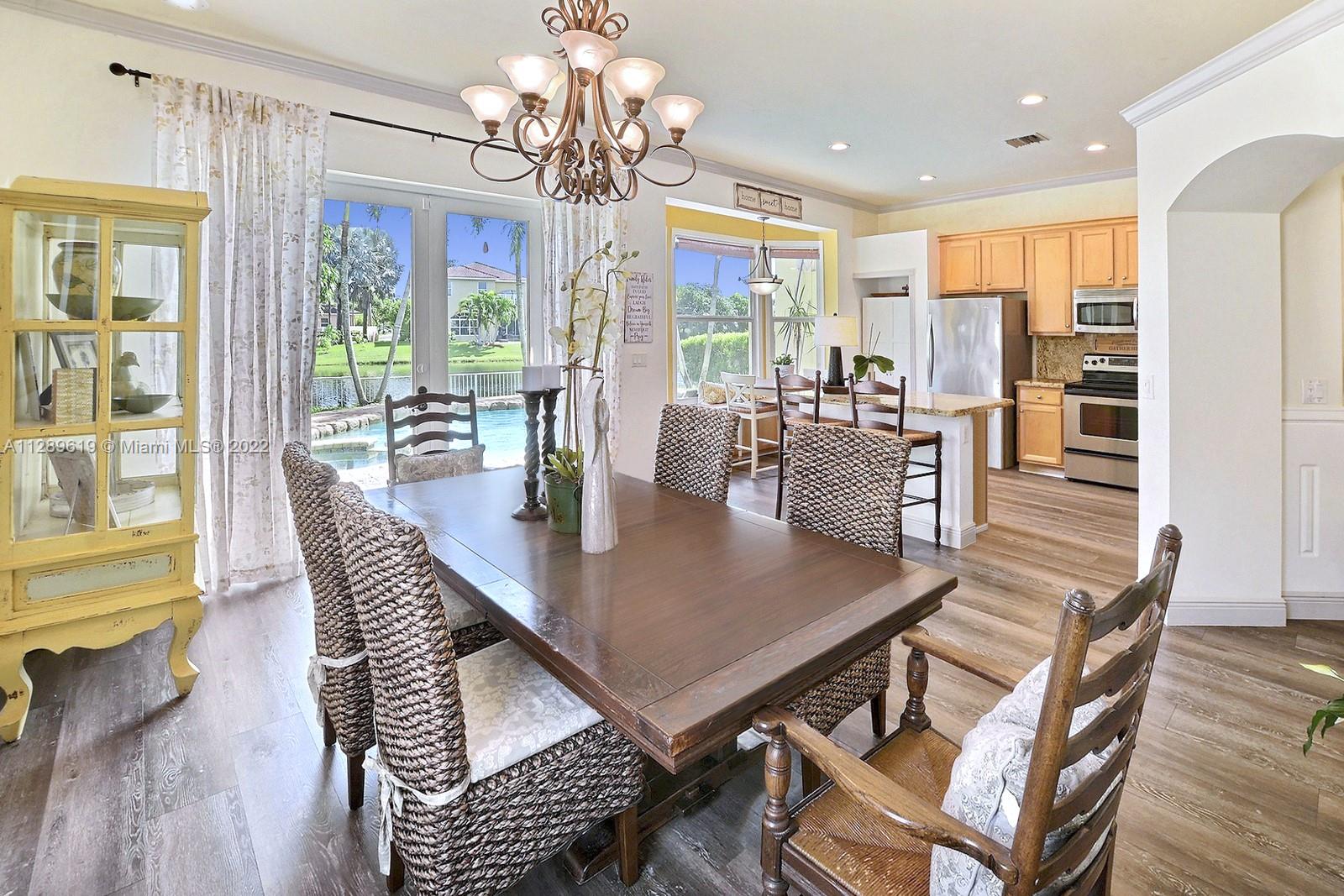PARADISE AWAITS IN MONARCH LAKES. SPECTACULAR WATERFRONT POOL HOME IS SITUATED ON A RARELY AVAILABLE OVERSIZED PREMIUM LOT. ENJOY WELCOMING CURB APPEAL IN A GATED COMMUNITY. REMODELED 3 BED, 2 BATH HOME W IMPACT WINDOWS, STUNNING ARCHITECTURAL DETAILS INCLUDING NICHES, TRAY CEILINGS & GRACEFUL ARCHES. ENJOY A NEUTRAL COLOR PALETTE THROUGHOUT INCLUDING NEW PLANK FLOORING. BEAUTIFUL KITCHEN HAS TONS OF CABINETS, GRANITE TOPS, ISLAND, BREAKFAST NOOK & SPECTACULAR VIEWS. PERFECT FOR ENJOYING INDOOR/OUTDOOR LIVING, FRENCH DOORS OPEN FROM THE DINING ROOM TO THE POOL & PATIO. PRIMARY SUITE HAS WAINSCOTING DETAIL W SERENE POOL & WATER VIEWS. INVITING ENSUITE BATH WILL MAKE YOU NEVER WANT TO LEAVE! PRIVATE BACKYARD PARADISE W POOL, SPA, EXTENDED PATIO & GAZEBO. 2021 AC. GREAT LOCATION CLOSE TO 75.