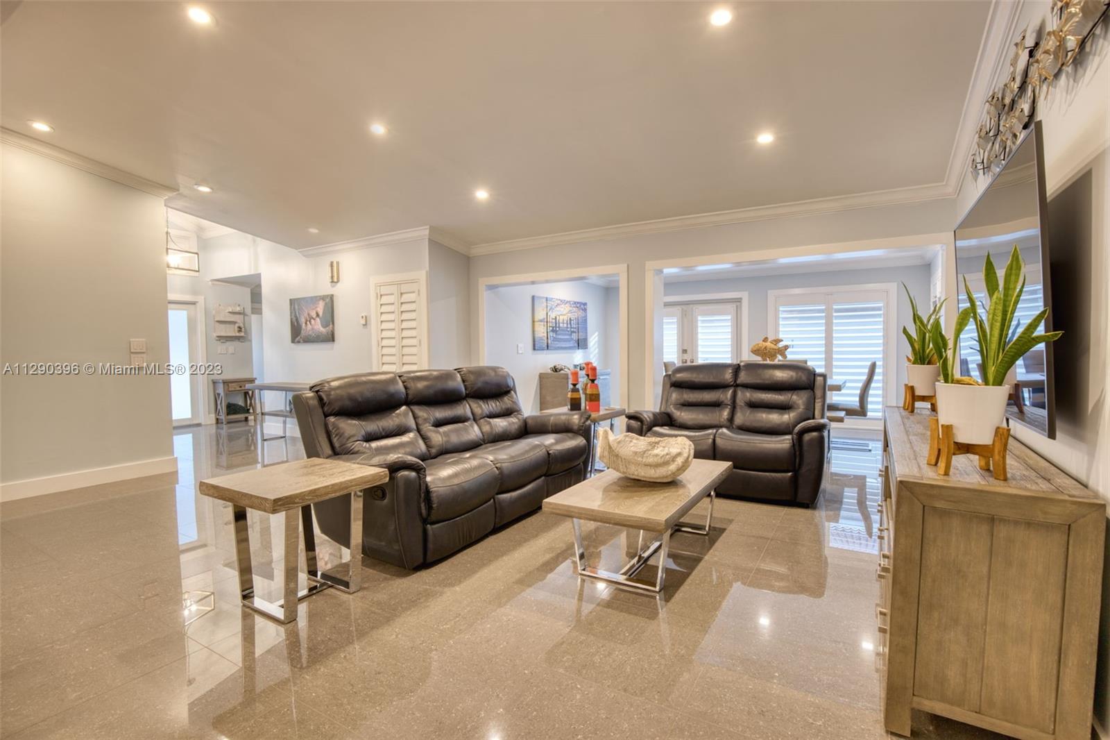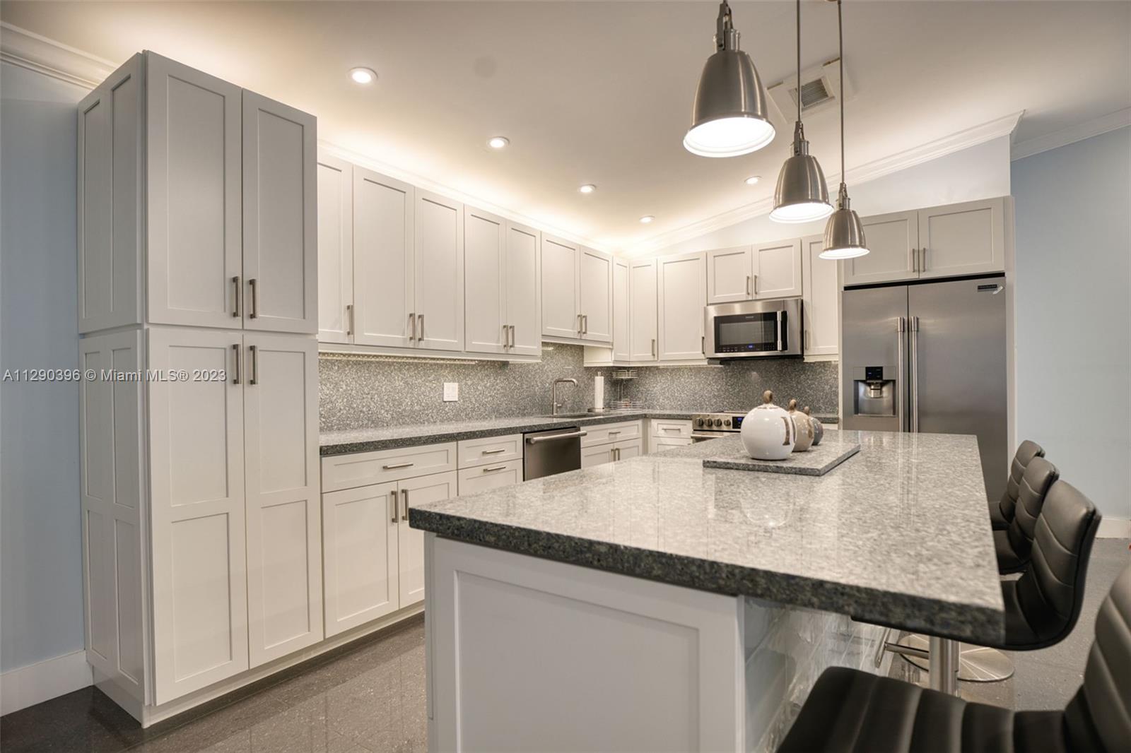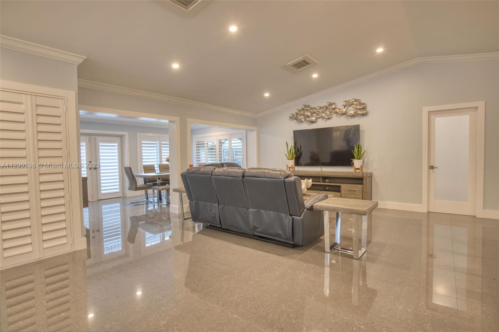 Timeline of remodel: 2017- New roof & new impact windows & doors. Garage door is also impact resistant. New concrete driveway & concrete backyard. 2018 - House was completely gutted. New aluminum beams, new electrical wiring, new recessed lighting & new mold resistant sheetrock thru-out the entire house. 2019 - New tile, crown molding, plantation shutters, new a/c ducting, completely remodeled 2nd bath, new kitchen cabinets & stainless steel appliances, epoxy floor in garage, garage cabinets, tankless electric water heater. 2021 - New A/C unit and completely redesigned & remodeled master bath. Electrical panel is also new and updated. Sprinklers and outside as well as landscape lighting.