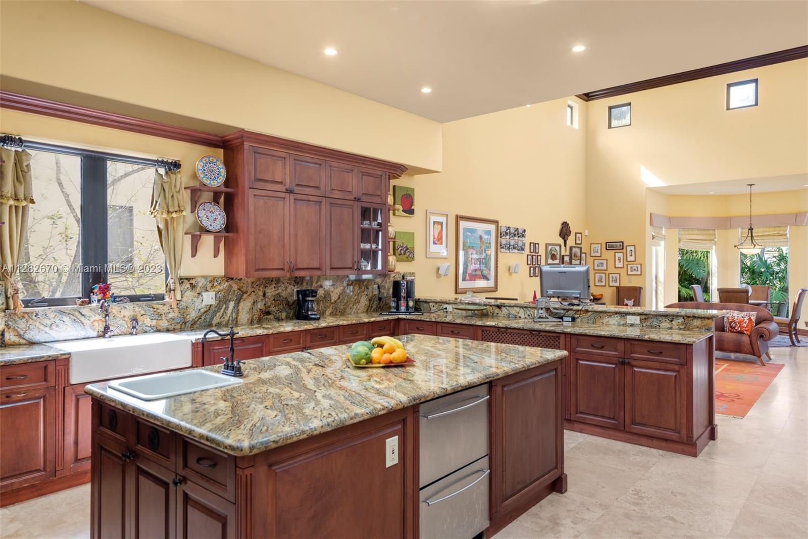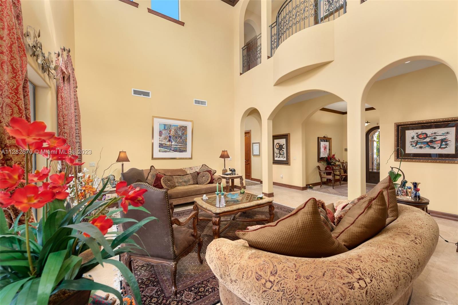 Beautifully custom built 6,376/sf Spanish Hacienda masterpiece! Sits on an oversized 15,000sf lot in the exclusive Town of Golden Beach, one of the most sought after communities in South Florida. The home is located within steps of the towns very own private beach. Courtyard entry, 24ft ceilings as you enter the home. Home features an oversized kitchen with a huge island, high-end appliances, thermador, Sub-Zero refrigerator, and granite countertops. The family room overlooks the large terrace & custom saltwater pool. Other features include office/den, playroom with built-in wet bar plus two ground floor bedrooms with in-suite bathrooms. Enormous master suite with a massive walk-in closet with built-ins, covered balcony, spectacular master bath with tub & shower with travertine finishes.