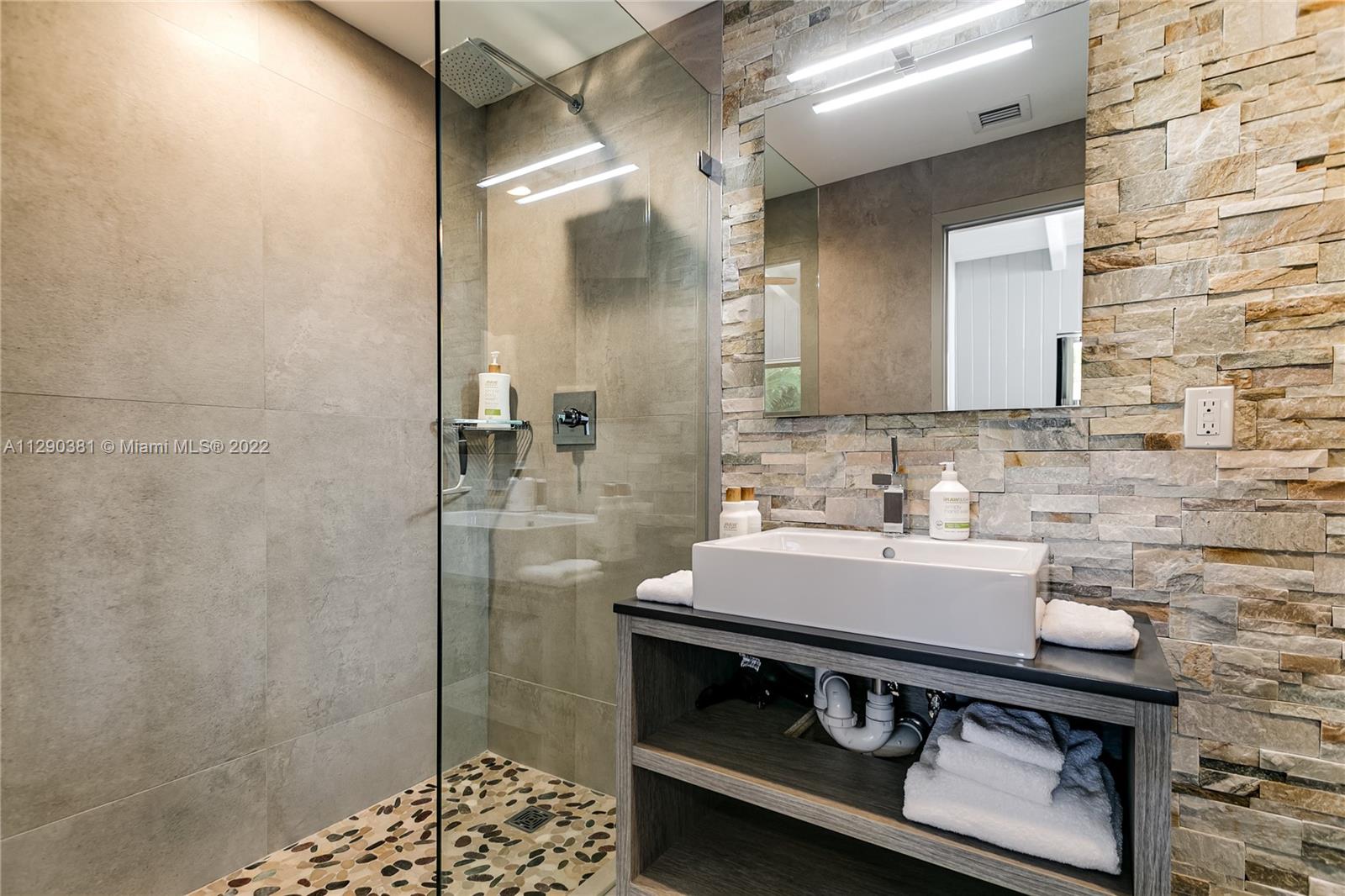 The architects, Dan Duckham & Chester Trowbridge, in 1960, created a stunner related to the work of Frank Lloyd Wright. This single story house features an asymmetrical roofline & vast expanses of glass. Being in the hands of the same family for 58 years, the new owner renovated it entirely & meticulously. High end appliances, impact windows & doors, open kitchen, stacked stones, large Italian porcelain tiles. Superb craftmanship, period appropriate detailing, the continuity of the materials & respect of the original design are what make this minimalist mid century modern renovation so successful. Ground up restoration in 2018-19, 34x17 Deep (7ft+) pool, heated & salt chlorinated, 8 flatscreen Tvs, in/out SONOS system, 19,295 sf lot, Fully furnished w/some Art. SEE BROKERS REMARKS