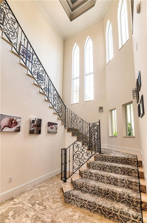 LUXURY LIVING in prestigious gated community: Windmill Ranch Estates. Perfectly situated on 1.60 acre lakefront lot, grand entrance, circular driveway, expansive porte-cochere & 4 car garage. 11,000+ sq ft, 7 bed, 6 baths & 3 half baths, office with custom cabinetry, gym, billiard rm w/ bar, media rm, loft, wine cellar, butler’s pantry, elevator, 4 new AC units & gas fireplaces. Gourmet chef’s kitchen, spacious island and top of the line appliances. Stunning staircase leads to primary en-suite w/ sitting area, dressing area & spa-like bath. Impact windows/doors throughout. Spacious outdoor entertaining areas, custom outdoor kitchen, & infinity-edge heated pool & spa.