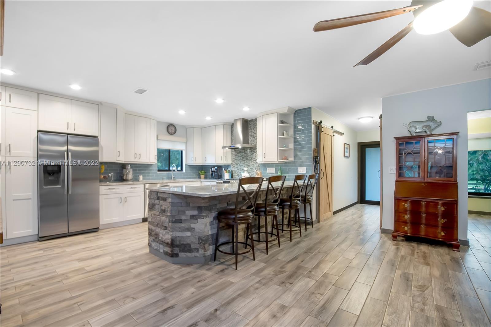 Charming country-style home nestled on a quiet, dead end road in Davie awaits you. Upon entry you will be welcomed by a spacious open-floor plan ideal for family gatherings and or cozy nights. This property features a 35'x50' insulated workshop with 14' ceilings which is Dade County hurricane rated with its own 200 amp service. Complete interior and exterior LED lighting and 2 oversized garage doors with motorized bug shields controlled with remotes or wall mounted key pad. Conveniently located near 150 acre preserve, equestrian trails, and Vista View Park. Minutes away from major highways, A+ schools, shops, and restaurants.