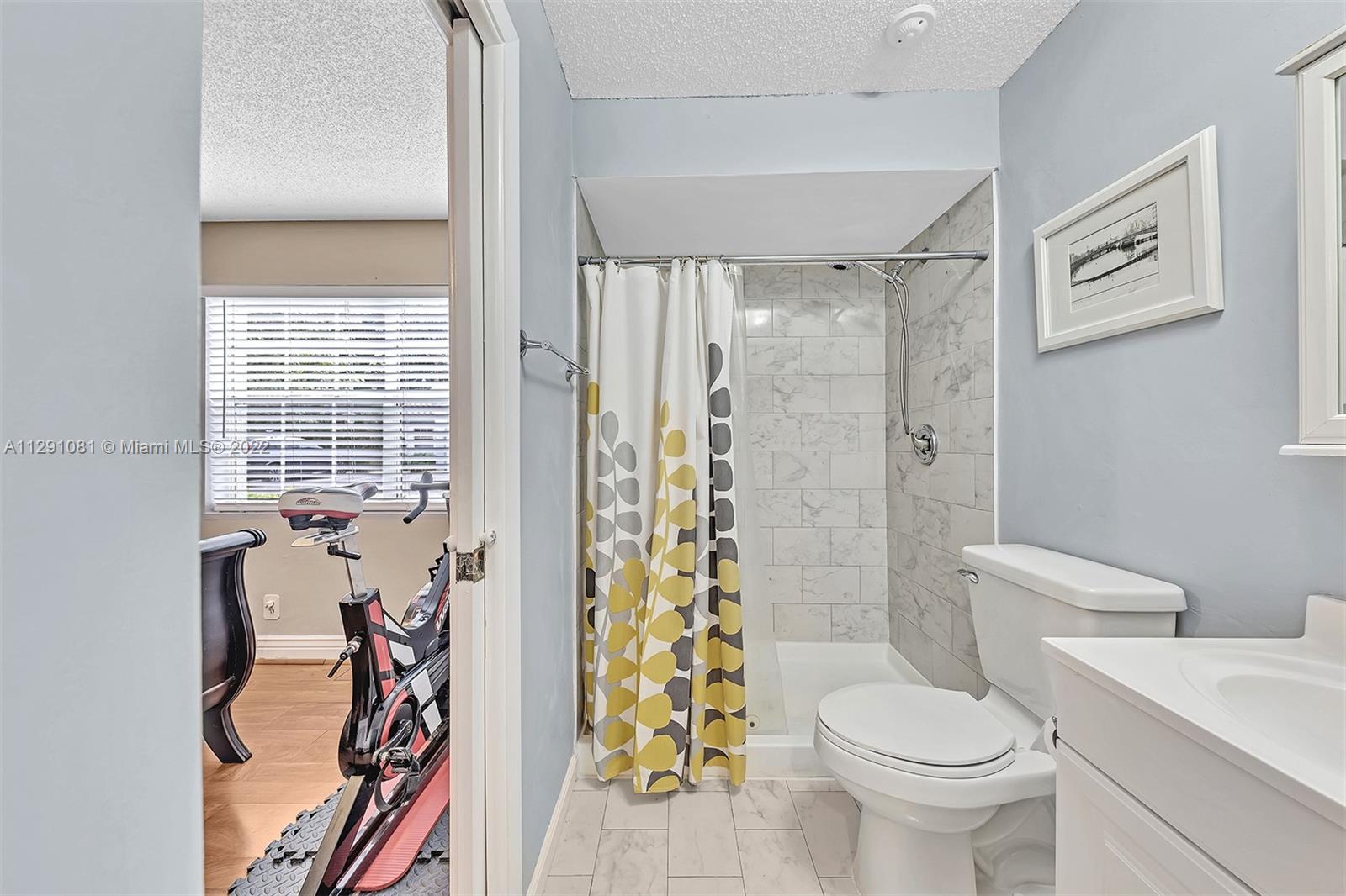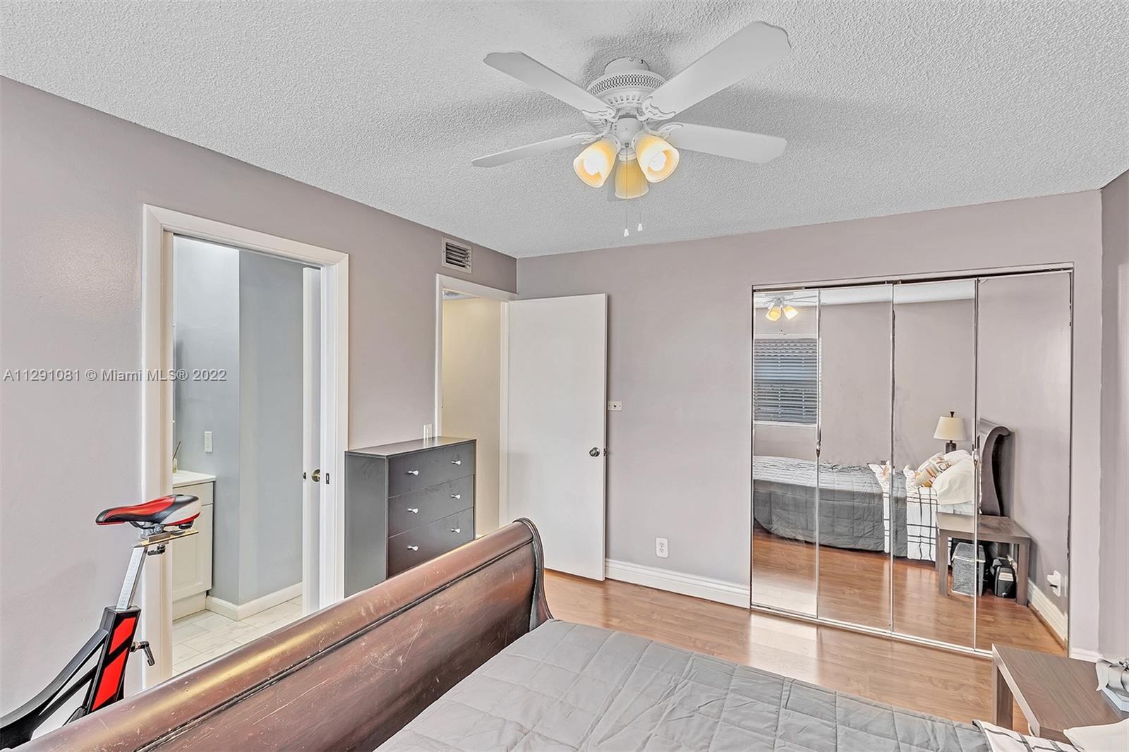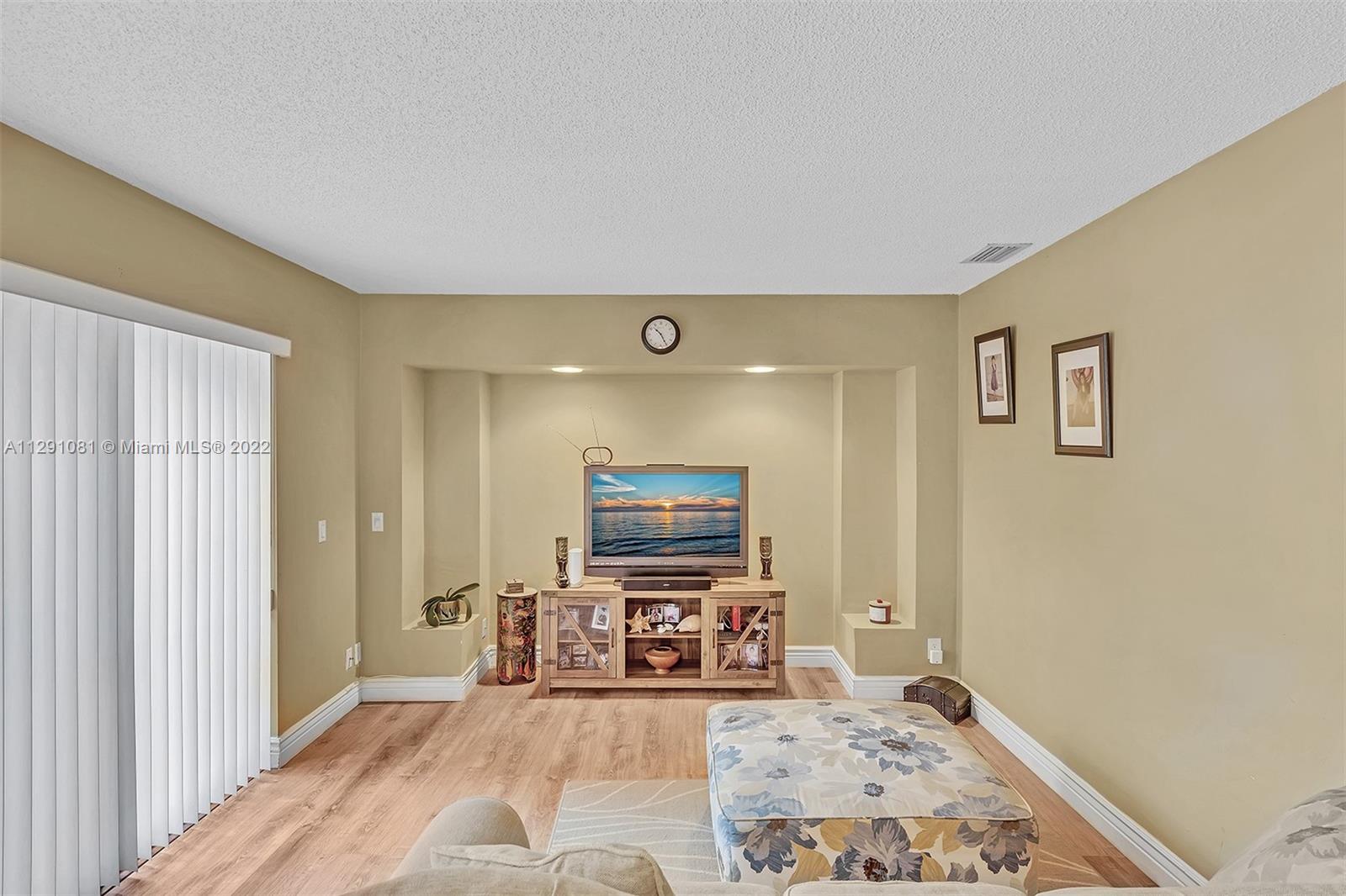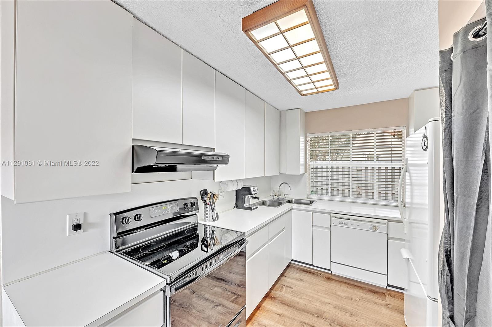 Exceptional townhouse offering two bedrooms two bathrooms plus a spacious loft and fenced yard. Private view overlooking green area. Enter the great room and experience the 2 story volume ceiling which provides lots of natural light and open feeling. Eat-in kitchen has cozy breakfast area. Floor plan flows with 2 master suites, one upstairs/one downstairs, each with direct access to bathroom and large walk-in closets. Additional features include waterproof vinyl flooring downstairs and laminate in bedrooms and loft, full size front loader washer and dryer, large storage shed, accordion shutters upstairs and panels downstairs. Pets are welcome! Investors welcome! Certain trucks are permitted. Unit has 2 assigned parking spots. Steps to community pool, parks and shopping.
