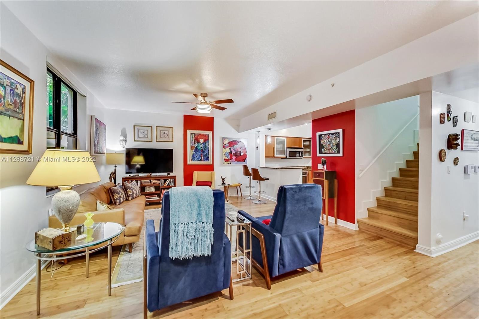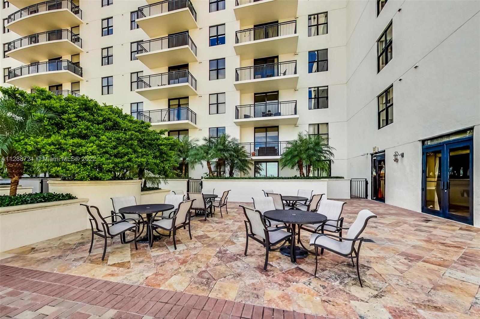 Amazing European style 2 bedroom 2.5 bathroom townhouse located in Puerta de Palmas, in Coral Gables, with 2 covered parking spaces included and one with an EV charger. This building includes an elegant lobby, 24/7 concierge, valet services, heated swimming pool, equipped gym, Business Center, Board Room and beautiful outdoor areas. Easy to show.