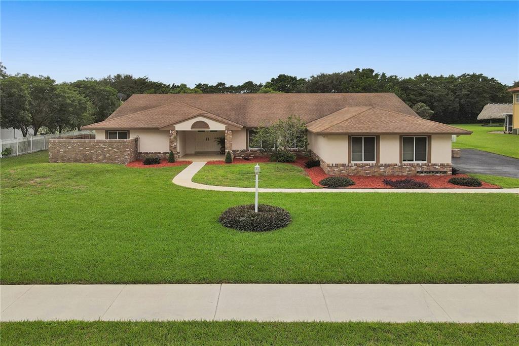 Big, bright, beautiful home sitting pretty on a premium acre lot in Shenandoah Acres. You will be amazed at its many valuable features including an impressive arched double-door foyer entry into spacious social areas, living room with French doors, formal dining room, desirable split bedroom design. Primary bedroom retreat is roomy enough for cozy sitting area. Large kitchen & family room with glass sliding doors to screened patio overlooking fenced manicured personal green space. Just perfect for gatherings. Let's not overlook the oversized 2-car garage, complete impact windows and doors, rewired electric panels, newer well pump, water heater, hard-wired carbon monoxide, smoke alarm, motion sensor exterior lighting. Best cul-de-sac location. Top-notch schools. A sure winner!
