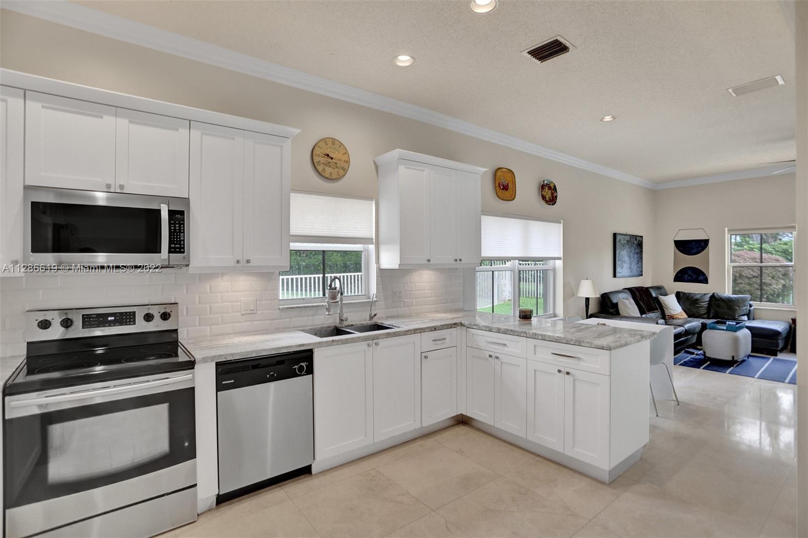 Beautiful property located in the prestigious The Ridges community in Weston. Spacious single-story home featuring 4 Beds, 2 full baths, upgraded powder room, and a stunning pool. Ideally located in a cul-de-sac & unique private lot. This amazing property features a new roof, new A/C, new water heater, 2 cars garage, a very large main bedroom, and upgraded in-ground sprinklers. The Ridges includes a pool, toddler pool, splash pad, BBQ areas, basketball, soccer and pickleball courts, playground and a beautiful sidewalk with amazing lake and landscaping views. A+ Rated Schools.