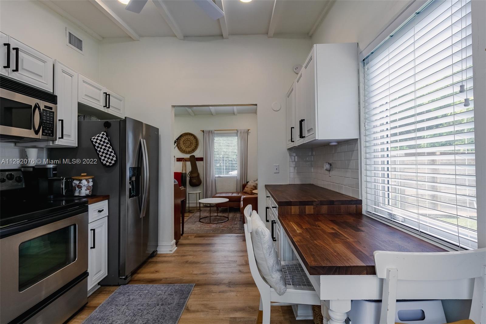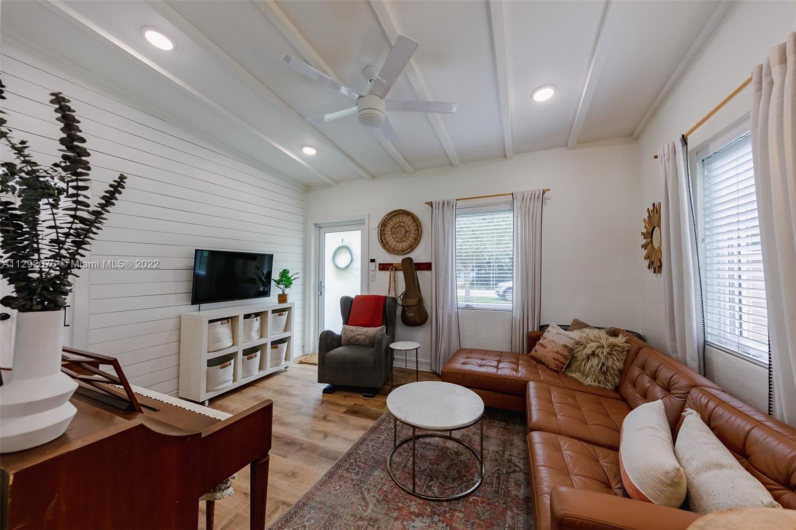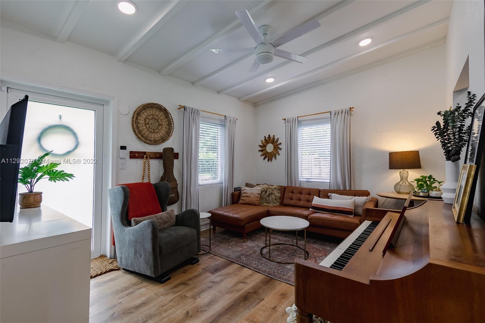 MOVE-IN READY South Miami home on HUGE lot - just under a 1/4 acre with mature live oak trees. Quiet established neighborhood blocks from University of Miami. This immaculate & updated home retains the charm of the 50s with vaulted ceilings & maximum use of space. Architectural plans to expand to 3/2 available. Gorgeous easy-care wood-look vinyl flooring. 2020 Roof replacement included installation of insulated, beamed ceilings with recessed LED lighting. 2017 bath & kitchen updates - custom cabinetry, stainless-steel appliances, new PVC plumbing. Feel safe in hurricane season with high-grade impact windows & doors. Updated fencing includes double gate. Minutes to Metrorail, South Miami / Larkin Hospital complex, Dadeland, & shops/entertainment/dining of downtown South Miami! Dream big!