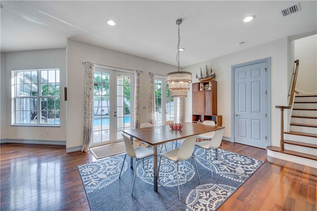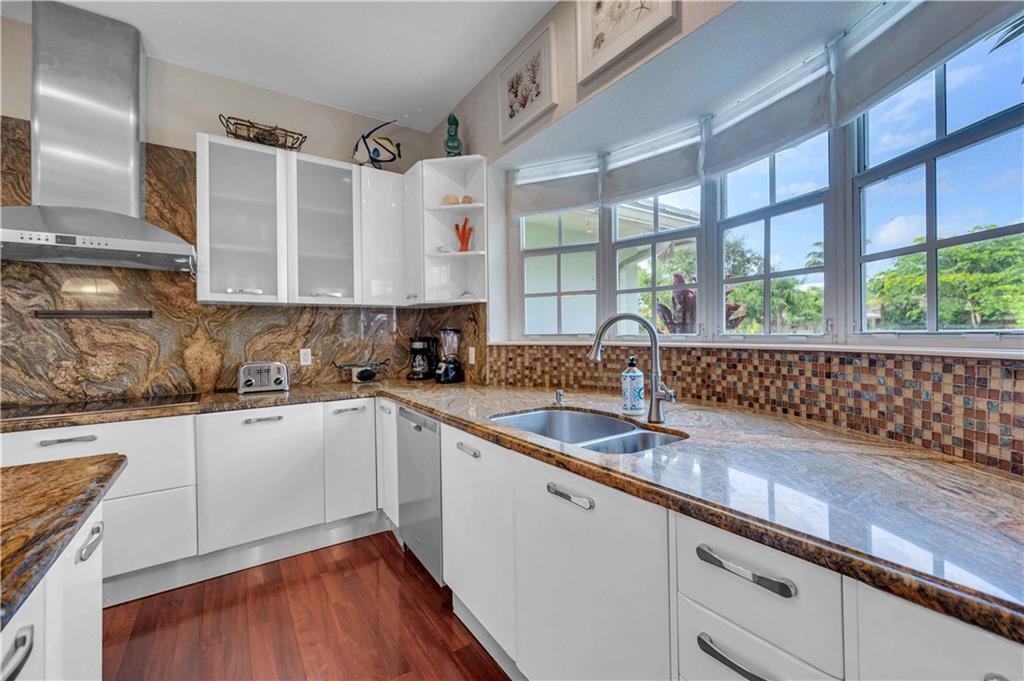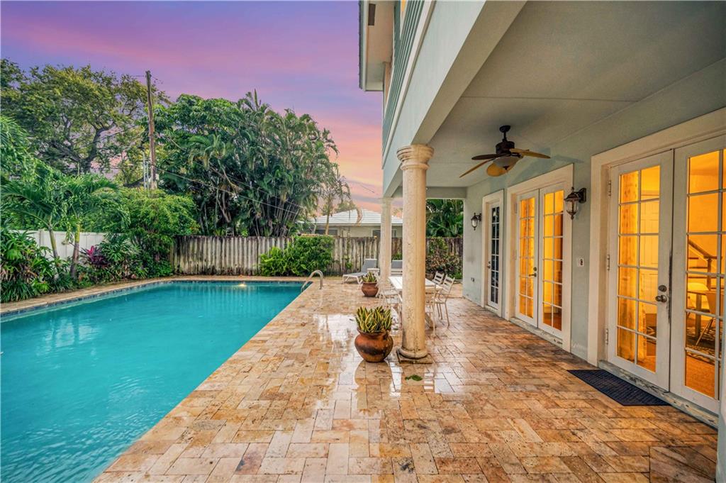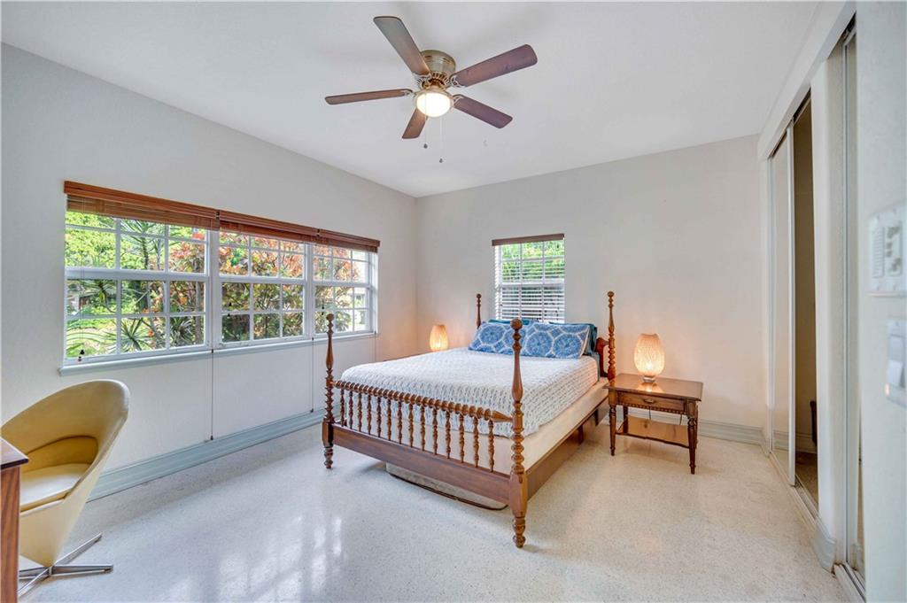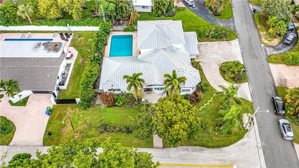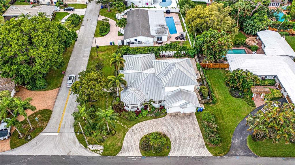 This home is bright, open and very spacious on a quiet corner in Coral Ridge. High ceilings, walls of windows, two primary suites, impact rated windows and most doors, a modern kitchen with breakfast bar and prep island, walls of cabinets, multiple huge closets, the second floor bedroom suite features an adjoining office and luxury bath with a Roman tub and separate shower. The oversized two bay garage opens to a huge, circular drive. A roofed patio overlooks the very private gardens surround a large pool ideal for swimming laps. Surrounded by all single family homes and located under a mile from Bayview Elementary school. Beaches and parks are minutes away.